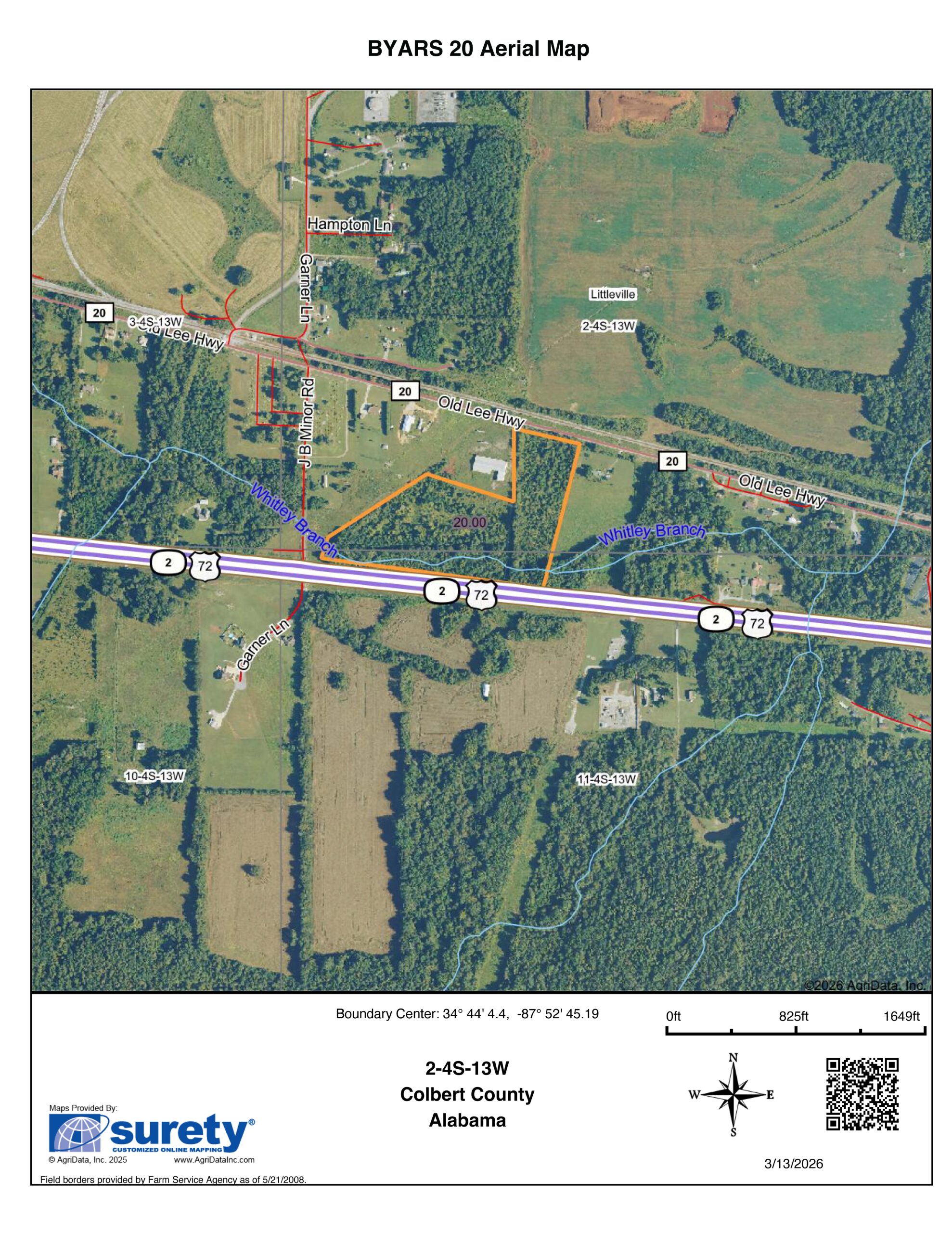 Positioned in a highly desirable location, this 20 +/- acre tract offers outstanding potential for commercial development, investment, or mixed-use opportunities. With excellent accessibility and strong regional connectivity, the property is ideally suited for a variety of business ventures. Located just minutes from the new defense industrial facility and near the outdoor recreation opportunities of the Tennessee River, this property combines convenience with natural surroundings. The tract features paved road frontage along Old Lee Highway running the length of the north side of the property, with additional access near Highway 72 on the south side, providing excellent visibility and accessibility.The land is primarily flat and easily developable, offering multiple potential homesites or commercial build locations. Wildlife is abundant on the property, with the Whitley Branch traversing the property, making it a unique opportunity for those who want to combine business use with recreational potential.