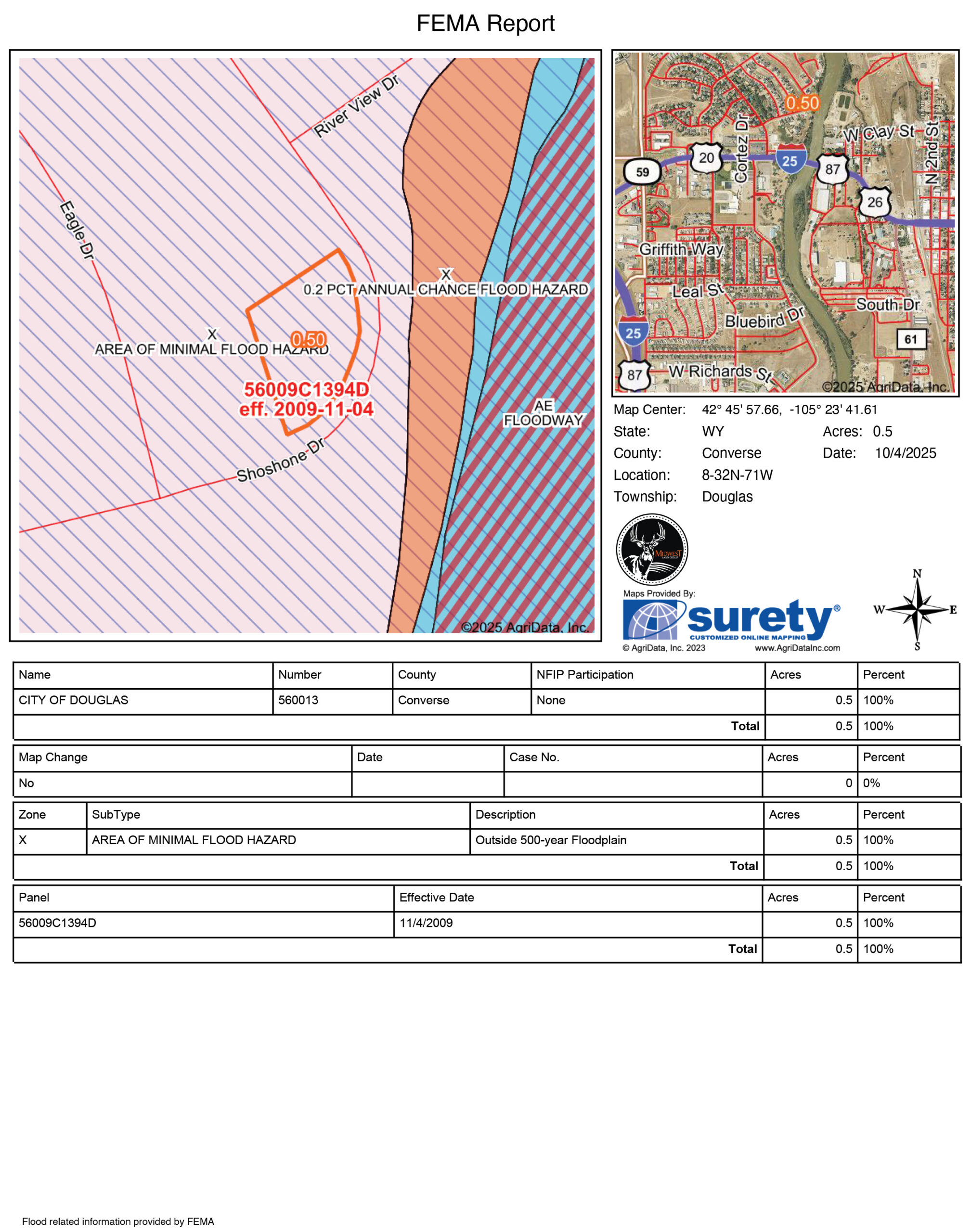 If you want to build your new home in Douglas, Wyoming, take a look at this 1/2 acre corner lot in Meadowlark Trails. This plot is two 1/4 acre tracts being sold as one so that the new owner can enjoy a larger lot for their new home. With a great view across the road of the North Platte River, you can soak up the scenery! Enjoy the walking trail along the river or walk the two blocks to the city park just up the road. This subdivision is one of the most sought-after areas in Douglas. With beautiful newer homes, the community is clean and well-kept. Give Karl Ward a call at (307) 387-9677 to go and check out this great build site.Property Features