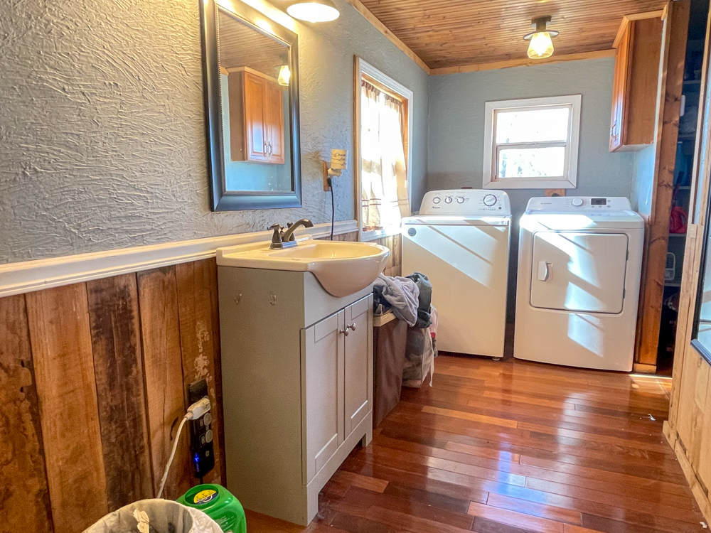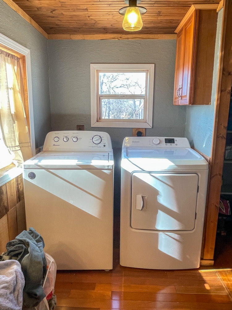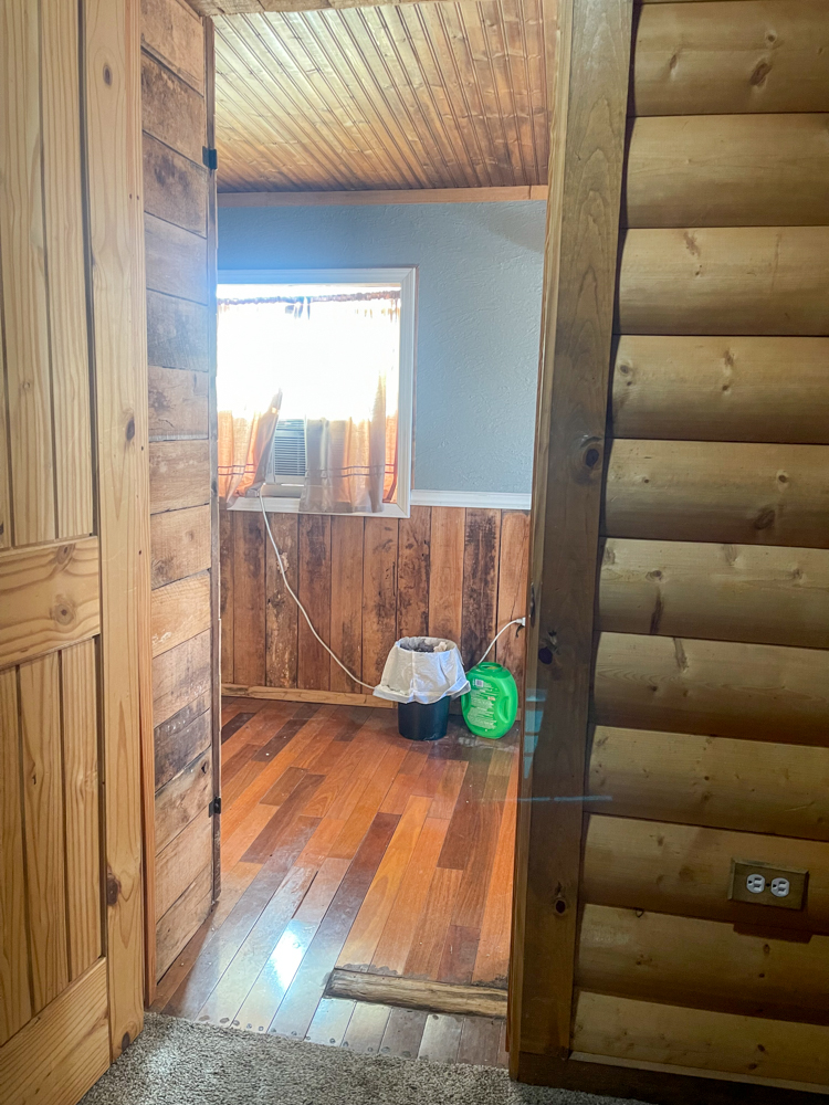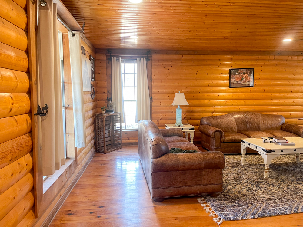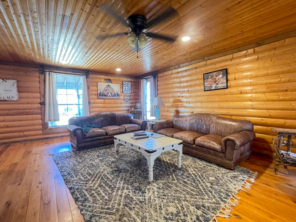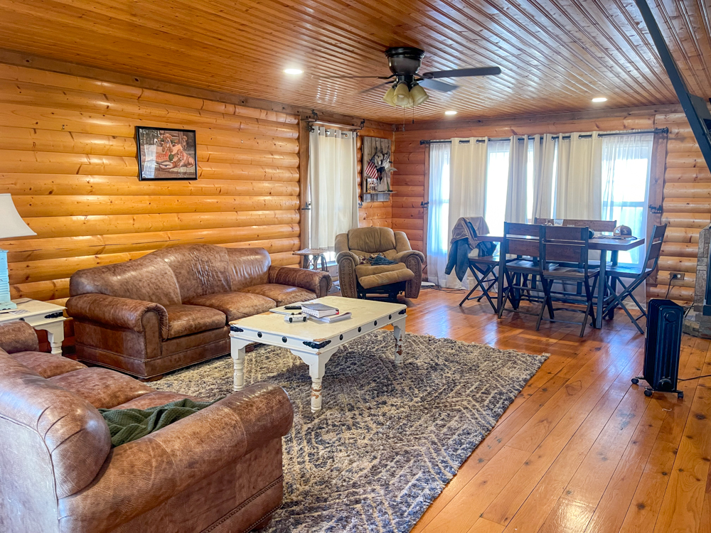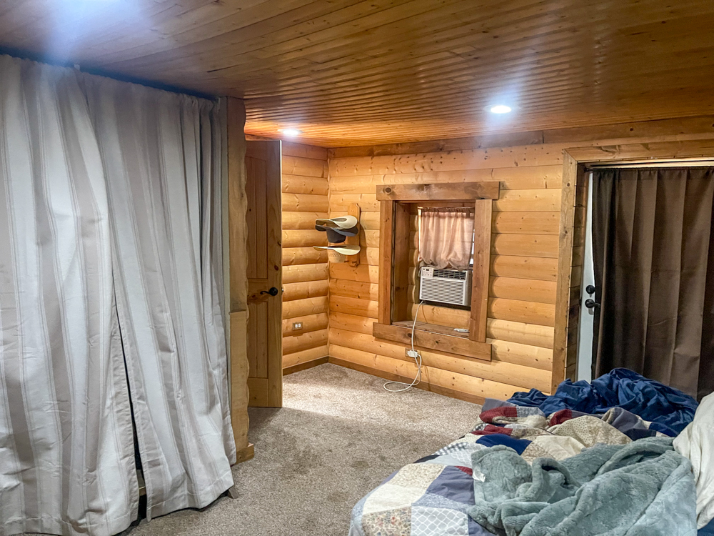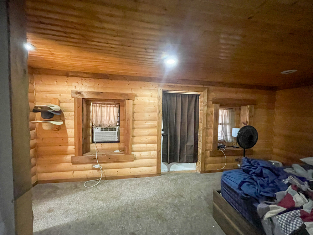 - Knotty wood throughout, metal roof, vinyl windows, basement cellar