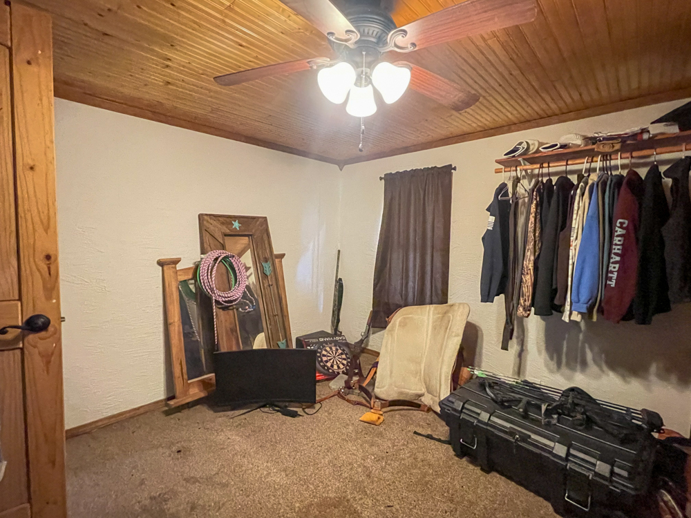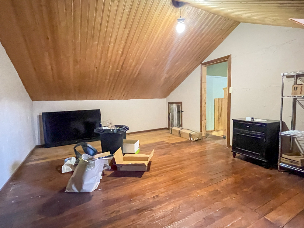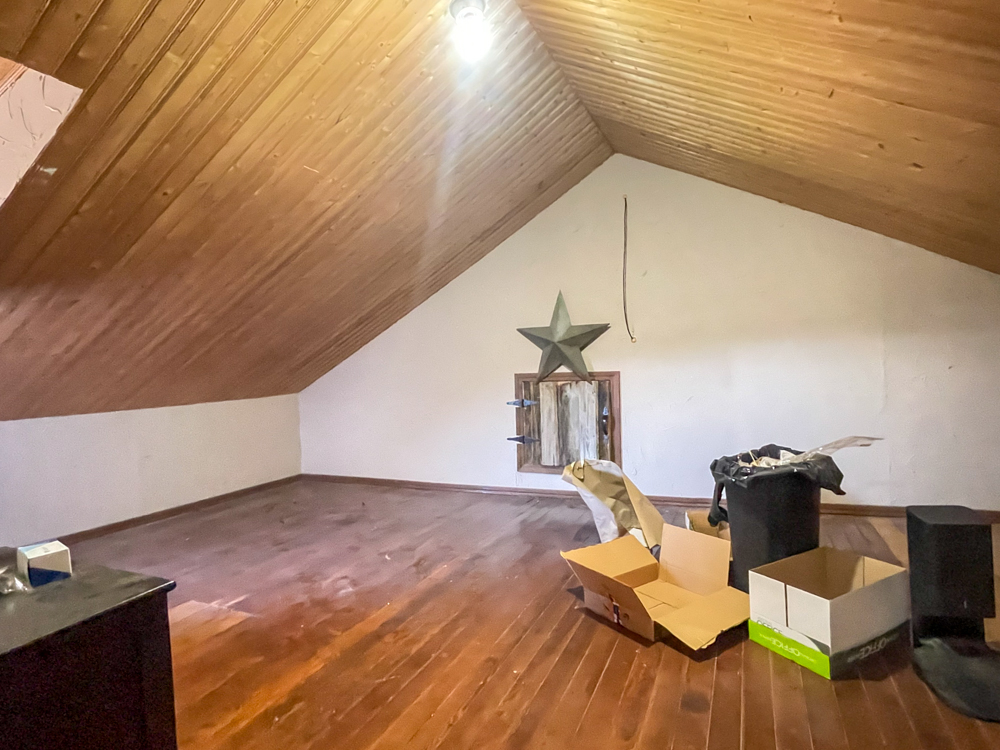 Set on 40 +/- scenic acres, this rustic farmhouse offers a rare blend of pasture, water, and wooded privacy just minutes from town. The land is fenced and cross-fenced with newer 6-strand barbed wire, making it ideal for livestock or horses, and features two ponds, rolling pasture, and a heavily wooded area past the homesite. A pipe-fenced entry, multiple outbuildings, and open grazing space invite you to bring your cattle and horses and enjoy true country living.Originally built in 1900 (per courthouse records), the home is rich with knotty wood throughout and classic farmhouse character. Offering 2 bedrooms, 1 bath, and a flex room, the layout is both functional and flexible—the flex room off the primary bedroom could serve as a third bedroom or home office, while the second bedroom is a loft-style space upstairs. The cozy living room is anchored by a pellet stove, with a propane heater in the primary bedroom, and the kitchen features a propane range, vinyl windows, and a durable metal roof. A basement cellar adds storage and storm protection.