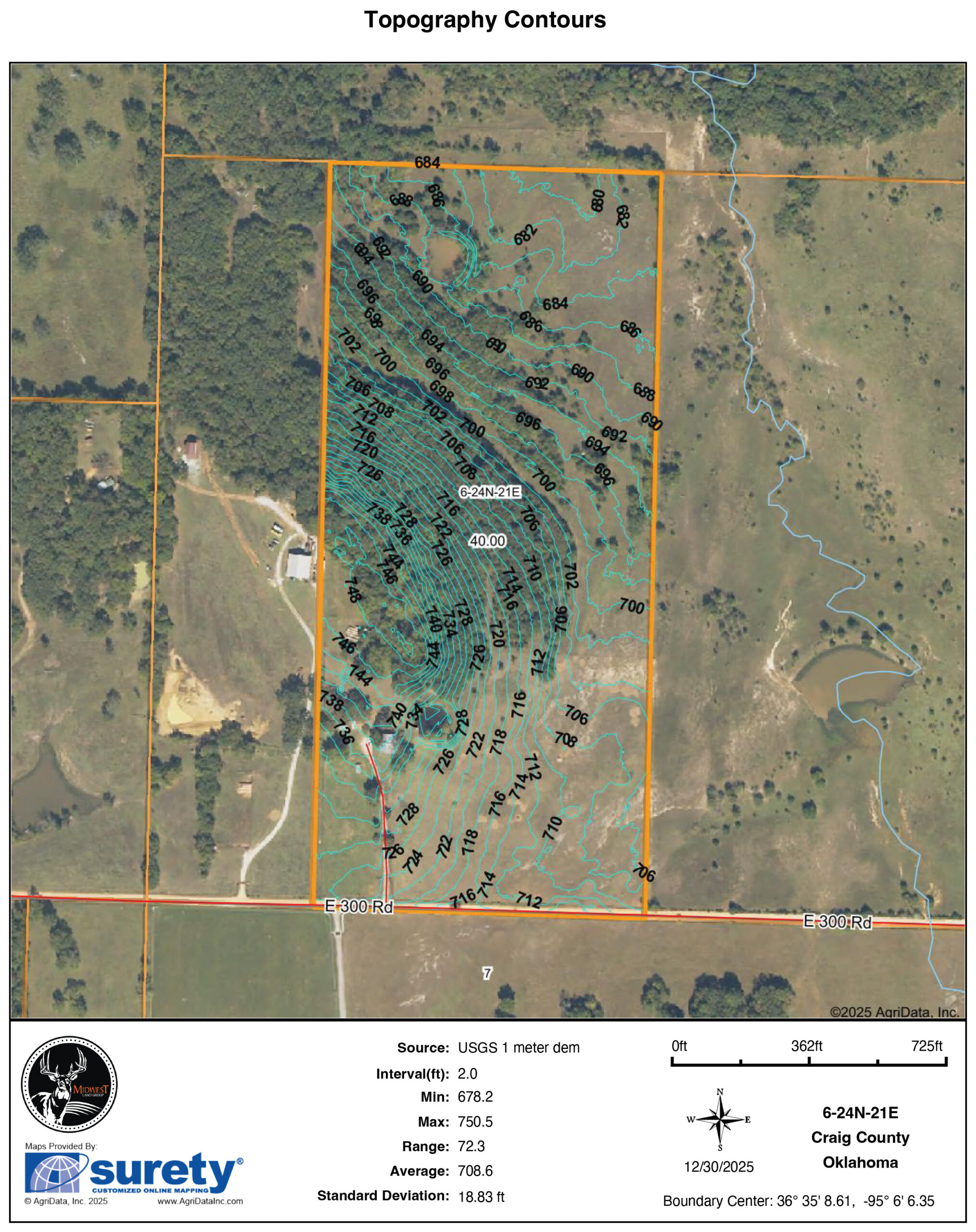 - Primarily pasture with a heavily wooded section on the hilltop near the home