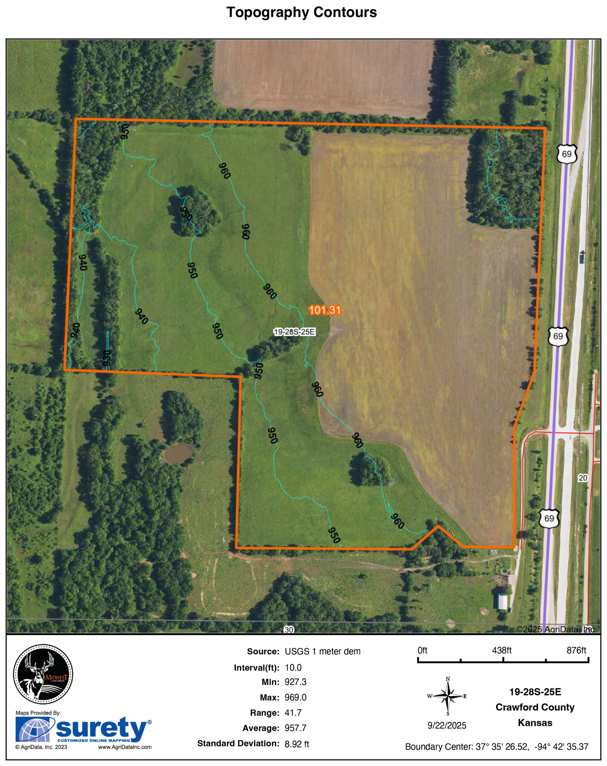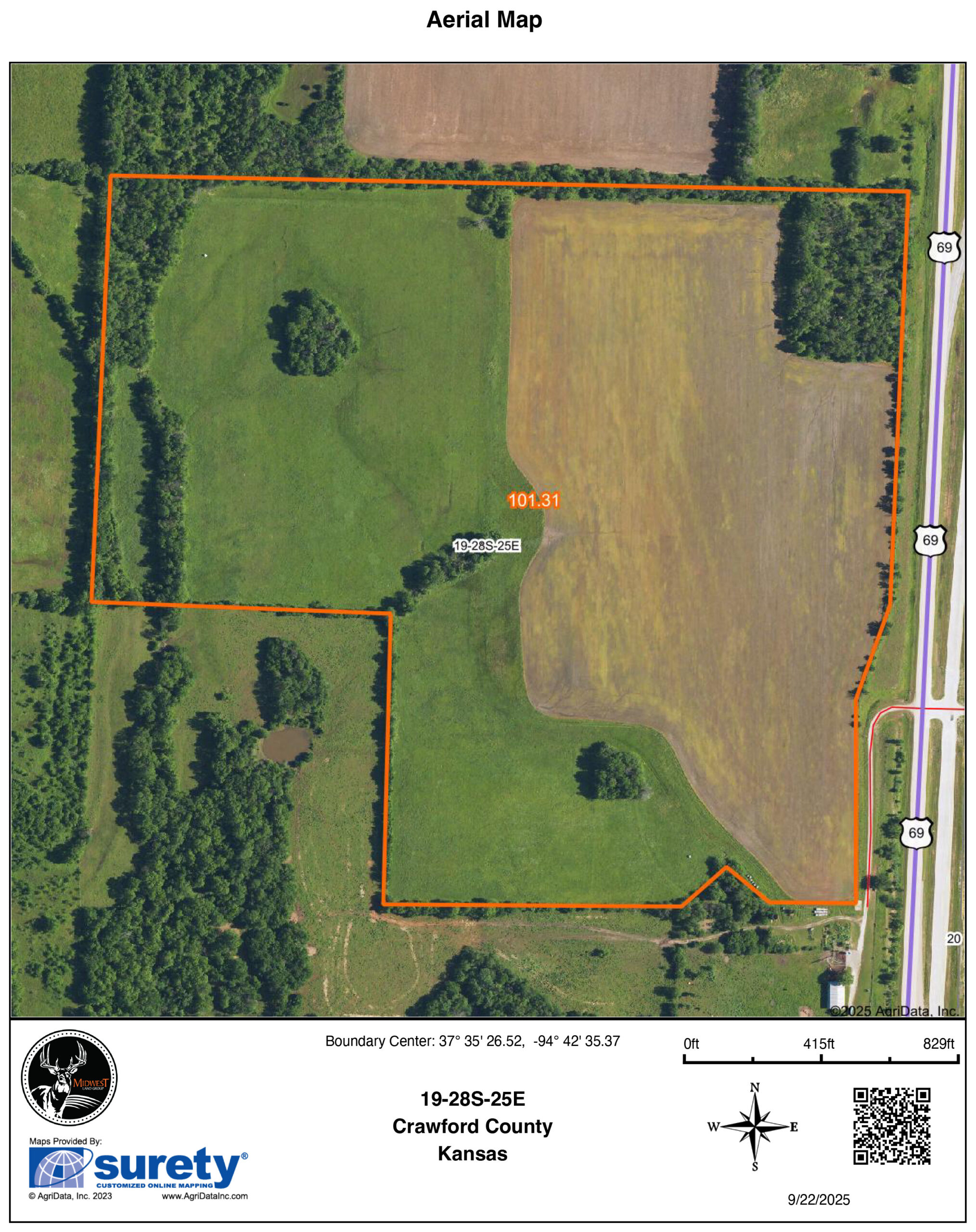 This 101 +/- acre tract north of Arma, Kansas, offers a strong blend of income potential and recreational opportunity with excellent access just off Highway 69. The property is anchored by approximately 48 +/- acres of quality tillable ground and an additional 45 +/- acres of high-producing hay ground, making it an ideal piece for AG production or lease income.The remaining acreage includes timbered draws and cover that provide habitat for whitetails and turkeys, giving this farm a recreational edge alongside its farming potential. The open soils, consisting primarily of silty clay and silty clay loam, are known for producing strong hay yields and row crops, ensuring consistent returns year after year.