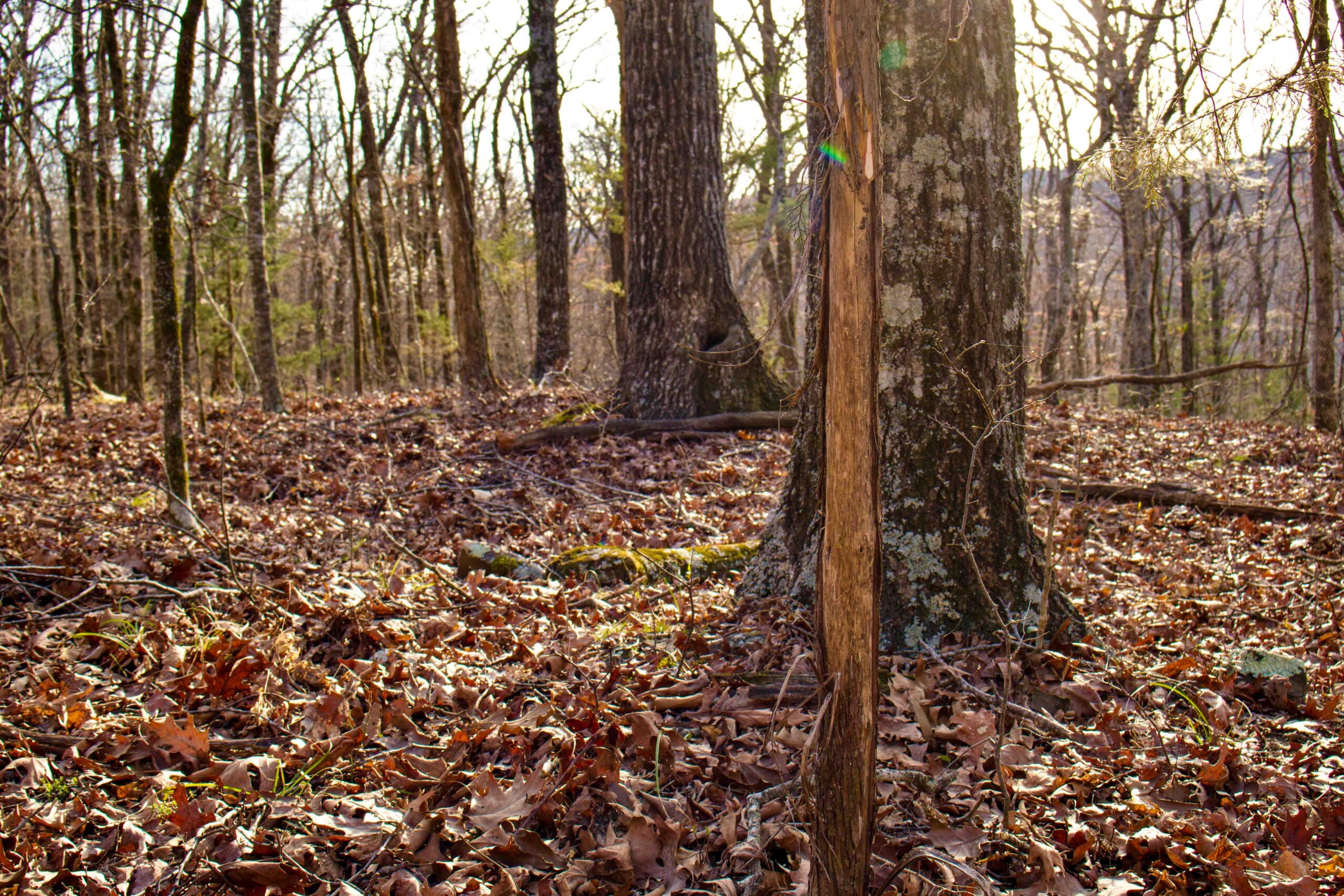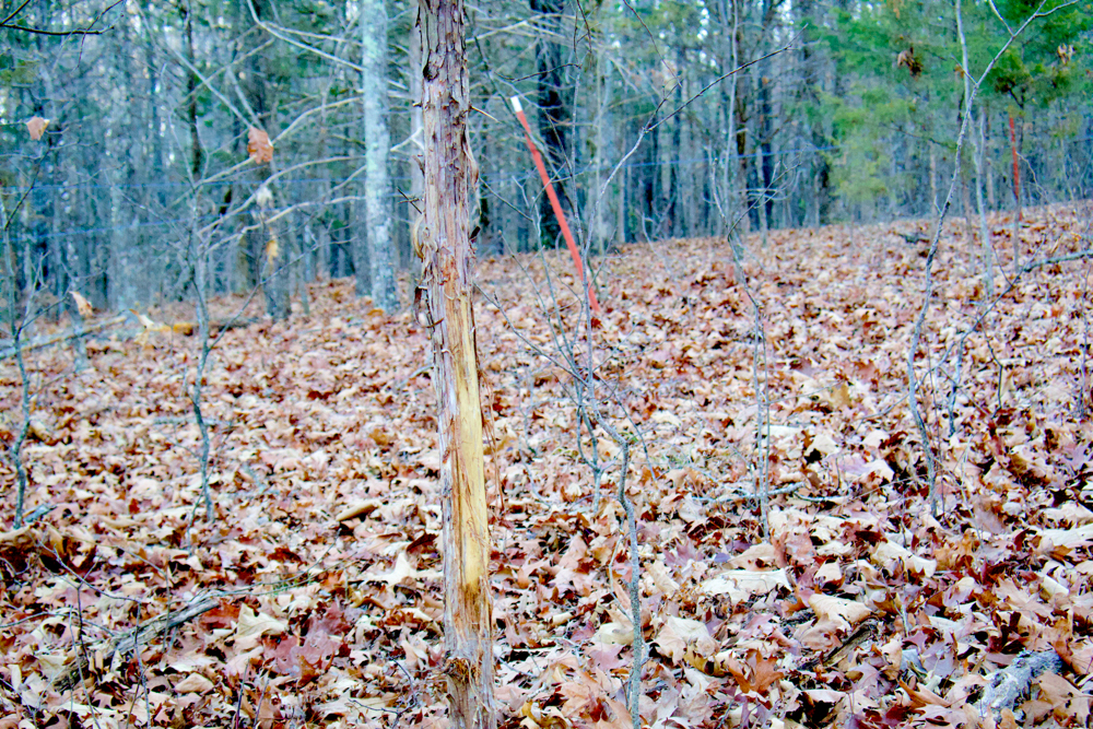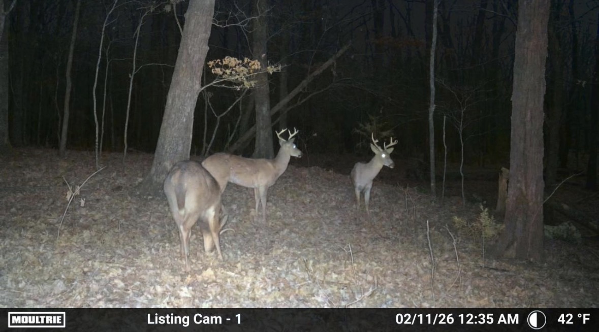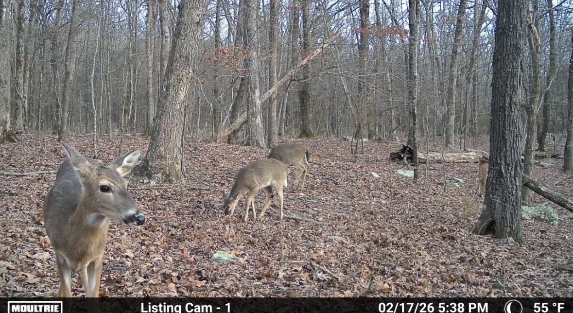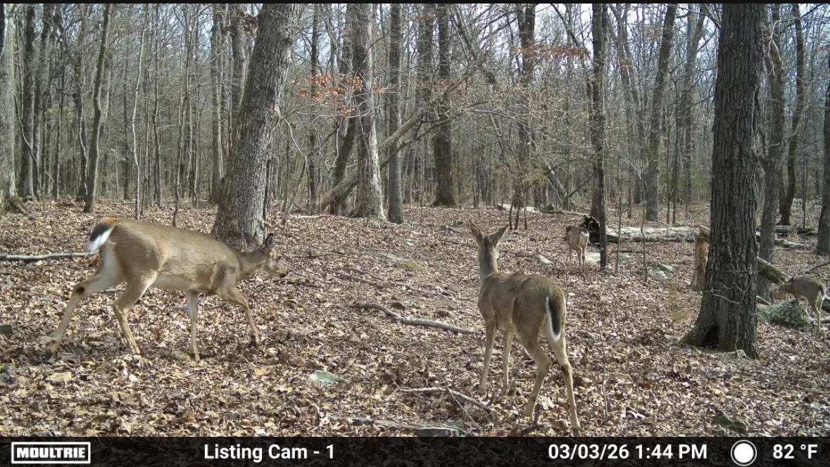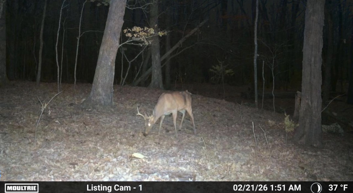 For hunters, this place checks a lot of boxes. The mast crop provides a natural food source, and deer signs are everywhere: rubs, trails, bedding areas, and terrain features that naturally funnel deer movement. It sets up well for a couple of stands or blinds without requiring much thought.