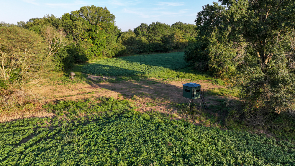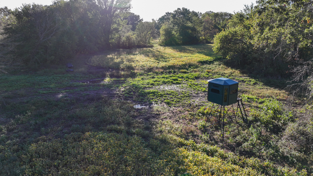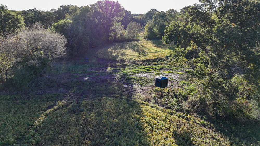 Included in the sale are a Redneck Big Country 6'x7' blind on a 10' stand, an All Seasons Feeders 1,000-pound directional feeder, a 4,500-pound Low Pro feeder, and both a 20' and 40' storage container. The property also offers an ideal building site with year-round gravel road access and utilities—including electricity, rural water, and fiber optic cable—available at the road. Mineral rights are intact and will transfer to the buyer at closing. There is an oral year-to-year lease agreement in place on the tillable acres.