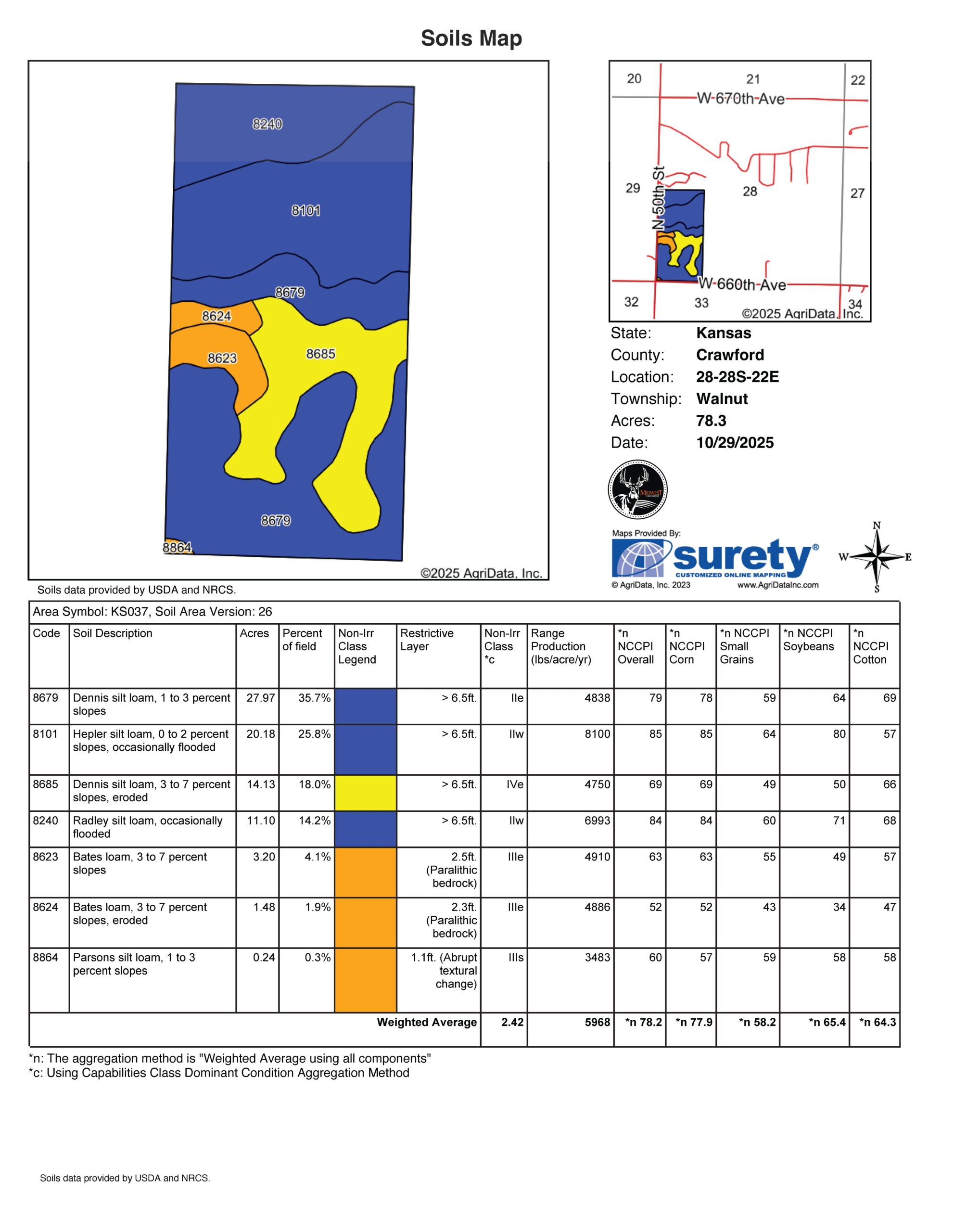 - NCCPI overall soil average rating of 78