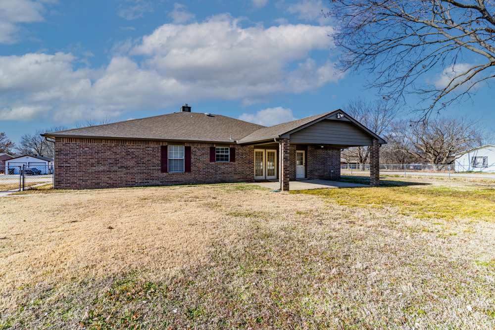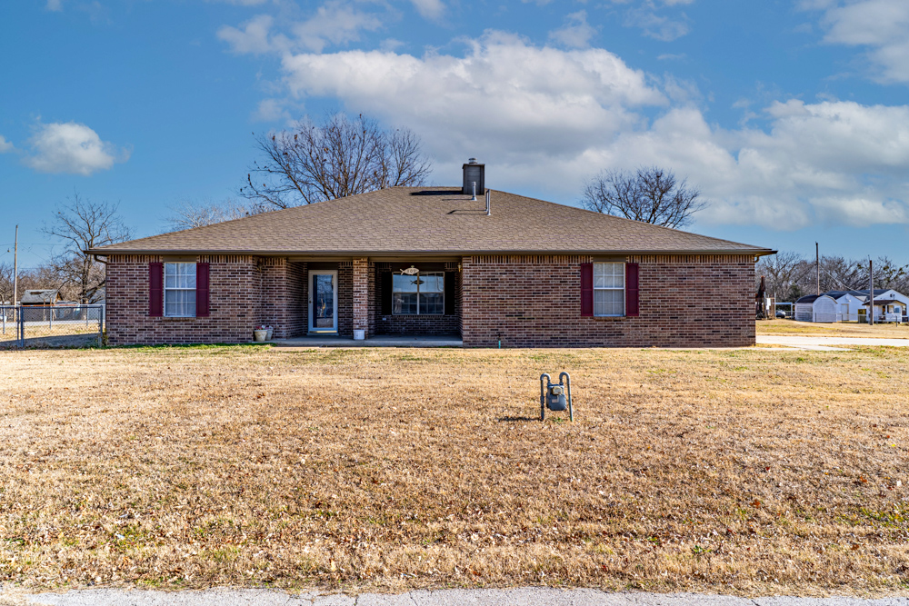 This well-maintained 3-bedroom home with an office, which could easily be used as a 4th bedroom, offers space, comfort, and convenience. Located just 20 minutes from Tulsa, the solid brick home features a cozy wood-burning stove in the large living area. The home is move-in ready with all appliances, including a washer and dryer. The spacious master suite includes an attached bathroom and a large walk-in closet. An oversized 2-car garage provides plenty of room for vehicles and storage. Situated on two large lots totaling approximately 0.8 acres, the property offers a fenced backyard, a separate dog pen, a storm cellar, and room to enjoy the outdoors. Relax on the covered porch and enjoy peaceful small-town living with easy access to the city. Contact Summer Witty at (918) 798-1561 to schedule a showing.Property Features