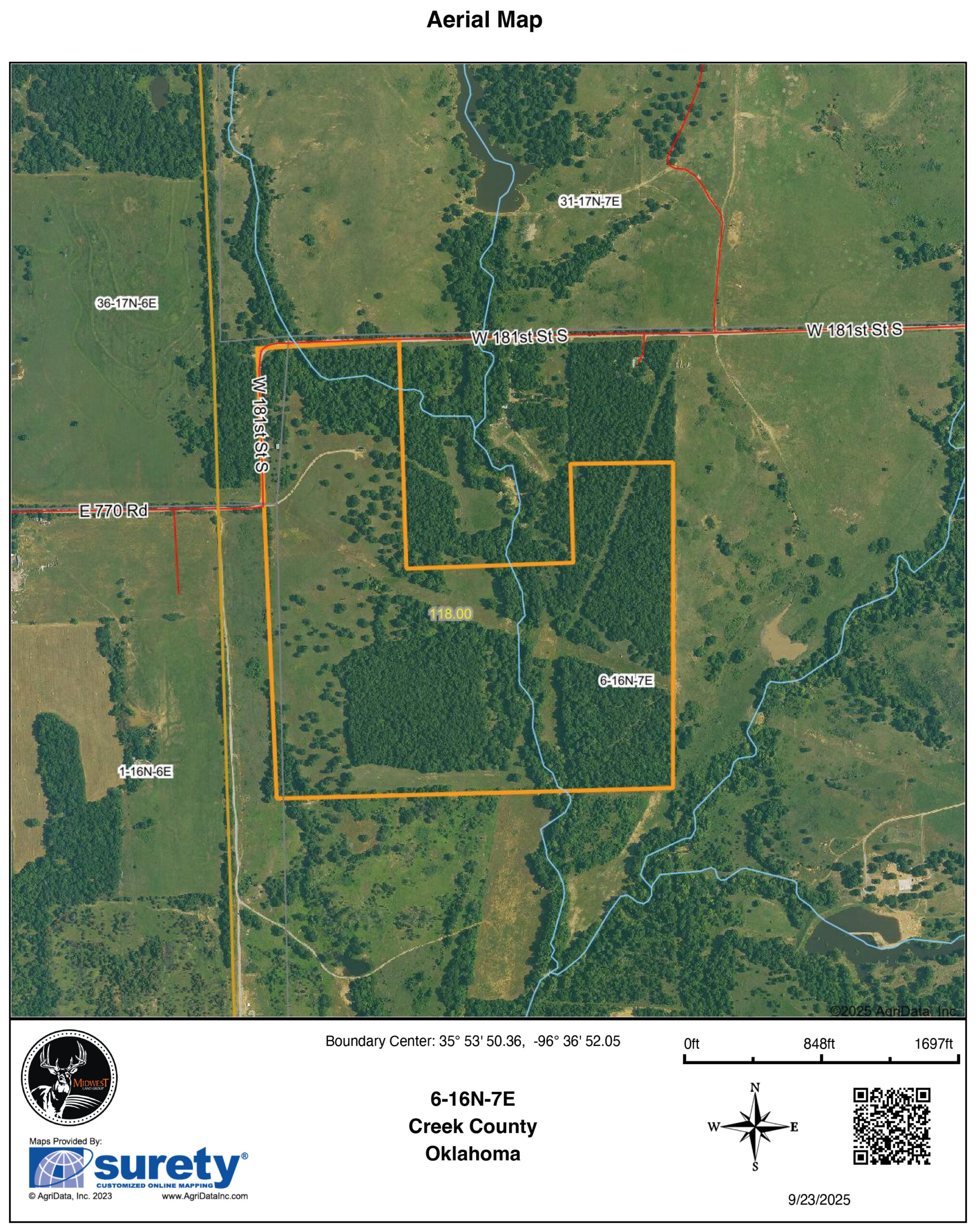 Located in Creek County, Oklahoma, just south of Drumright and within 45 minutes of Tulsa, sits a very rare and ideal piece of ground for the buyer looking to have a really, really good piece of deer hunting ground and consistent annual income. For over 23 years, this 118 +/- acre tract has been carefully managed for trophy deer hunting, primarily by bow. With a proven track record of excellent genetics and consistent deer production, it’s a rare opportunity for the serious hunter to own land with history and habitat already dialed in.A meandering creek splits the center of the property, running north and south with mature oak bottoms and tall bluestem grasses that create natural bedding and travel corridors, while two pipeline rights-of-way provide easy entry/exit access, food plot options, and multiple stand locations that can accommodate multiple hunters at once.