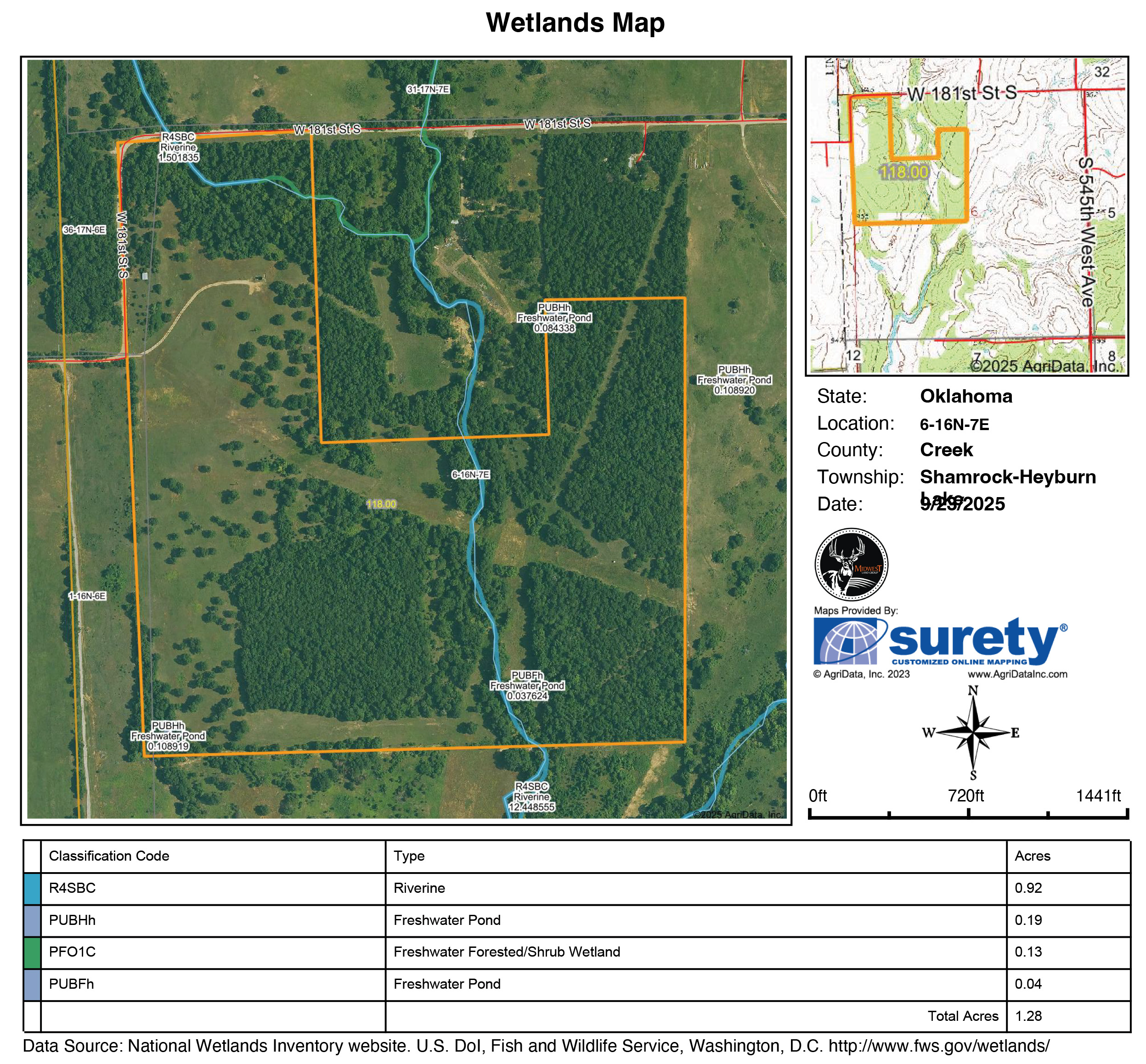 - 1 small pond in the southwest corner