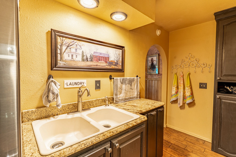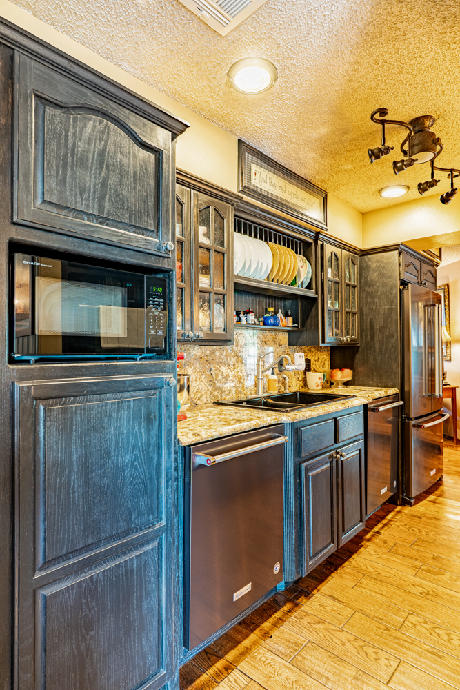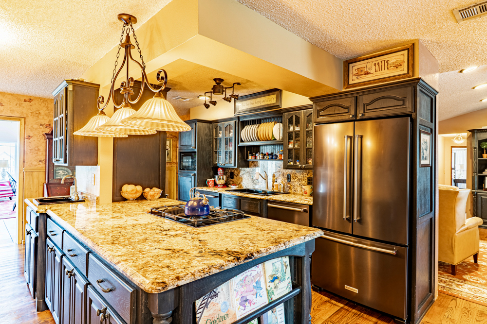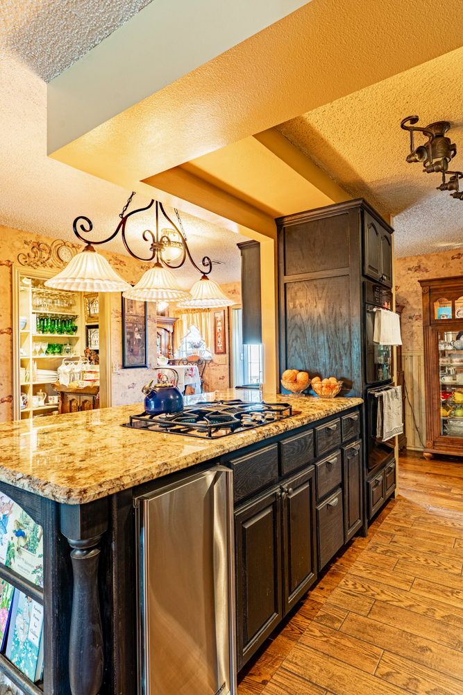 • Kitchen with gas cooktop, double ovens, 2 dishwashers, ice maker, granite island & walk-in pantry