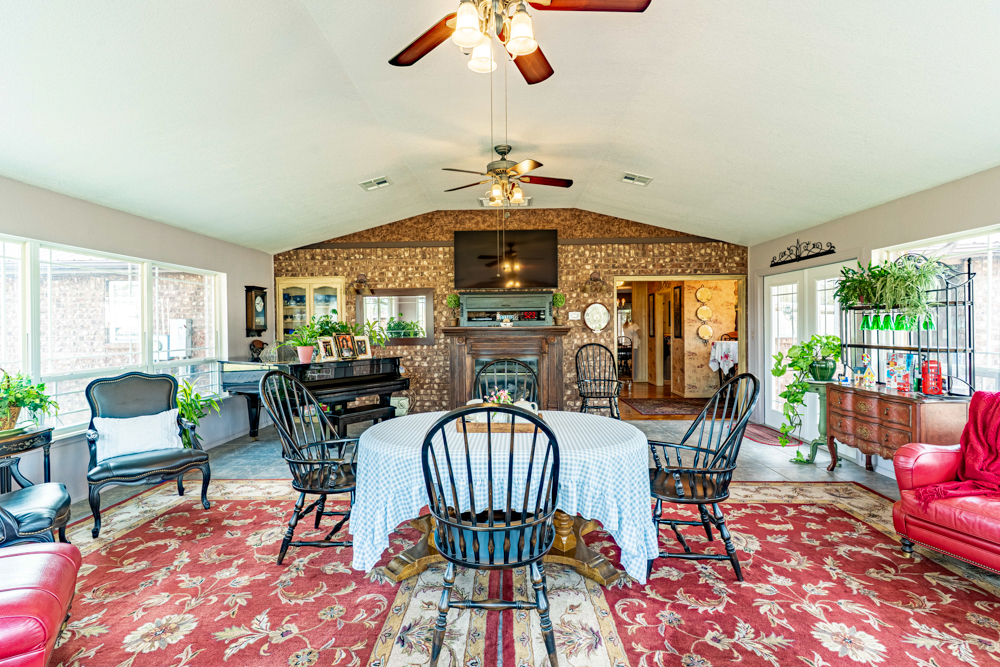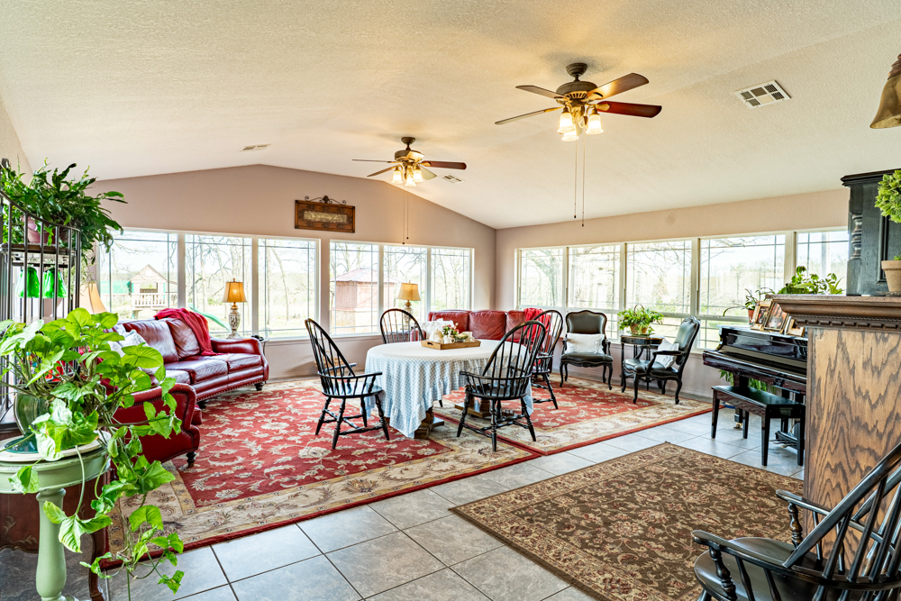 At the back of the home, the expansive sunroom is a true highlight—filled with natural light and offering incredible views of the surrounding landscape. With plenty of room for multiple uses and a cozy gas fireplace, it’s a space you’ll enjoy year-round.