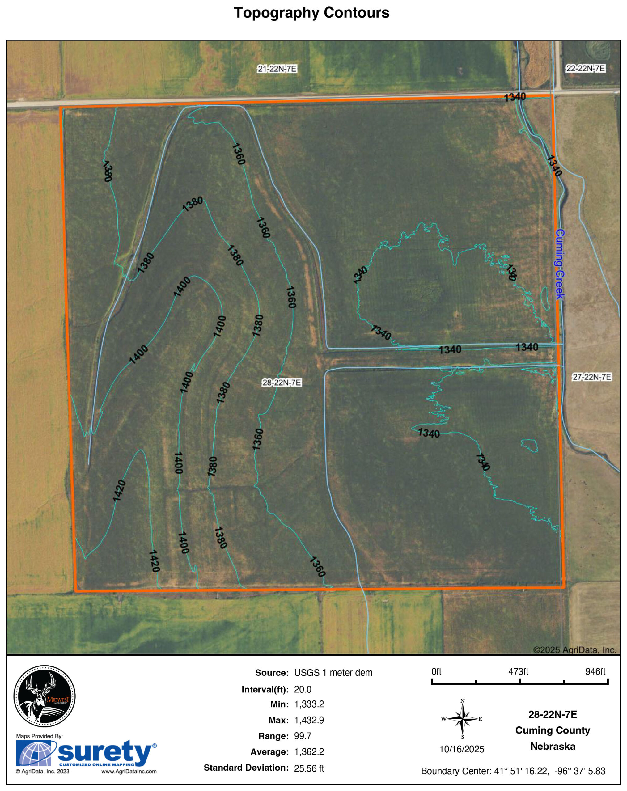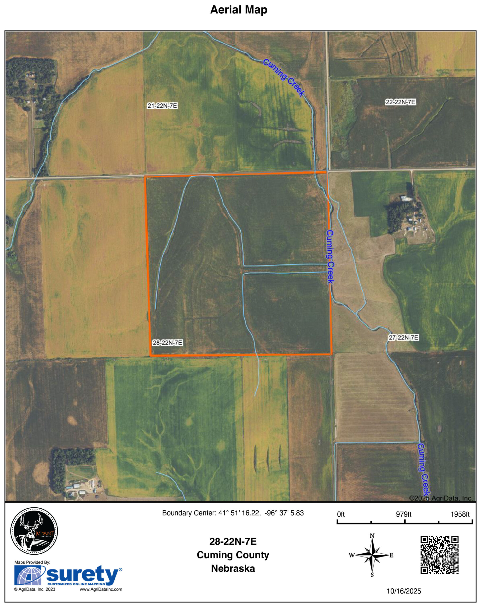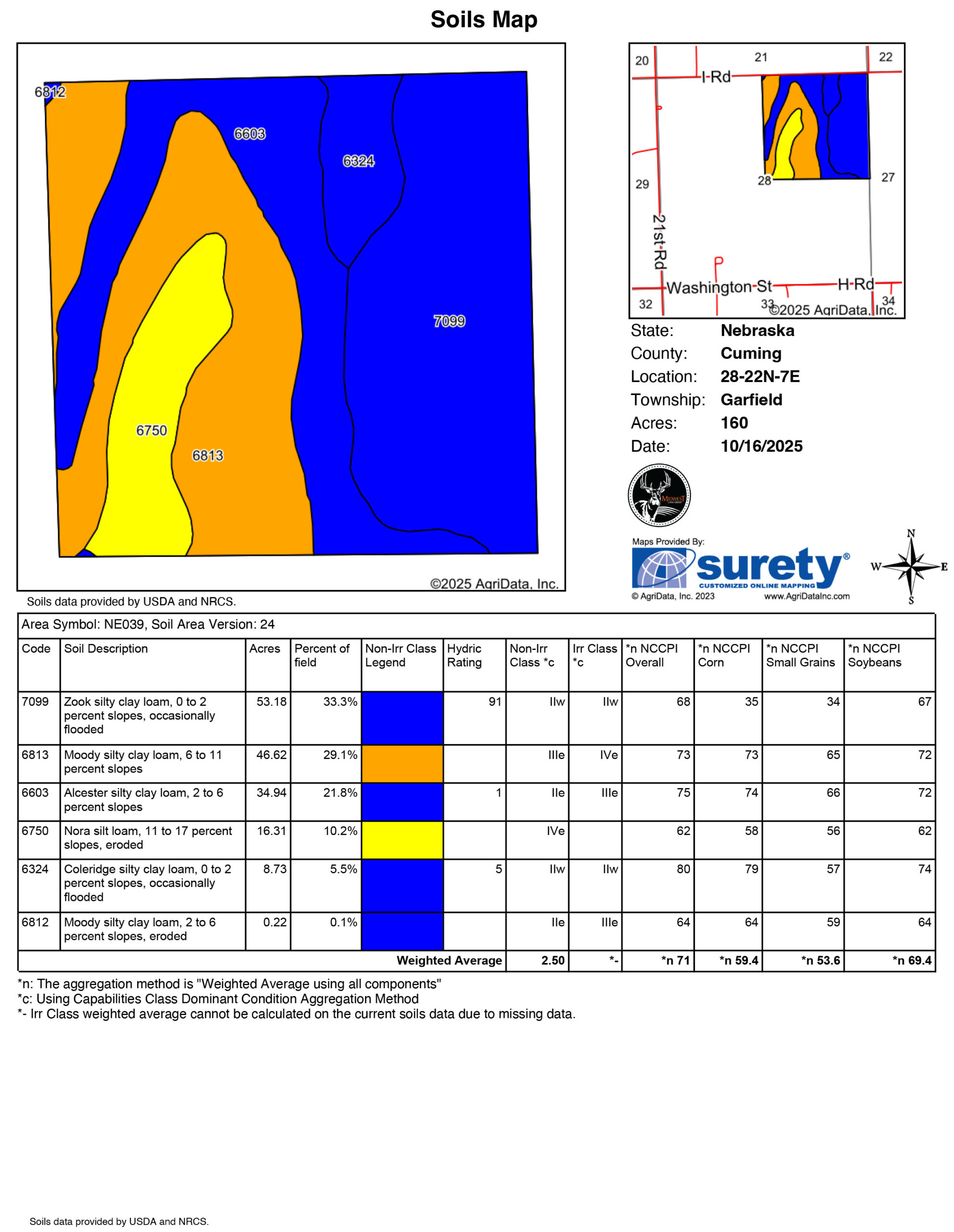 A dryland farm as clean as this Cuming County, Nebraska quarter would be hard to find anywhere in the Midwest! Right at 160 acres, this farm lies directly between West Point and Oakland, Nebraska, only two miles north of Highway 32 at the intersection of 22nd and I Road. This farm is nearly 100% tillable with only a few well-maintained waterways breaking up the mix of bottomland and rolling hills. The east half of the farm lies along Cuming Creek and mostly consists of Zook and Coleridge silty clay loams, making for some of the best dryland farmland you can find in Eastern Nebraska. The west half climbs to a gently terraced hilltop consisting of mostly Moody, Alcester, and Nora class II and III soils. With an overall NCCPI rating of 71, this farm is a great producer in a phenomenal area. This top-notch Nebraska farm has been extremely well-managed by a longtime tenant and is open for the 2026 growing season. Don’t miss your chance at this one!Property Features