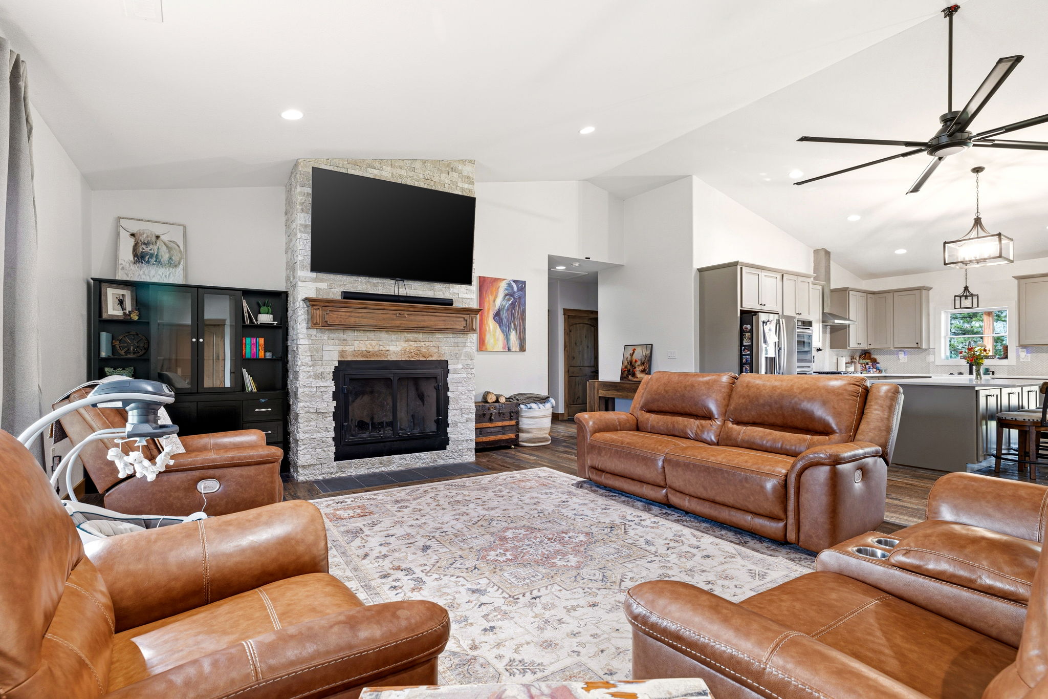 Welcome to 22 Osage Road. This newly built 2025 home on nearly 11 acres offers the perfect mix of privacy, space, and convenience. Located in the highly sought-after Skyline School District, there is a mix of open ground and timber, with a large pond and a home tucked off the road. The main living area welcomes you with high ceilings, a cozy fireplace, and an open flow that makes everything feel connected without sacrificing comfort. Hardwood floors run through the main spaces, adding warmth and a timeless finish.The kitchen is truly the heart of the home, finished with custom cabinetry, quartz countertops, and thoughtful details that make a difference day-to-day. A double oven, propane cooktop, and deep farmhouse sink overlooking the backyard make it as functional as it is inviting. The main level features a split floor plan, offering privacy for the primary suite. The master bathroom feels like its own retreat, complete with a floor-to-ceiling tiled shower and a large walk-in closet. Three additional bedrooms on the main level provide flexibility for family or guests. Downstairs, the full basement expands your living and entertaining space even further, featuring a wet bar with room to relax, or host game nights and celebrations. With a total of seven bedrooms and four full bathrooms, there’s no shortage of space, whether you need room for a large household, guests, or dedicated office/ hobby spaces.