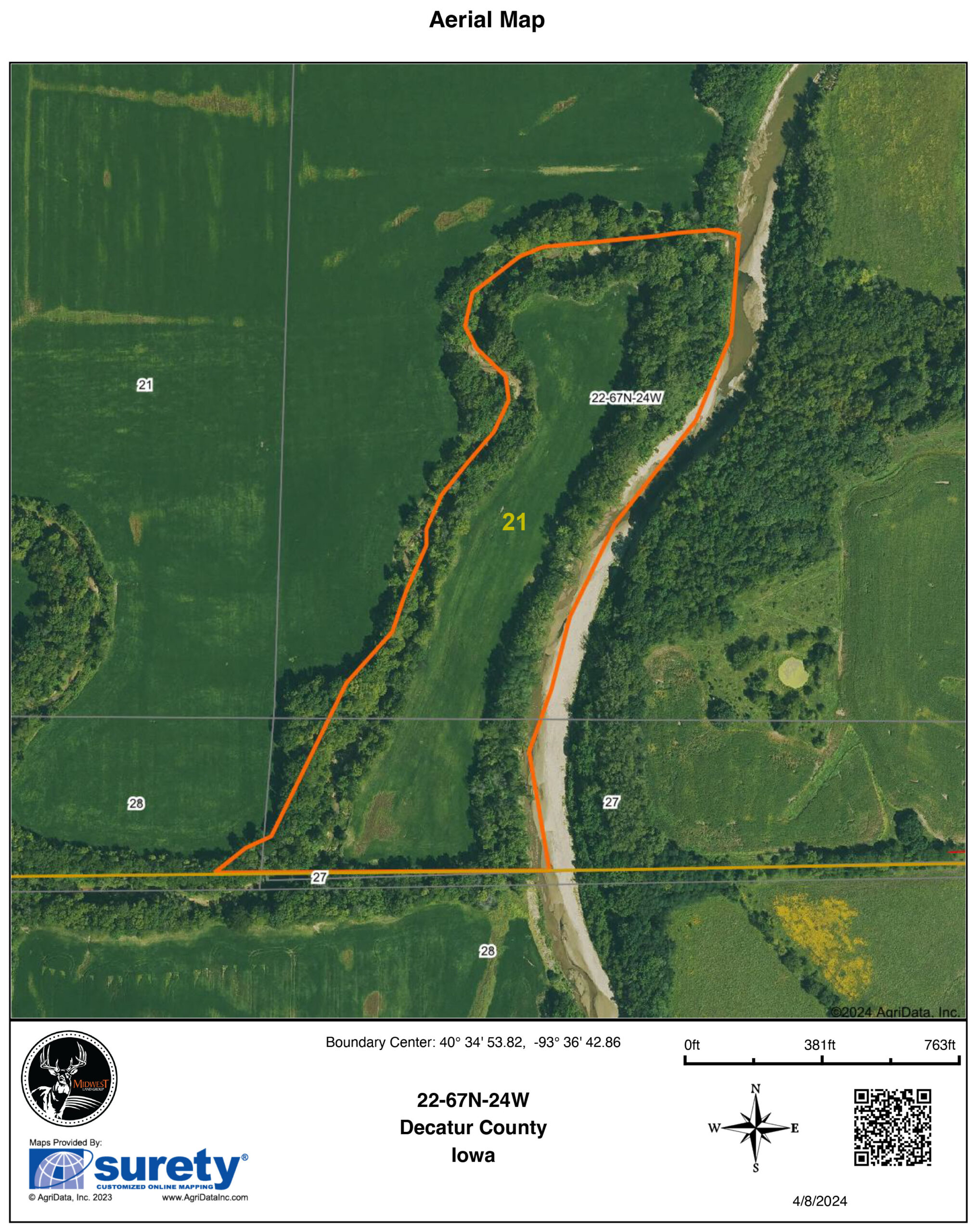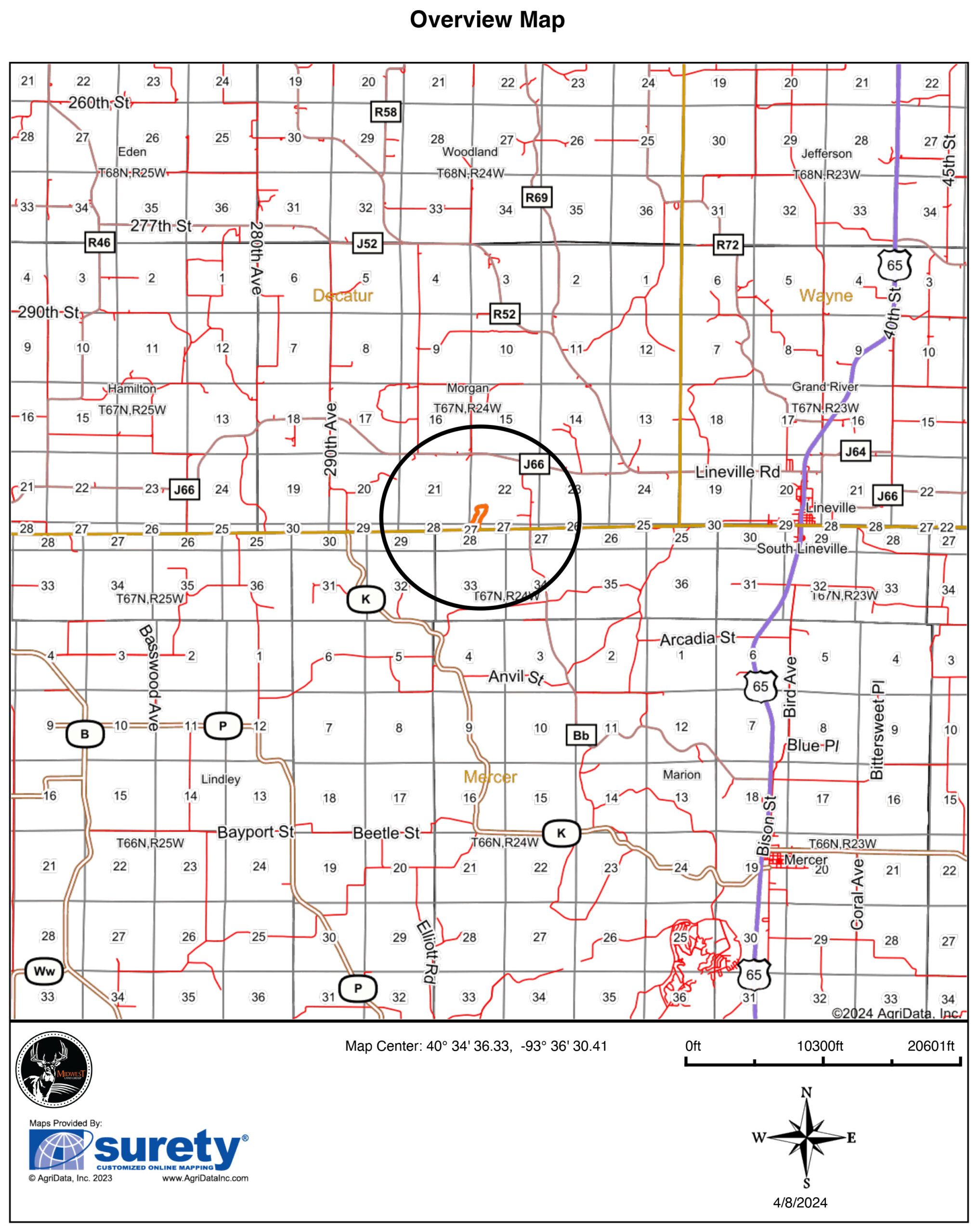 - 20.96 surveyed acres in Decatur County, Iowa, between Lineville and Pleaston