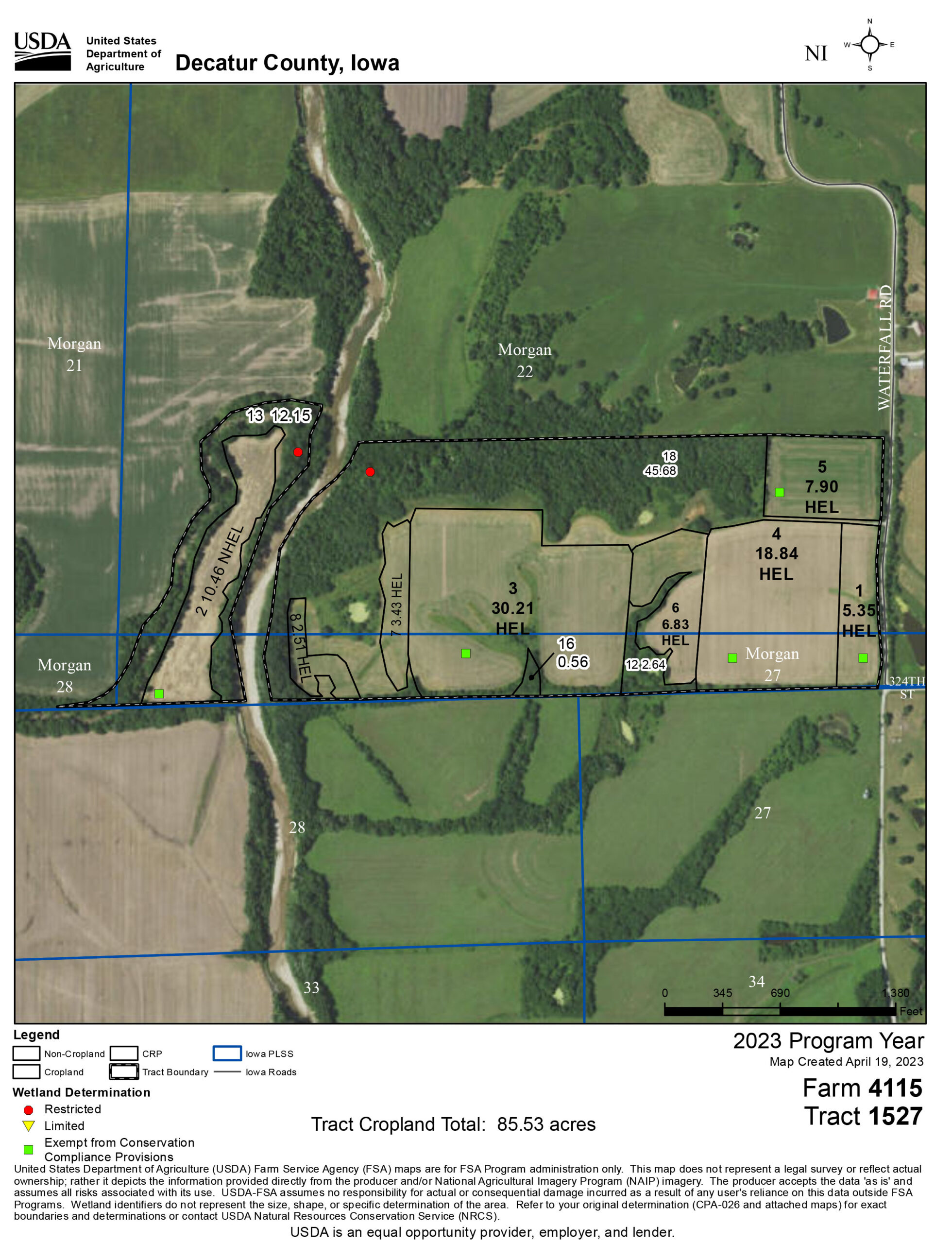 Dynamite hunting tract with the perfect balance of big timber surrounding productive cropland on the Iowa and Missouri state line! Stretched alongside the Weldon River in Decatur County, Iowa, consisting of 10.46 tillable acres and 10.5 acres of mature timber with private easement access offering a completely hidden honey hole not visible from the road. This farm is absolutely loaded with wildlife; deer or turkey will be seen every time you step foot on the farm, with trails, tracks, and sign in every corner. The 10.46 tillable acres are leased at $225/acre in 2026, providing $2,353.50 per year, and have an NCCPI of 86.8 and CSR2 of 66.2. The timber is a mix of walnut, hickory, oak, and large turkey roosting sycamore trees.If you are looking for a smaller, affordable hunting farm in one of the best hunting corridors in the Midwest, you should strongly consider this farm. Being that the farm is very remote with easement access, every inch of this property is huntable. You can not see a home or road, tucked in the middle of the Weldon River bottoms with thick timber draws, where there is always a good chance of seeing a mature whitetail.