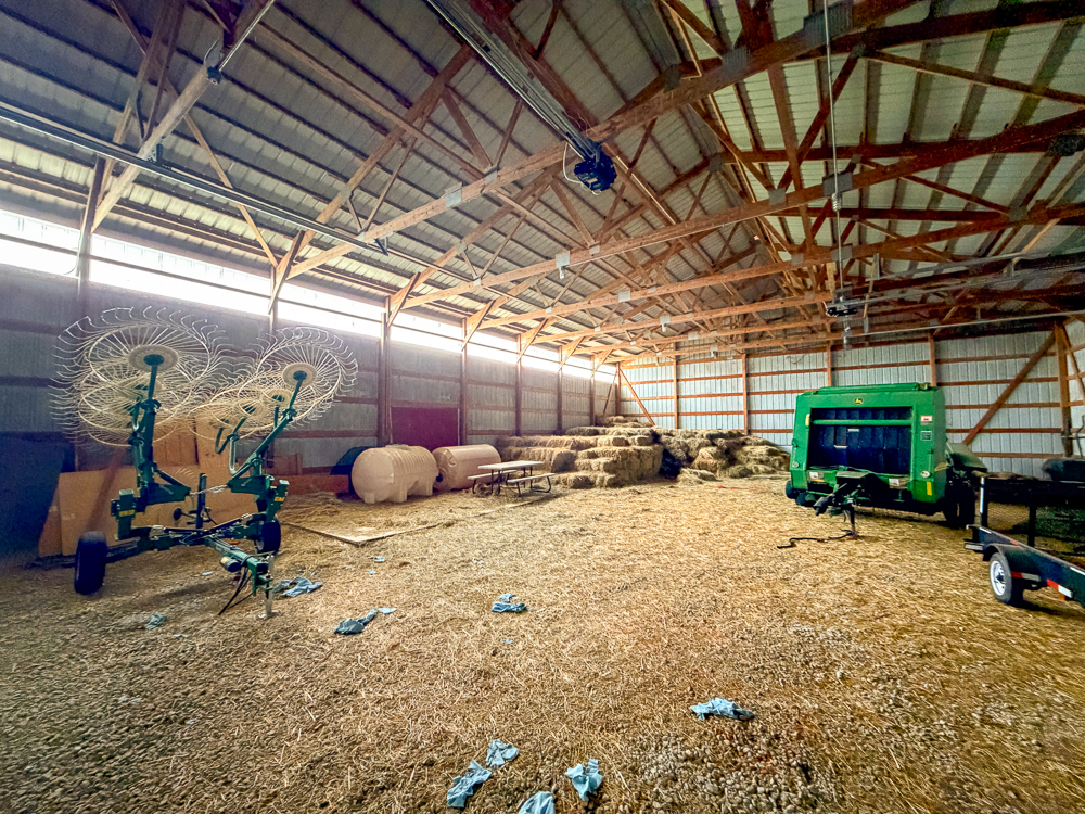 -Hay Barn: 50' x 72' with raised platforms for dry, elevated storage
