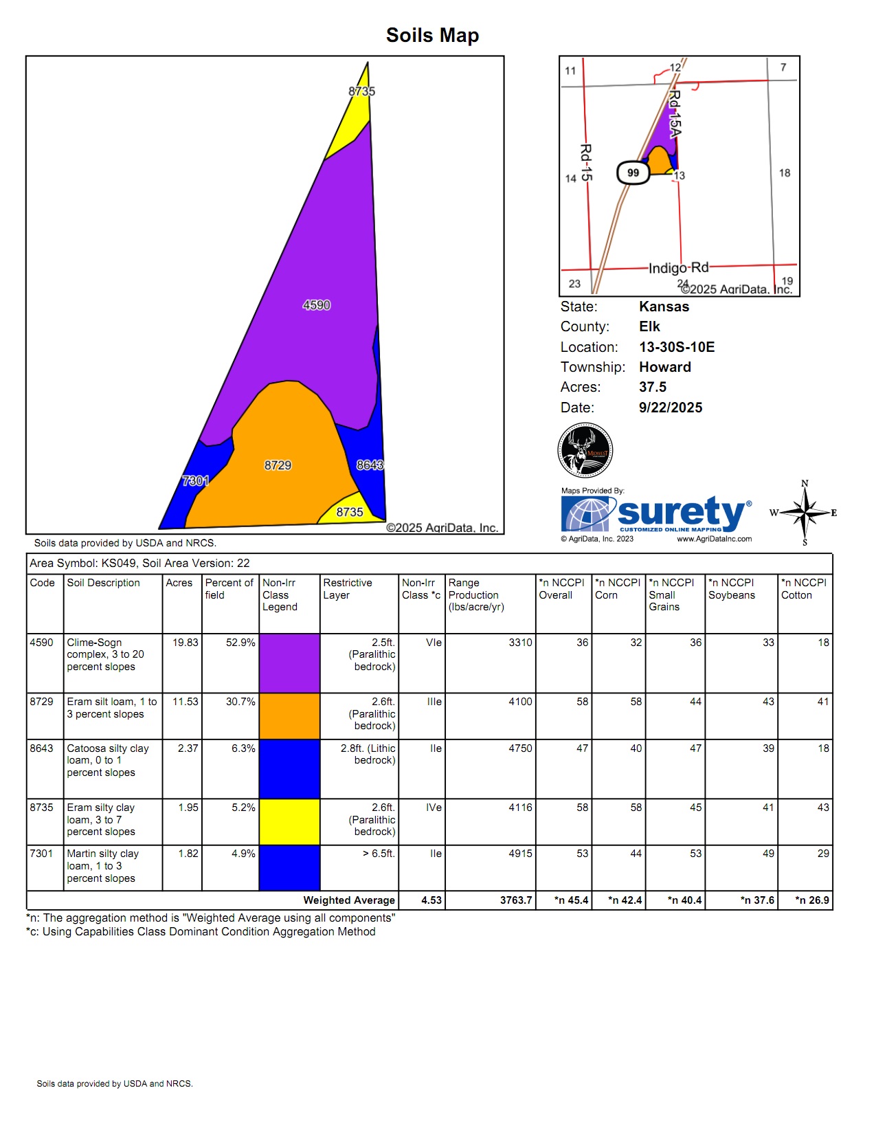 Located just outside of Howard, Kansas with convenient access off Highway 99, this scenic 38-acre property offers the perfect setup for your dream build, recreational retreat, or hobby farm.The property features a water well, a stocked pond, and two wet-weather creeks that enhance both the beauty and utility of the property. With 15 acres of expired CRP, there's excellent potential for hay, grazing, or re-enrollment into conservation programs. The CRP and thick brushy timber also provide great habitat and bedding for deer and wildlife.
