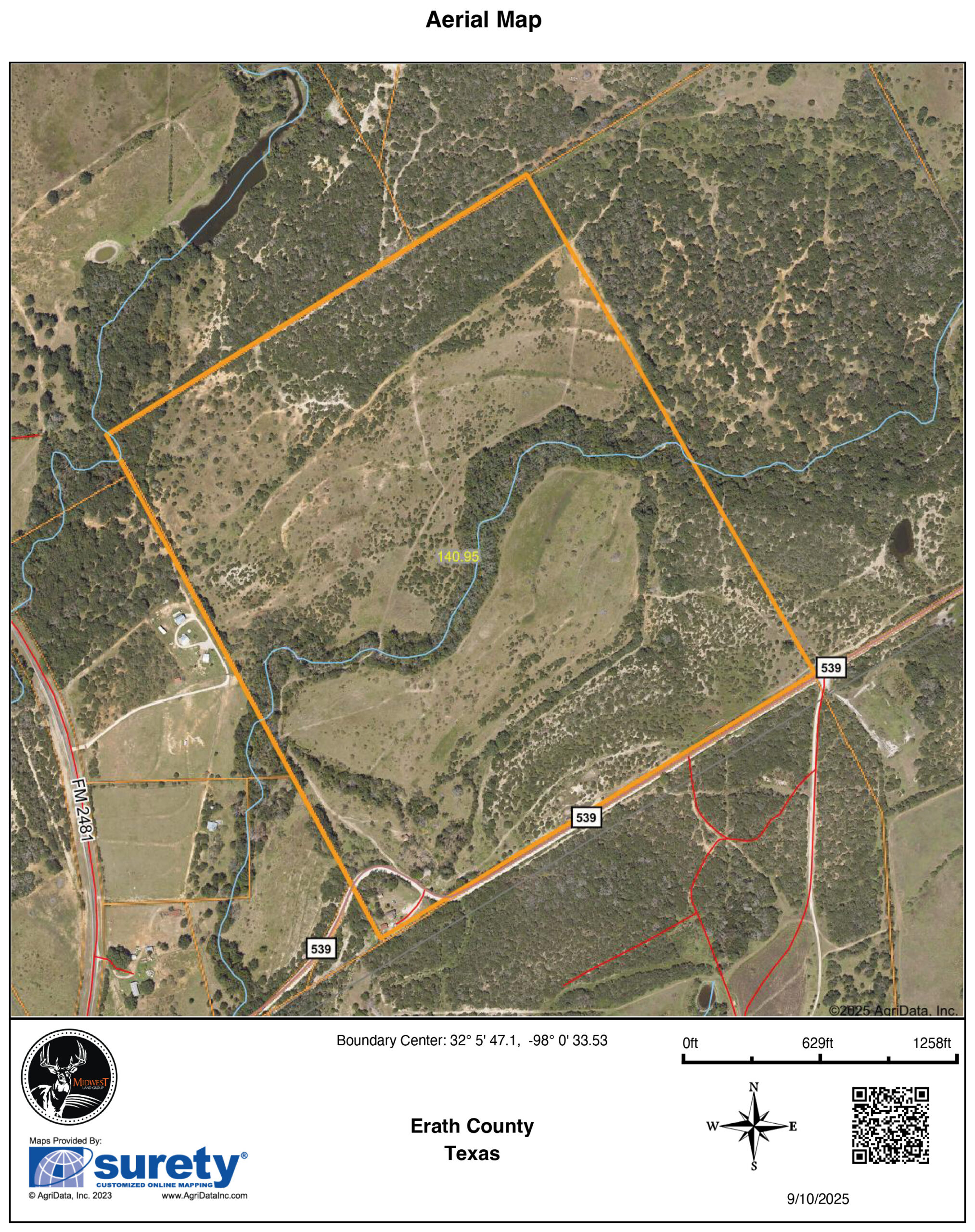Nestled in the scenic Chalk Mountain area of Erath County, this 140 acre tract represents the back portion of the renowned Bull Lion Ranch and Winery. This exceptional recreational property is a true outdoorsman’s dream, offering abundant wildlife including whitetail deer, turkey, and hogs. A seasonal creek meanders through the middle of the property, beautifully separating two distinct pastures and enhancing the natural charm.
