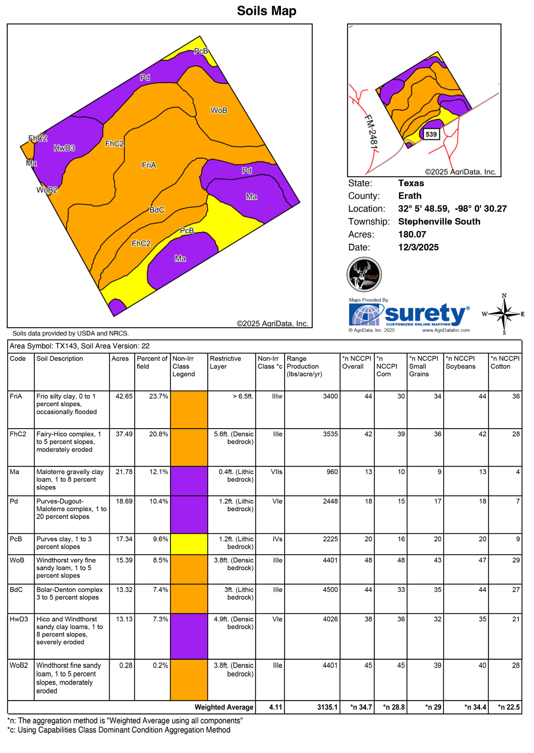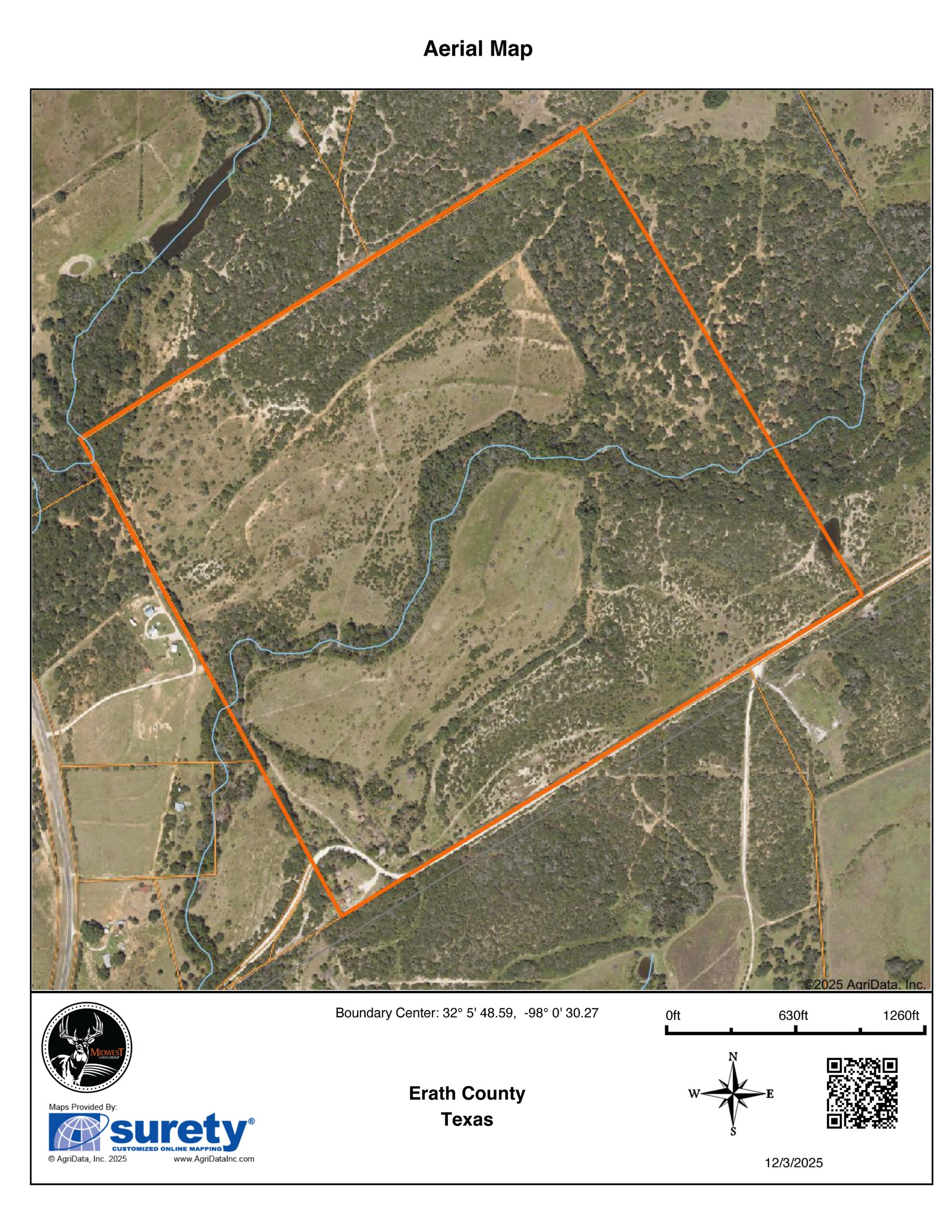 Nestled in the scenic Chalk Mountain area of Erath County, this 180 +/- acre tract represents the back portion of the renowned Bull Lion Ranch and Winery. This exceptional recreational property is a true outdoorsman’s dream, offering abundant wildlife, including whitetail deer, turkey, and hogs. A seasonal creek meanders through the middle of the property, beautifully separating two distinct pastures and enhancing the natural charm.The land features a diverse mix of hardwoods along the creek and mesquite-dotted pastures, providing both cover and character. Several prime build sites offer sweeping views and privacy, perfect for a weekend retreat or a dream ranch homestead. The property includes a charming farmhouse built in 1905, full of character and ready for restoration or renovation. Its classic design and historic presence add a unique touch, offering the perfect opportunity to create a cozy ranch home or guest retreat. A well-maintained trail system offers excellent access throughout the property, ideal for ATV use, hiking, or hunting.