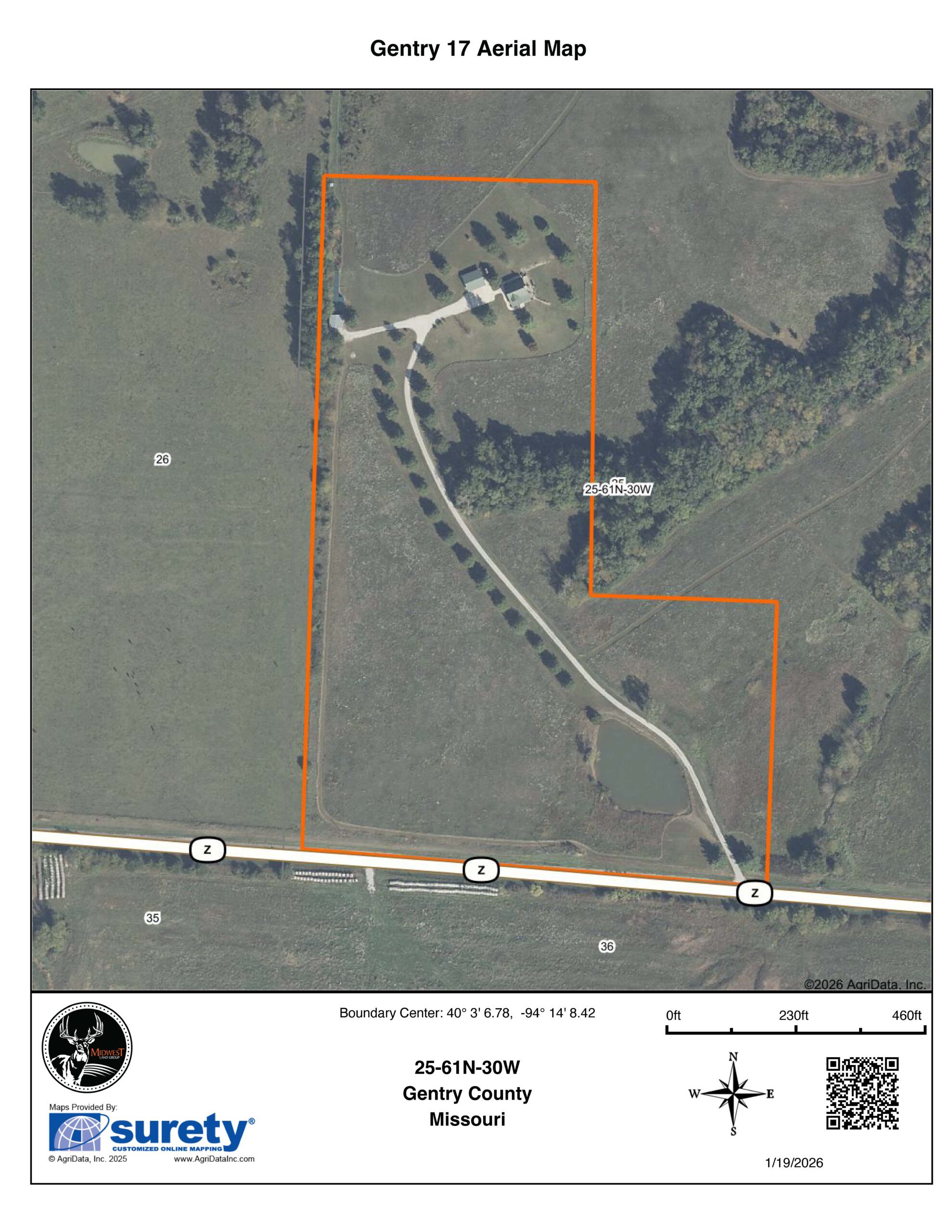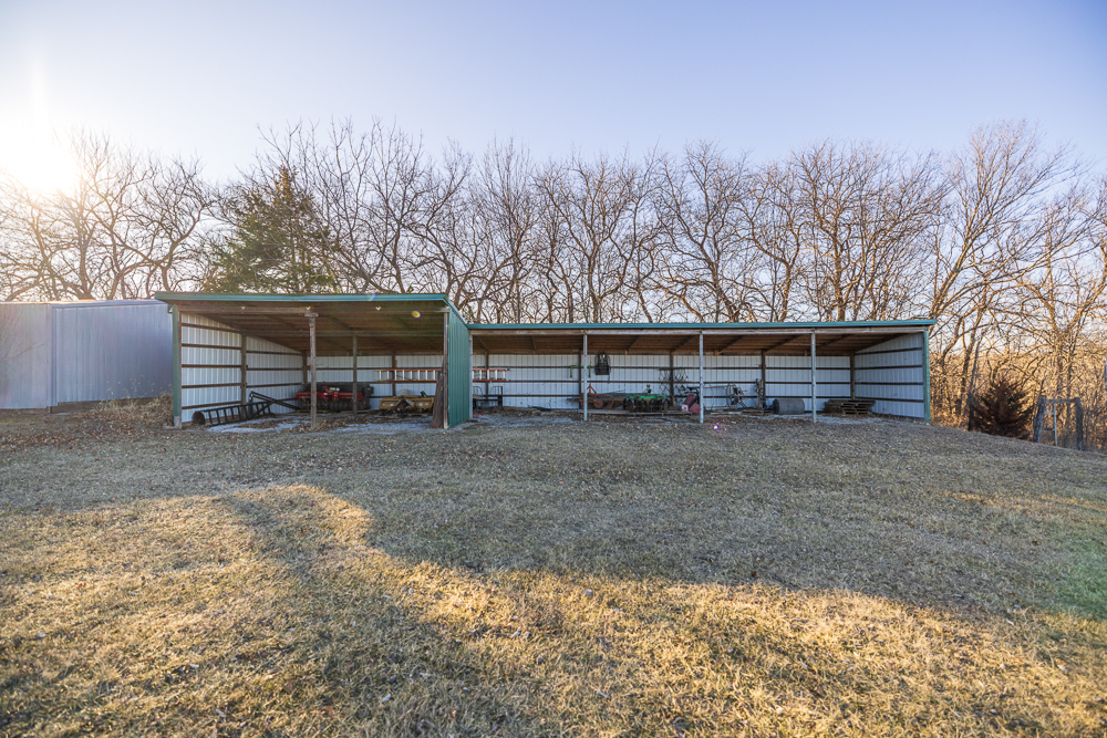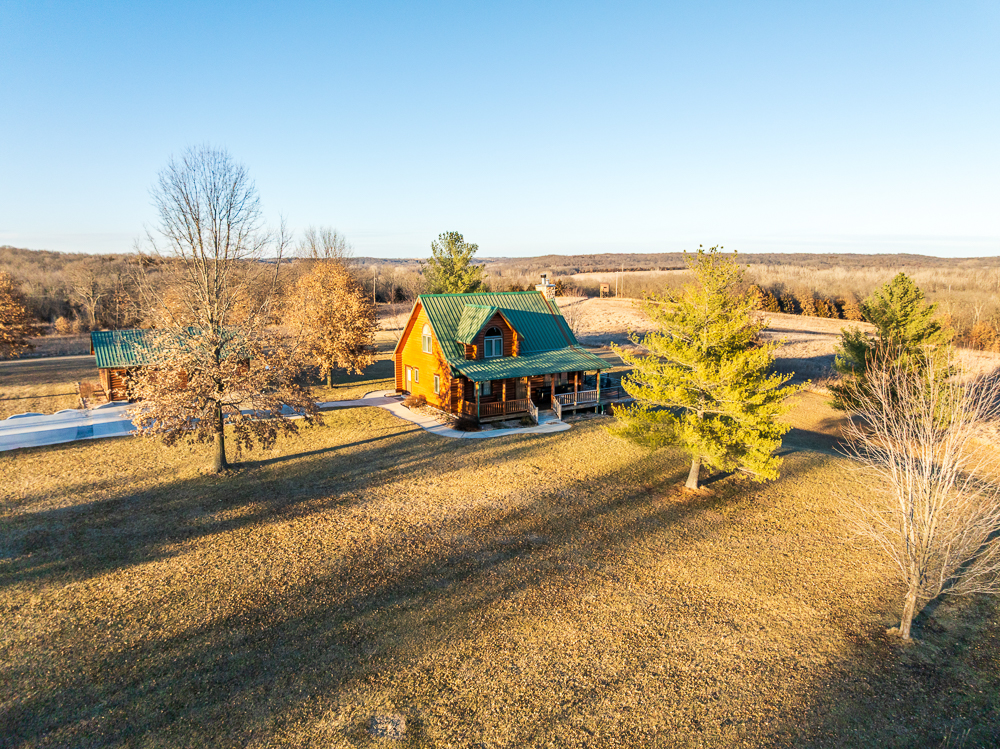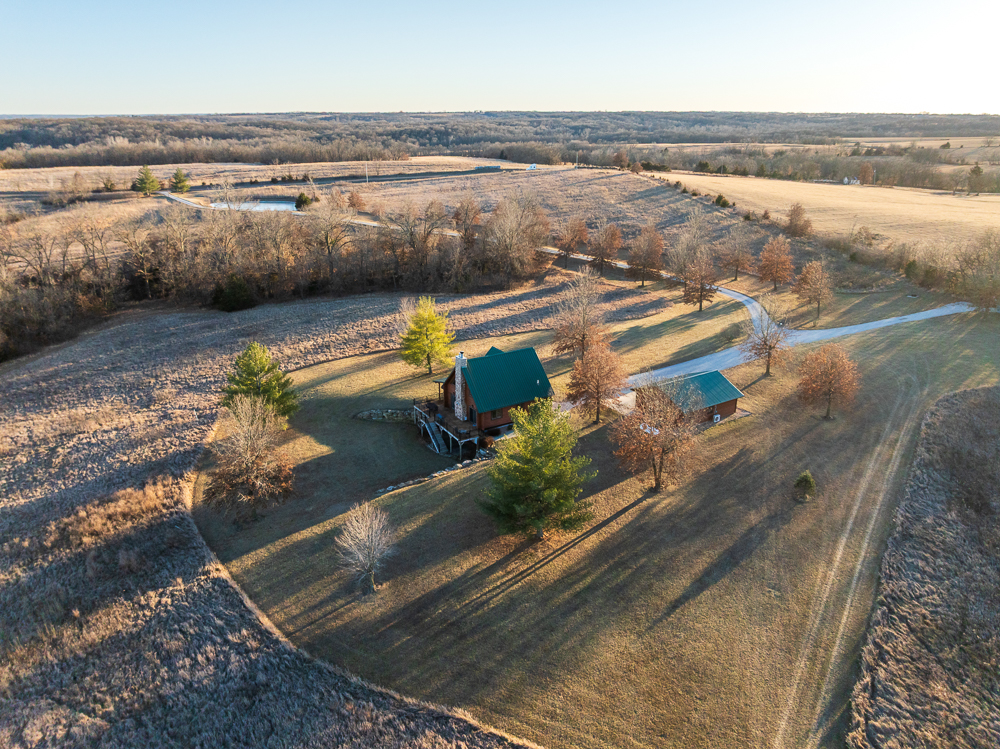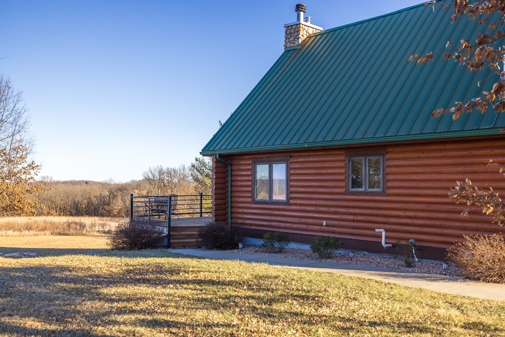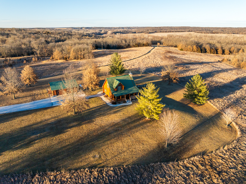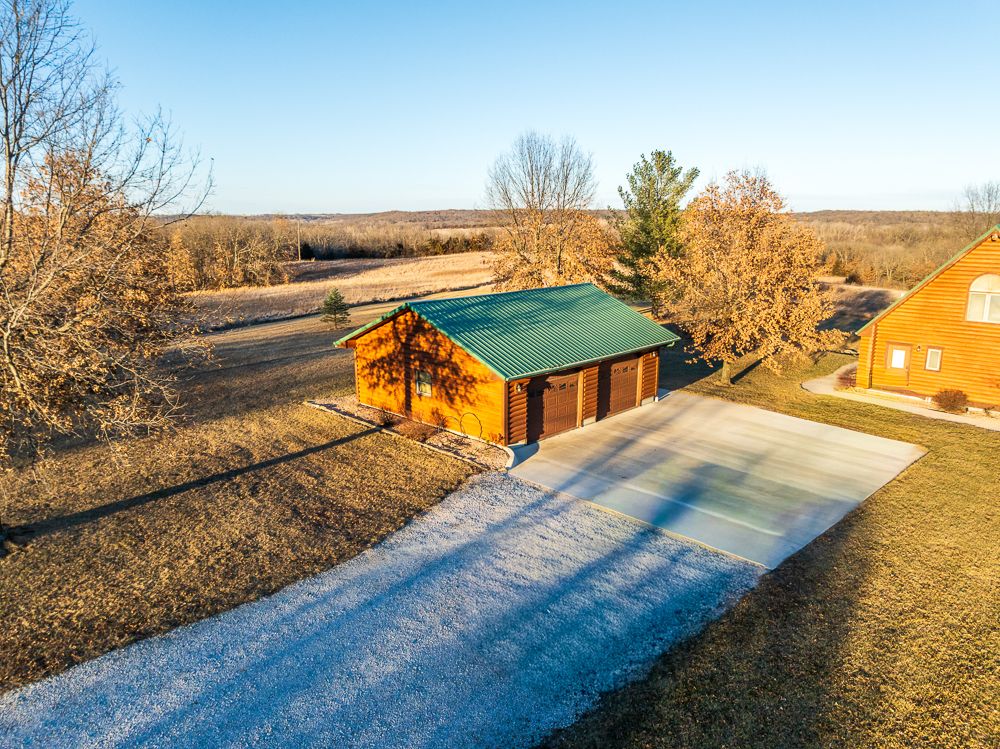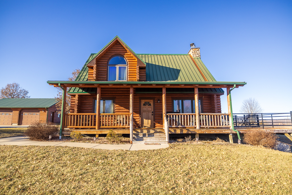 Beautiful secluded country setting with gorgeous views. This 17+/- acre property sits just into Gentry County with paved road frontage. Just minutes from Interstate 35, as you pull in, you will already feel how secluded this property is as you drive across the pond dam along the treed driveway. Tucked over 400 yards off the road, you will find a beautiful log home that has that feeling you are in the mountains on vacation. Custom stone fireplace, antler chandelier, log railings, hardwood floors, and open vaulted ceilings with a large loft. The master is on the main level with a full bath and an open kitchen. Outside, you will find a covered front porch leading to a wrap-around deck with new metal railing and low maintenance metal roof. The walk-out basement gives you even more room for friends and family with an additional bathroom, laundry hookups, and wood burning stove. The large 2-car garage matches the log home and is fully insulated with mini-split HVAC. There is also a small shop and a large lean-to for your equipment storage. Very well kept, this property also has potential as a rental for additional income if you are not considering it as your primary residence. There is a new Marathon water heater, and the HVAC system has all been replaced within the last couple of years. Attention to detail and that mountain feeling are what you will find on this one-of-a-kind acreage. Call Paul Lowry at (816) 500-2513 to schedule your private tour today.