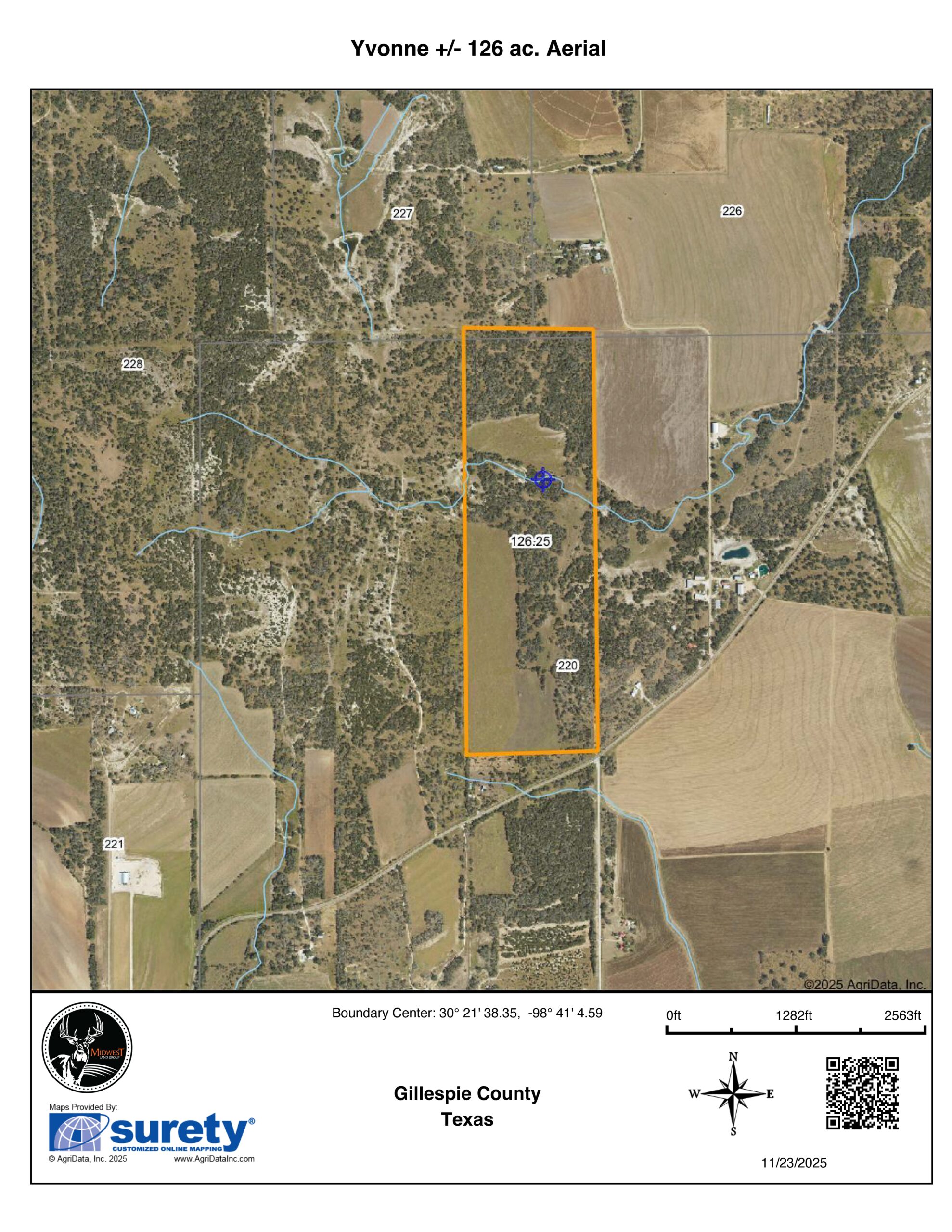 Discover a rare opportunity to own 126 +/- acres of unspoiled Texas countryside, located less than 20 minutes from downtown Fredericksburg—one of the most desirable and fastest-growing small towns in the state. This expansive tract offers the perfect blend of rolling terrain, mature trees, and open pasture, creating an ideal setting for hunting, recreation, farming, or ranching. Whether you're exploring trails, setting up for deer season, or running livestock, this land delivers unmatched freedom and versatility.Beyond its recreational appeal, the property offers incredible potential to build your dream home or family estate, with sweeping views, peaceful seclusion, and the privacy only a large acreage tract can provide. Here, you can enjoy quiet Hill Country living while staying close to the restaurants, wineries, shopping, and charm that make Fredericksburg such a booming destination.