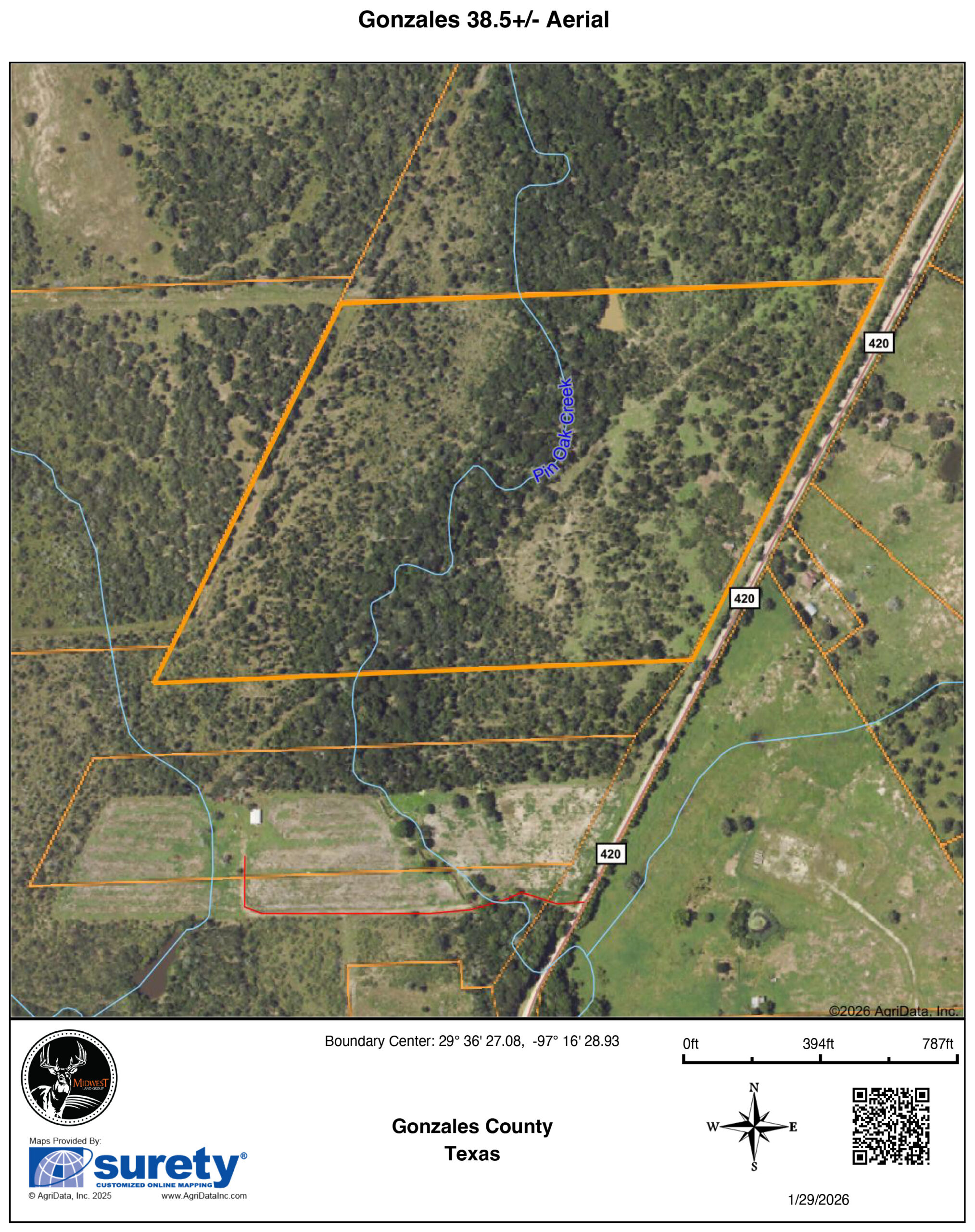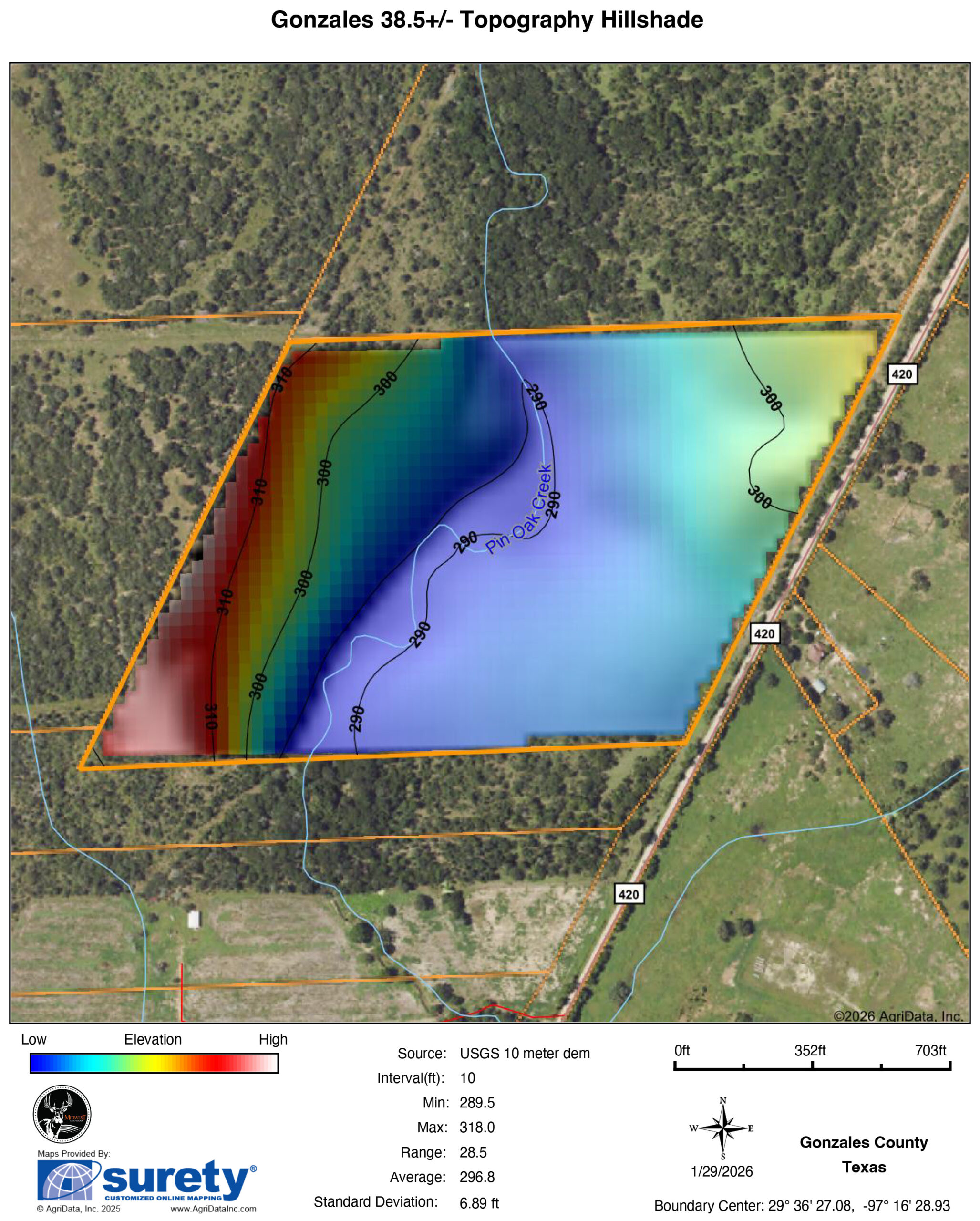 - Wet-weather creek crosses the center of the property, north to south
