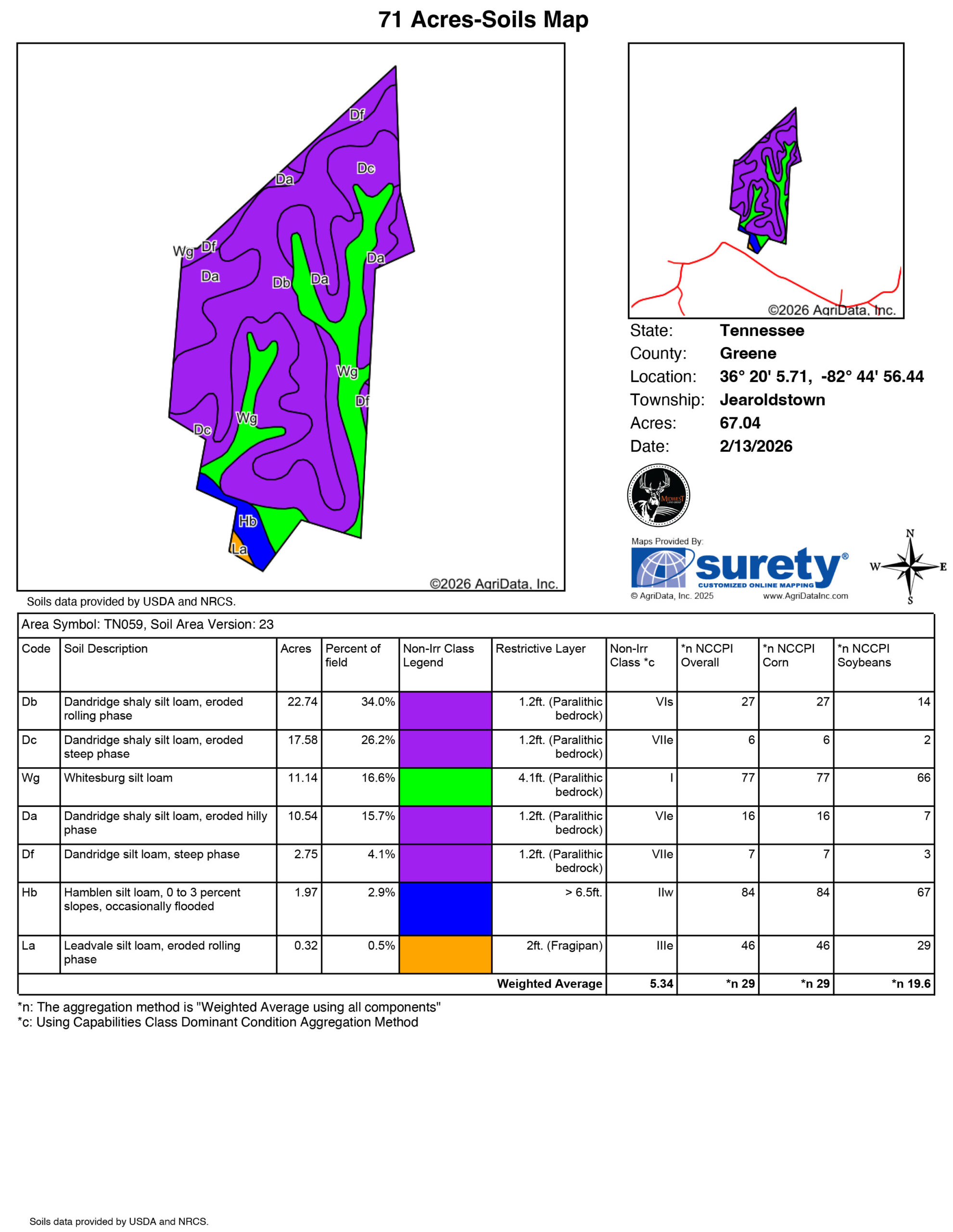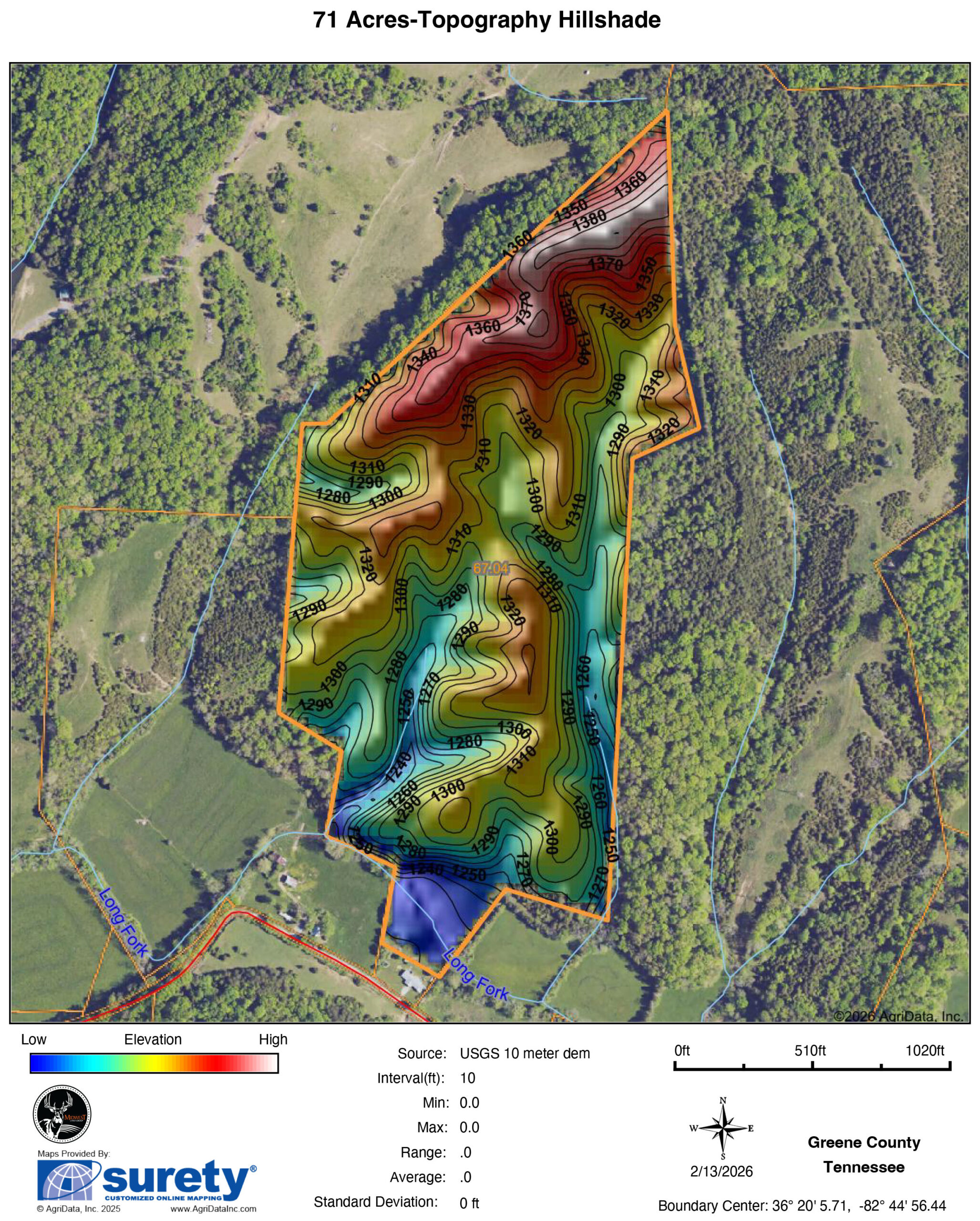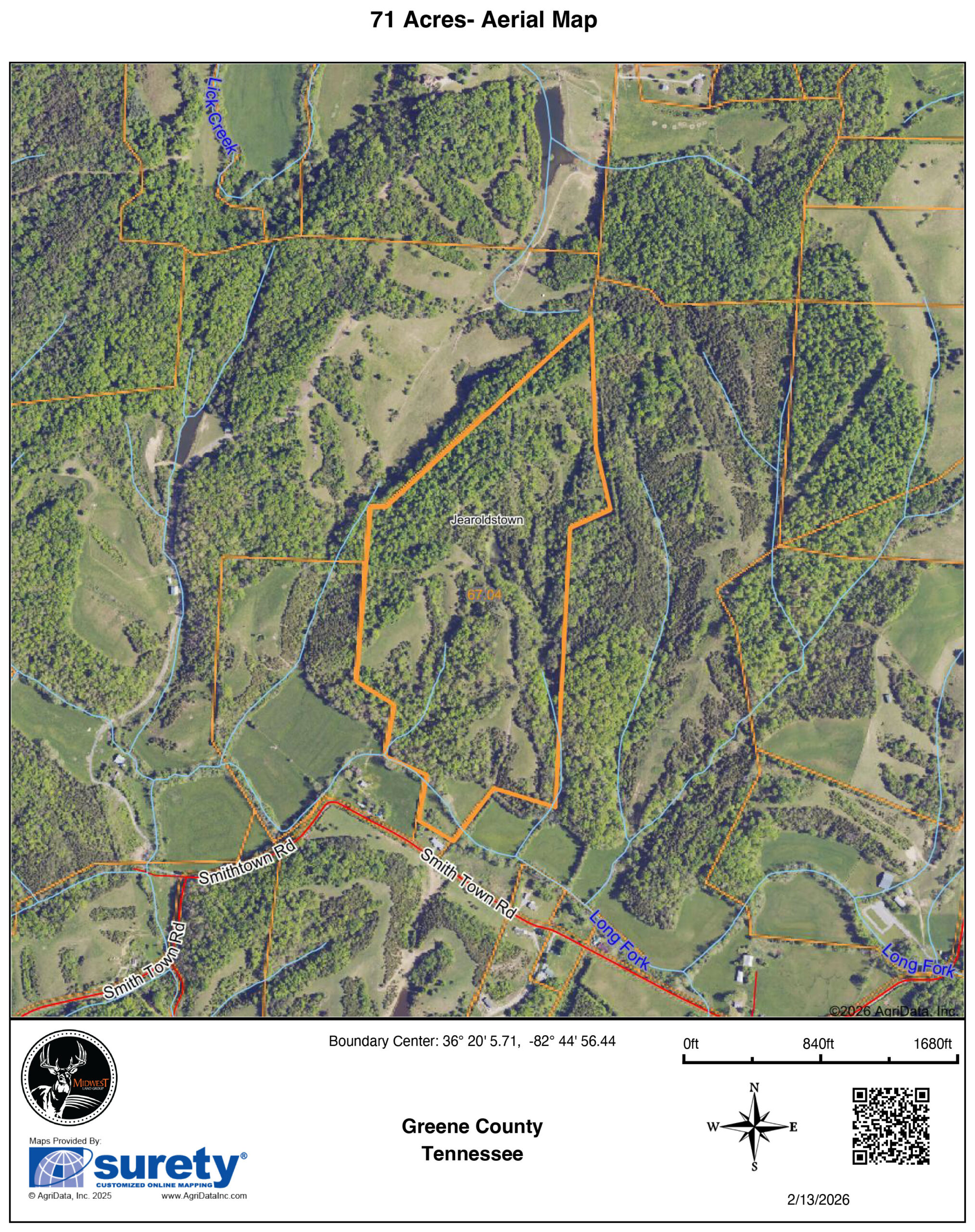 Tucked away in the heart of Afton, Tennessee, in Greene County, this 71.4 +/- acre tract is a true hunter’s paradise and an amazing opportunity to own a premier piece of East Tennessee ground. From the moment you enter the property, you’ll appreciate the well-maintained trail and road system that provides easy access to every corner of the land. Rolling terrain transitions into beautiful hardwood bottoms, while evergreen trees scattered throughout offer year-round cover for wildlife and natural privacy for future homesites.Designed by nature and enhanced for wildlife, this farm features numerous open fields perfectly suited for food plots that consistently attract deer and turkey. Hunting blinds are strategically positioned across the property, showcasing some of the best vantage points and proven hunting locations. A scenic duck pond, fed by one or more natural springs, serves as both a waterfowl destination and a peaceful focal point. Those same springs and more help supply over 600 feet of Long Fork Creek frontage along the southern boundary, creating a year-round water source that further enhances the habitat and recreational appeal.