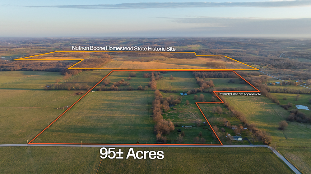 The standout feature is that this property directly borders the Nathan Boone Homestead State Historic Site. That means protected land behind you, added privacy, and a setting that simply won’t be replicated. The small block of timber adds diversity as it borders the state park and creates a wildlife habitat that's unmatched. Deer and turkey have a sanctuary to the north and consistently travel through this property, unbothered.