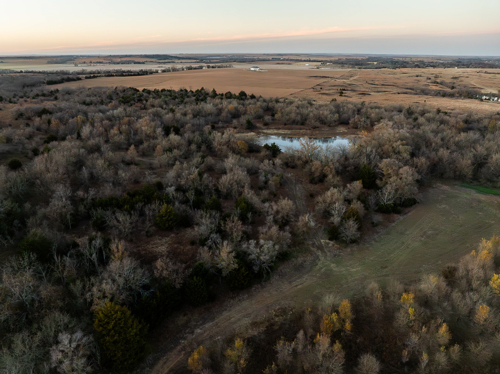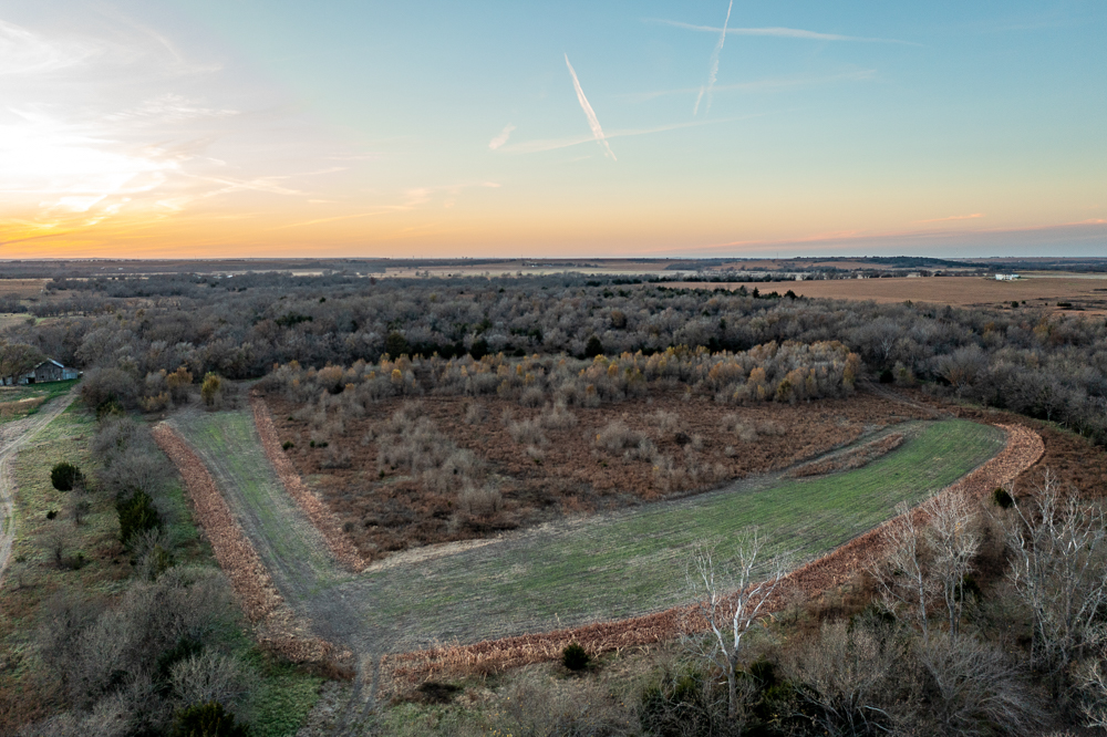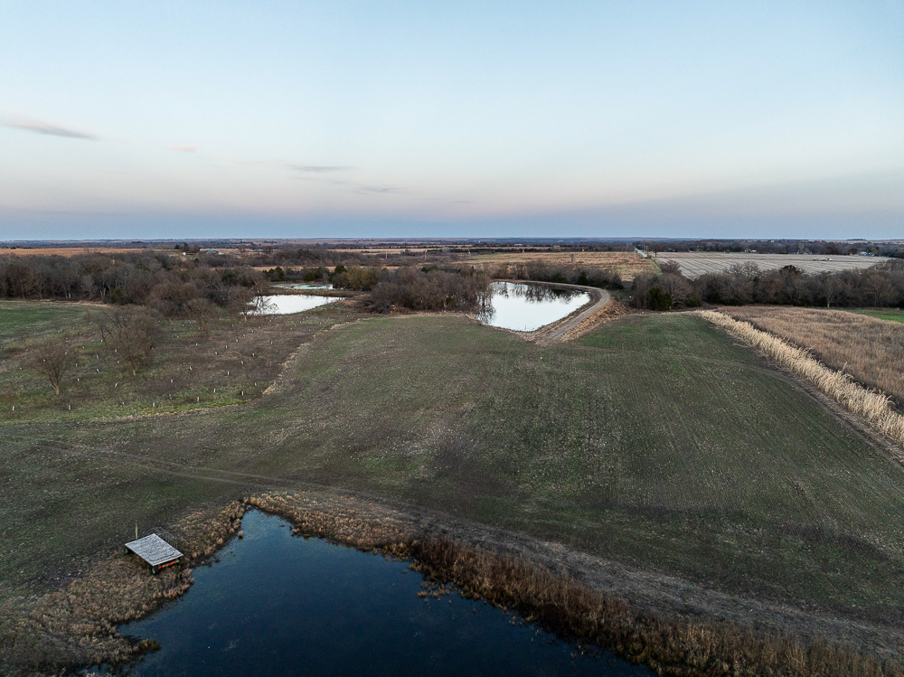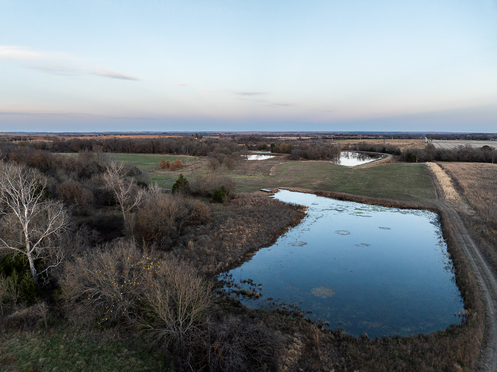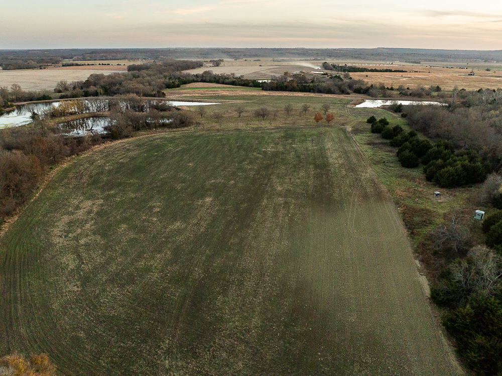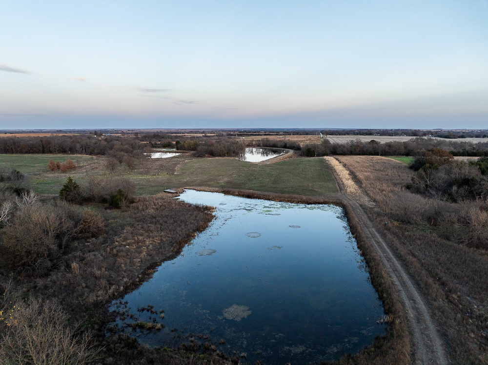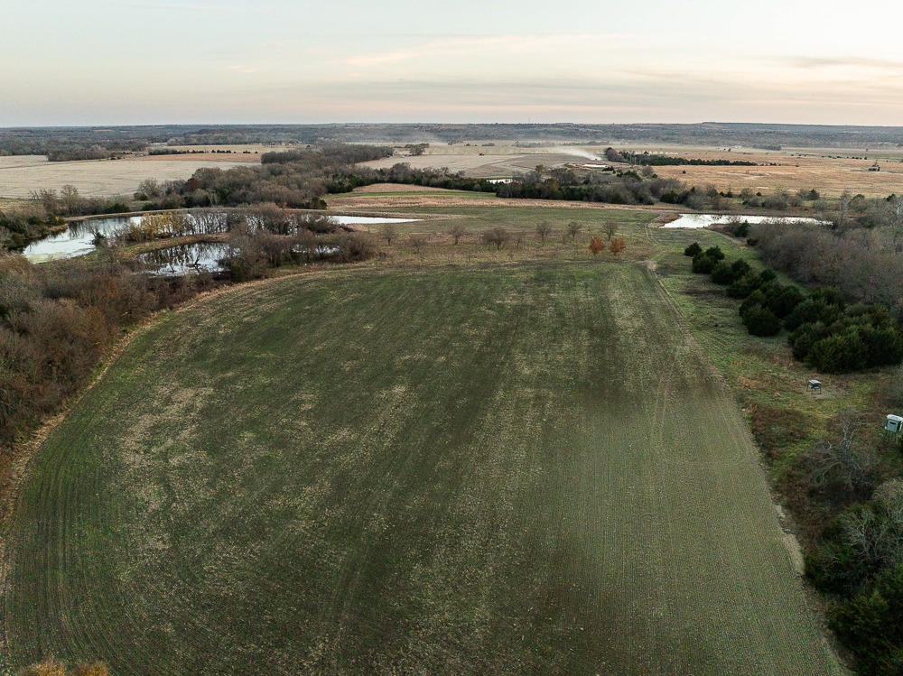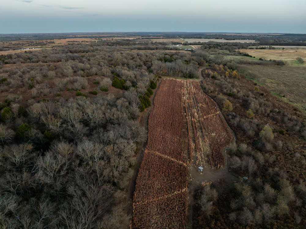 Pulling up to the double-piped gate entrance, you will take note already on the seclusion and being wrapped in cattle country and tillable fields. The farm is the largest block of timber and cover, giving the opportunity to hold wildlife. Head east on the internal trail system and take a loop with ease through the first pond and food plot area with the 5-acre lake just ahead. This area has been forged into a prime waterfowl mecca. With year-round standing food and ideal roosting, these migratory birds don’t have any intention of leaving. Each hunt, a success with multiple limits being met. To the north, a 7 +/- acre food plot lays out just to the west of the heavy timber block with a tributary that runs throughout, feeding into the lake. There is a tower blind and an overhead feeder on the apron on the west. Head west to the 2nd food plot, then continue through the timber stand. The majority of the timber species are Osage Orange, Locust, Cedar, Black Walnut, Ash, Elm, and Cottonwood throughout. Rubs, scraps, and trails running in every direction, deery is the correct word. The loop brings you into the 3rd food plot with a blind and overhead feeder. The food plot areas are set up with 2 entry trails, allowing one to play with the winds. Head on northwest and come to the 2nd spring-fed pond. This pond is alive, with wood ducks and Canadian geese as frequent guests to the farm, and provides a reliable year-round water source for both wildlife and recreation. The northwest and middle of the farm hold the highest points on the farm and is the bedding sanctuary. Thick and wholly as can be. The heavy timber and thick bedding cover form a prime sanctuary that holds mature bucks throughout the season. The 4th food plot is in the southwest corner and holds another set of strategically placed blinds and feeders that support consistent deer movement and make this property truly turn-key. The land also features a piece of farm history with the original 1900s barn that still stands, providing storage and cover space, a remnant from the original farmstead. Five-strand perimeter fencing surrounds the property. Rural water line runs to the property where the original farmhouse once stood. Meters are available with Greenwood County Rural Water District #1. Electric runs to the farm, a meter is needed. All mineral rights are intact and transfers. Hunting Unit #14.