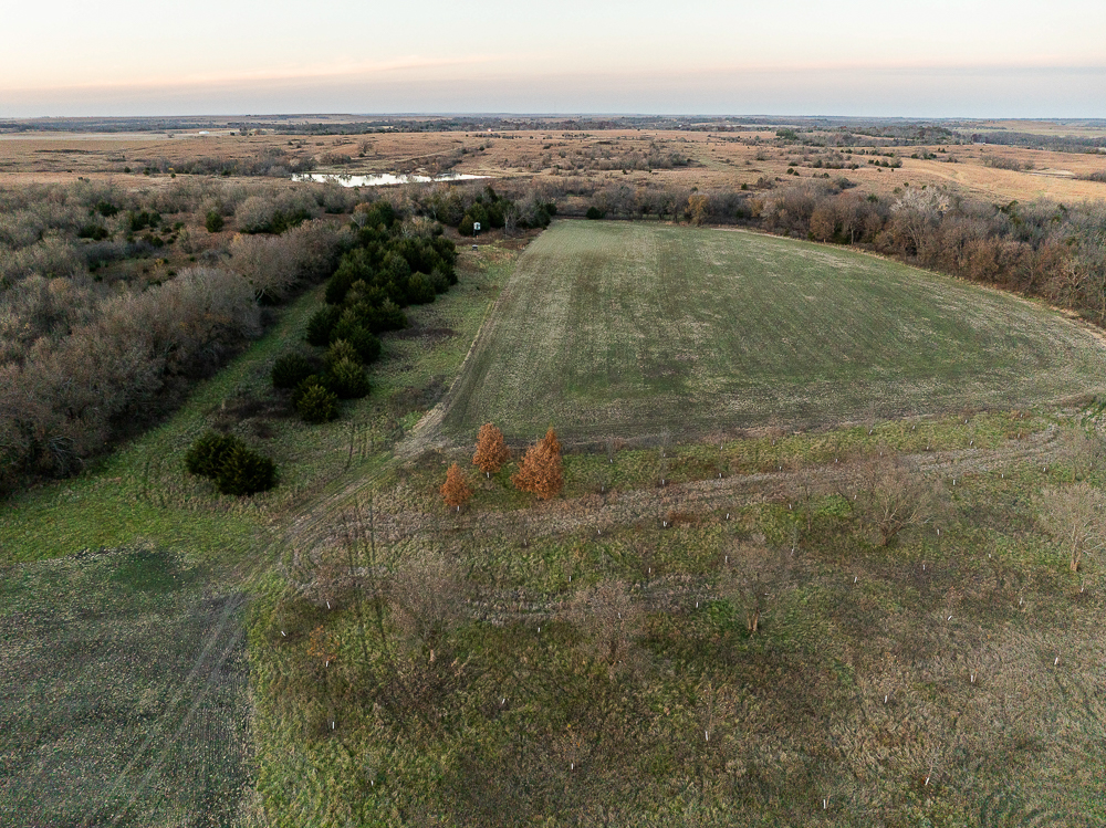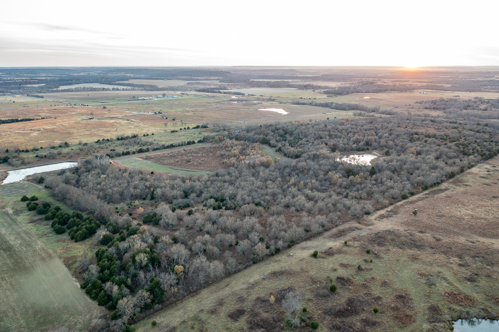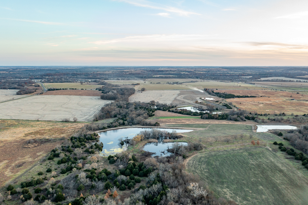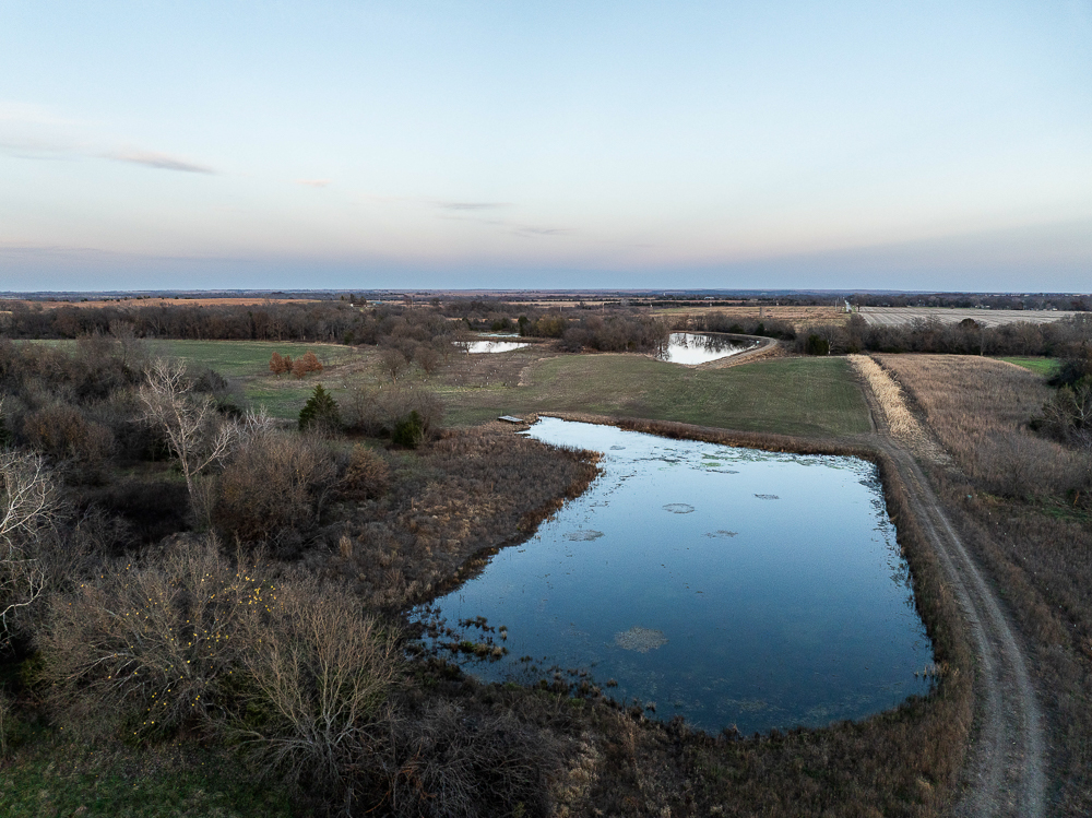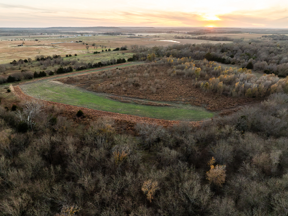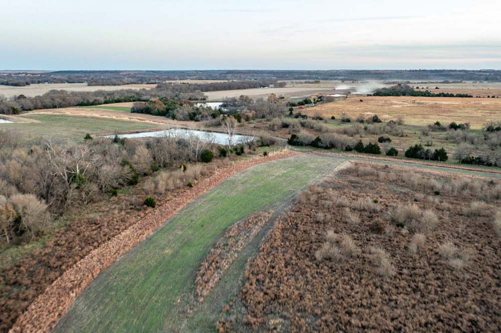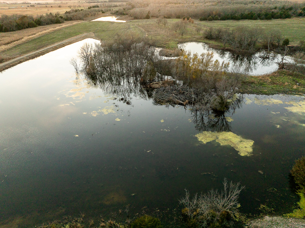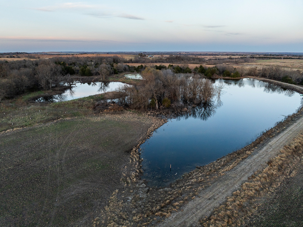 Pulling up to the double-piped gate entrance, you will take note already on the seclusion and being wrapped in cattle country and tillable fields. The farm is the largest block of timber and cover, giving the opportunity to hold wildlife. Head east on the internal trail system and take a loop with ease through the first pond and food plot area with the 5-acre lake just ahead. This area has been forged into a prime waterfowl mecca. With year-round standing food and ideal roosting, these migratory birds don’t have any intention of leaving. Each hunt, a success with multiple limits being met. To the north, a 7 +/- acre food plot lays out just to the west of the heavy timber block with a tributary that runs throughout, feeding into the lake. There is a tower blind and an overhead feeder on the apron on the west. Head west to the 2nd food plot, then continue through the timber stand. The majority of the timber species are Osage Orange, Locust, Cedar, Black Walnut, Ash, Elm, and Cottonwood throughout. Rubs, scraps, and trails running in every direction, deery is the correct word. The loop brings you into the 3rd food plot with a blind and overhead feeder. The food plot areas are set up with 2 entry trails, allowing one to play with the winds. Head on northwest and come to the 2nd spring-fed pond. This pond is alive, with wood ducks and Canadian geese as frequent guests to the farm, and provides a reliable year-round water source for both wildlife and recreation. The northwest and middle of the farm hold the highest points on the farm and is the bedding sanctuary. Thick and wholly as can be. The heavy timber and thick bedding cover form a prime sanctuary that holds mature bucks throughout the season. The 4th food plot is in the southwest corner and holds another set of strategically placed blinds and feeders that support consistent deer movement and make this property truly turn-key. The land also features a piece of farm history with the original 1900s barn that still stands, providing storage and cover space, a remnant from the original farmstead. Five-strand perimeter fencing surrounds the property. Rural water line runs to the property where the original farmhouse once stood. Meters are available with Greenwood County Rural Water District #1. Electric runs to the farm, a meter is needed. All mineral rights are intact and transfers. Hunting Unit #14.