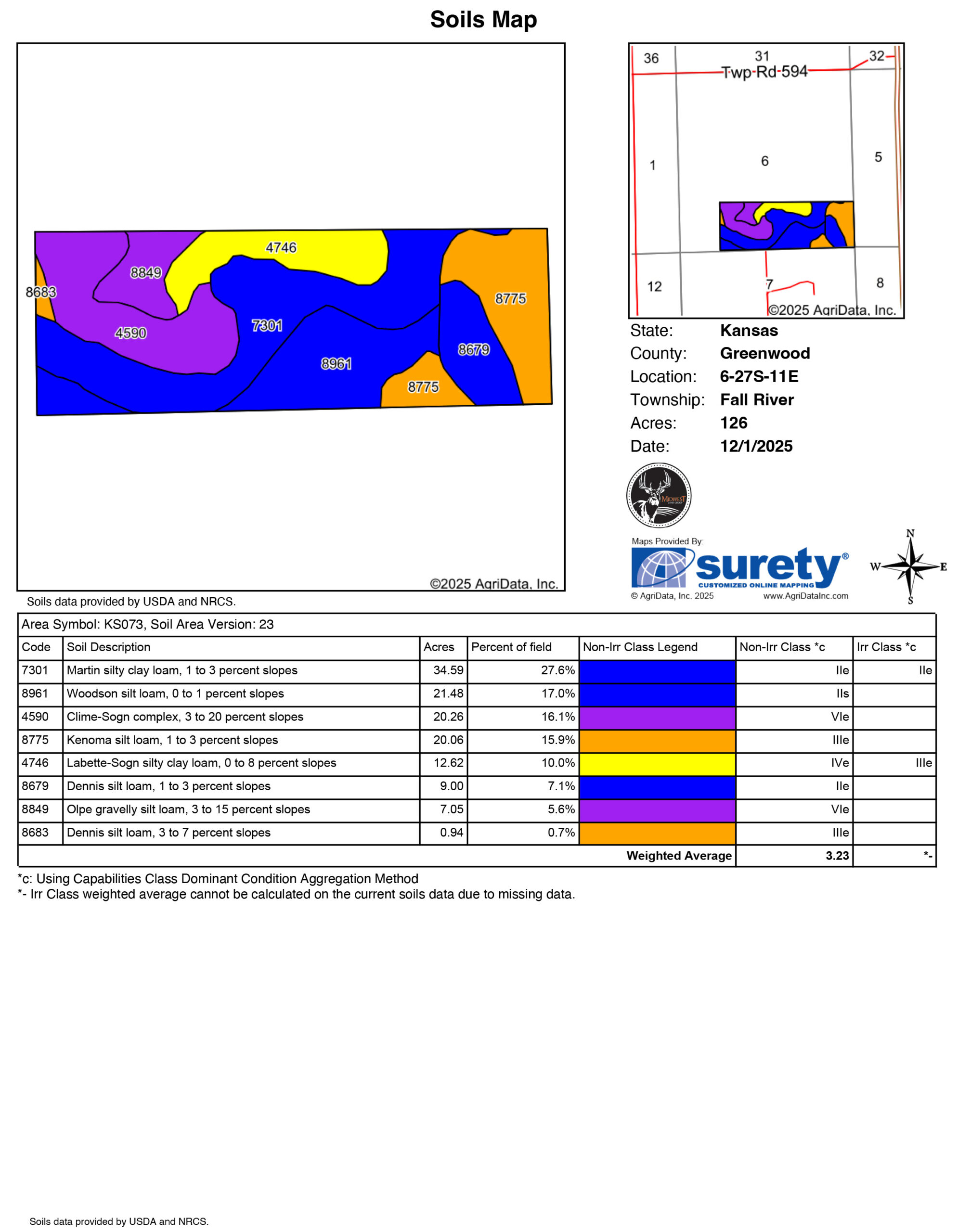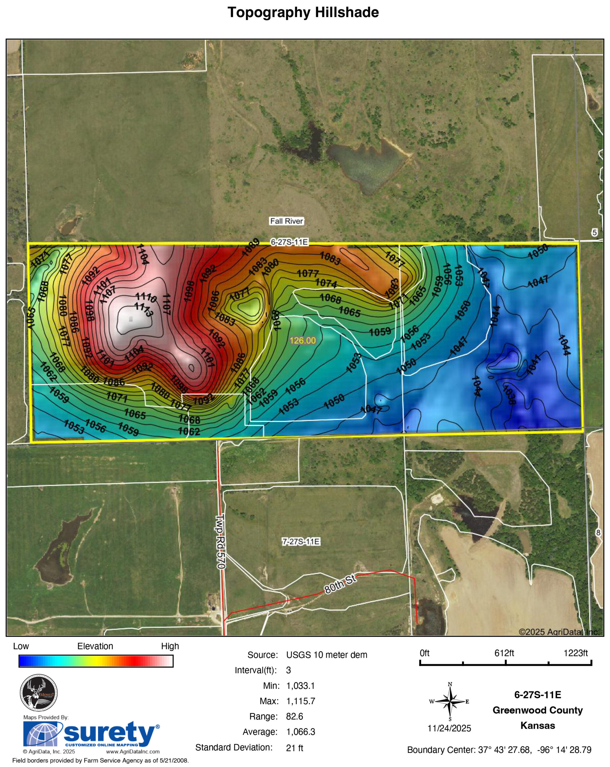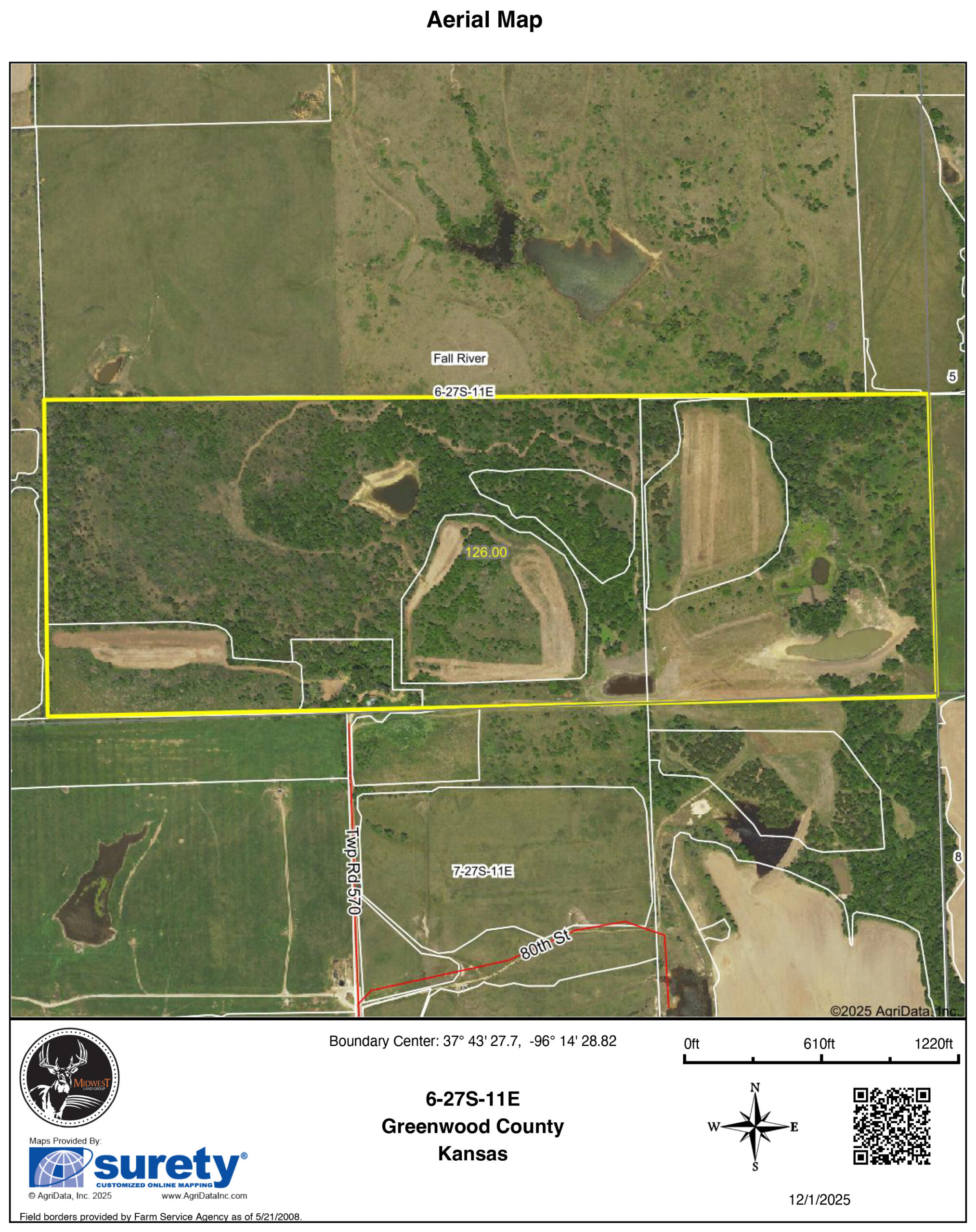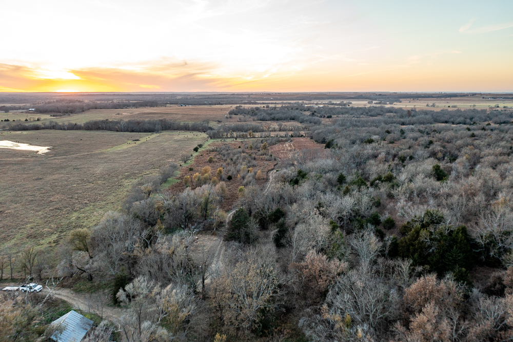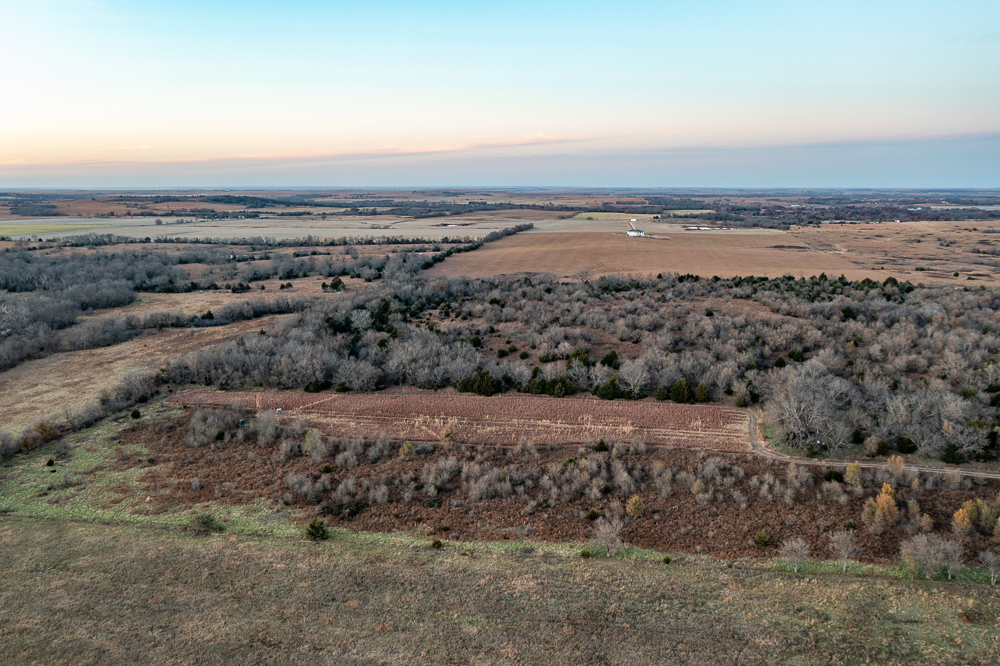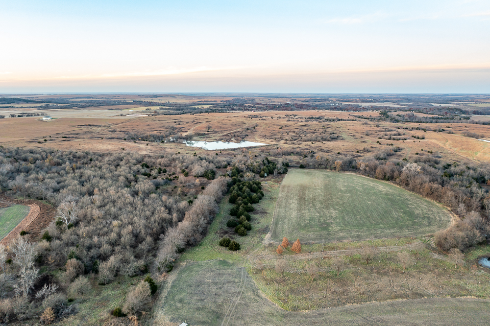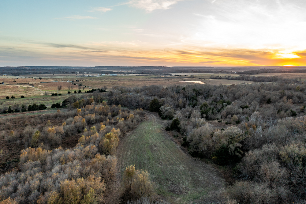 Pulling up to the double-piped gate entrance, you will take note already on the seclusion and being wrapped in cattle country and tillable fields. The farm is the largest block of timber and cover, giving the opportunity to hold wildlife. Head east on the internal trail system and take a loop with ease through the first pond and food plot area with the 5-acre lake just ahead. This area has been forged into a prime waterfowl mecca. With year-round standing food and ideal roosting, these migratory birds don’t have any intention of leaving. Each hunt, a success with multiple limits being met. To the north, a 7 +/- acre food plot lays out just to the west of the heavy timber block with a tributary that runs throughout, feeding into the lake. There is a tower blind and an overhead feeder on the apron on the west. Head west to the 2nd food plot, then continue through the timber stand. The majority of the timber species are Osage Orange, Locust, Cedar, Black Walnut, Ash, Elm, and Cottonwood throughout. Rubs, scraps, and trails running in every direction, deery is the correct word. The loop brings you into the 3rd food plot with a blind and overhead feeder. The food plot areas are set up with 2 entry trails, allowing one to play with the winds. Head on northwest and come to the 2nd spring-fed pond. This pond is alive, with wood ducks and Canadian geese as frequent guests to the farm, and provides a reliable year-round water source for both wildlife and recreation. The northwest and middle of the farm hold the highest points on the farm and is the bedding sanctuary. Thick and wholly as can be. The heavy timber and thick bedding cover form a prime sanctuary that holds mature bucks throughout the season. The 4th food plot is in the southwest corner and holds another set of strategically placed blinds and feeders that support consistent deer movement and make this property truly turn-key. The land also features a piece of farm history with the original 1900s barn that still stands, providing storage and cover space, a remnant from the original farmstead. Five-strand perimeter fencing surrounds the property. Rural water line runs to the property where the original farmhouse once stood. Meters are available with Greenwood County Rural Water District #1. Electric runs to the farm, a meter is needed. All mineral rights are intact and transfers. Hunting Unit #14.