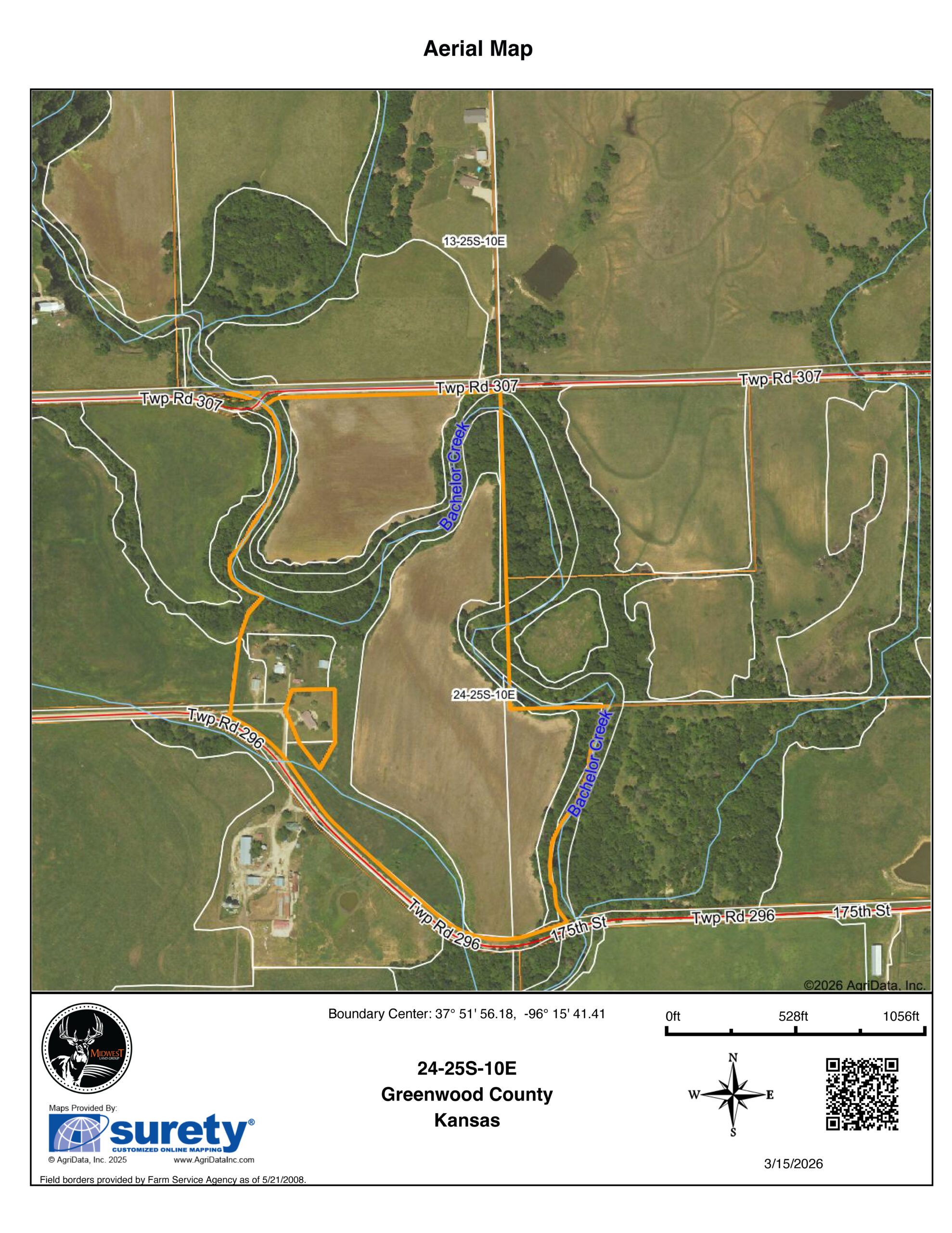 Flowing through the property is Bachelor Creek, which enhances both the beauty and recreational potential of the land. The creek corridor provides excellent wildlife habitat and creates a scenic natural feature that sets this property apart. With a spacious 4-bedroom home, productive farmland, live water, and close proximity to Eureka Lake, this 47 +/- acre property presents a rare opportunity to own a well-rounded piece of Kansas countryside.