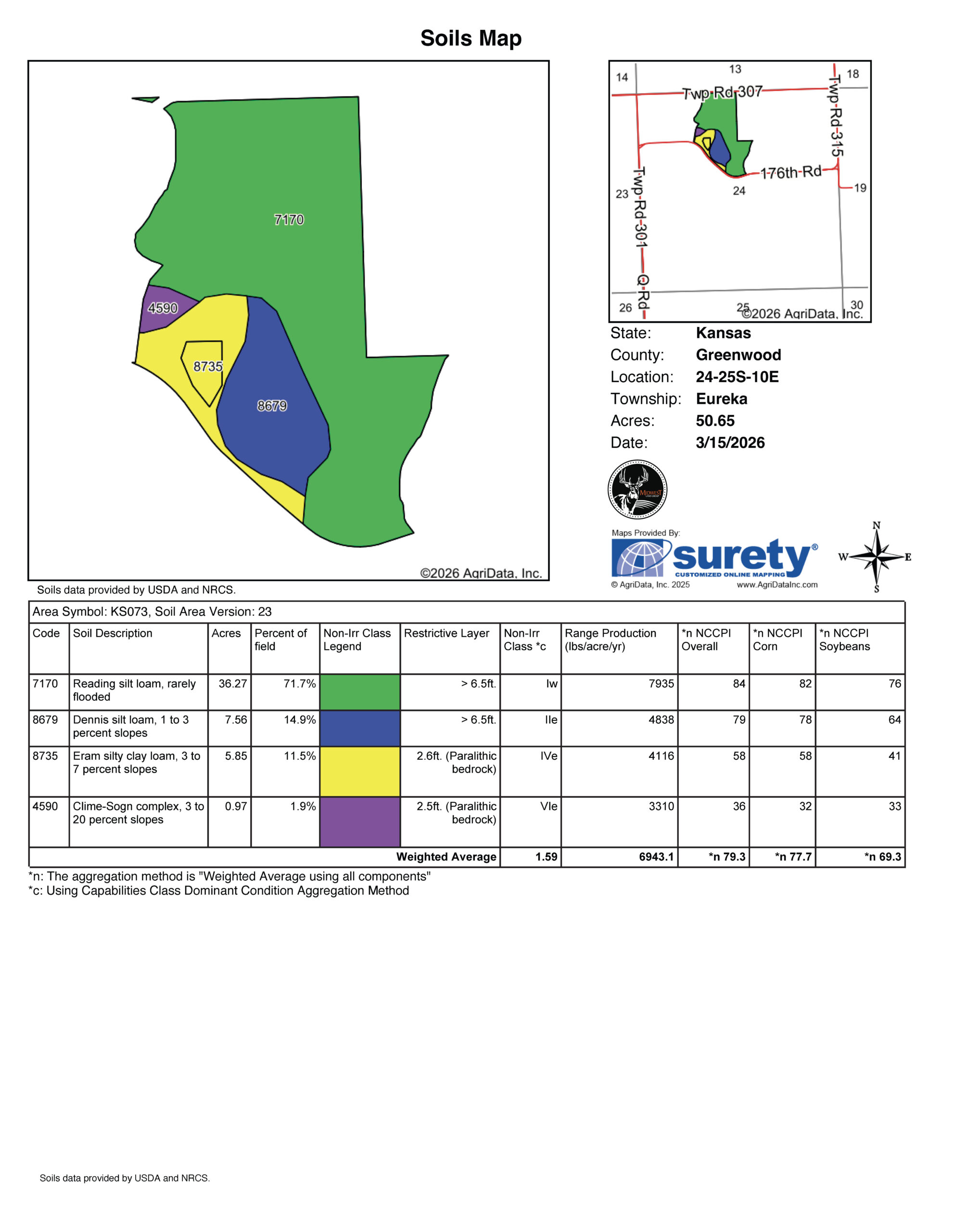 - 84 NCCPI overall soil average, providing strong agricultural capability