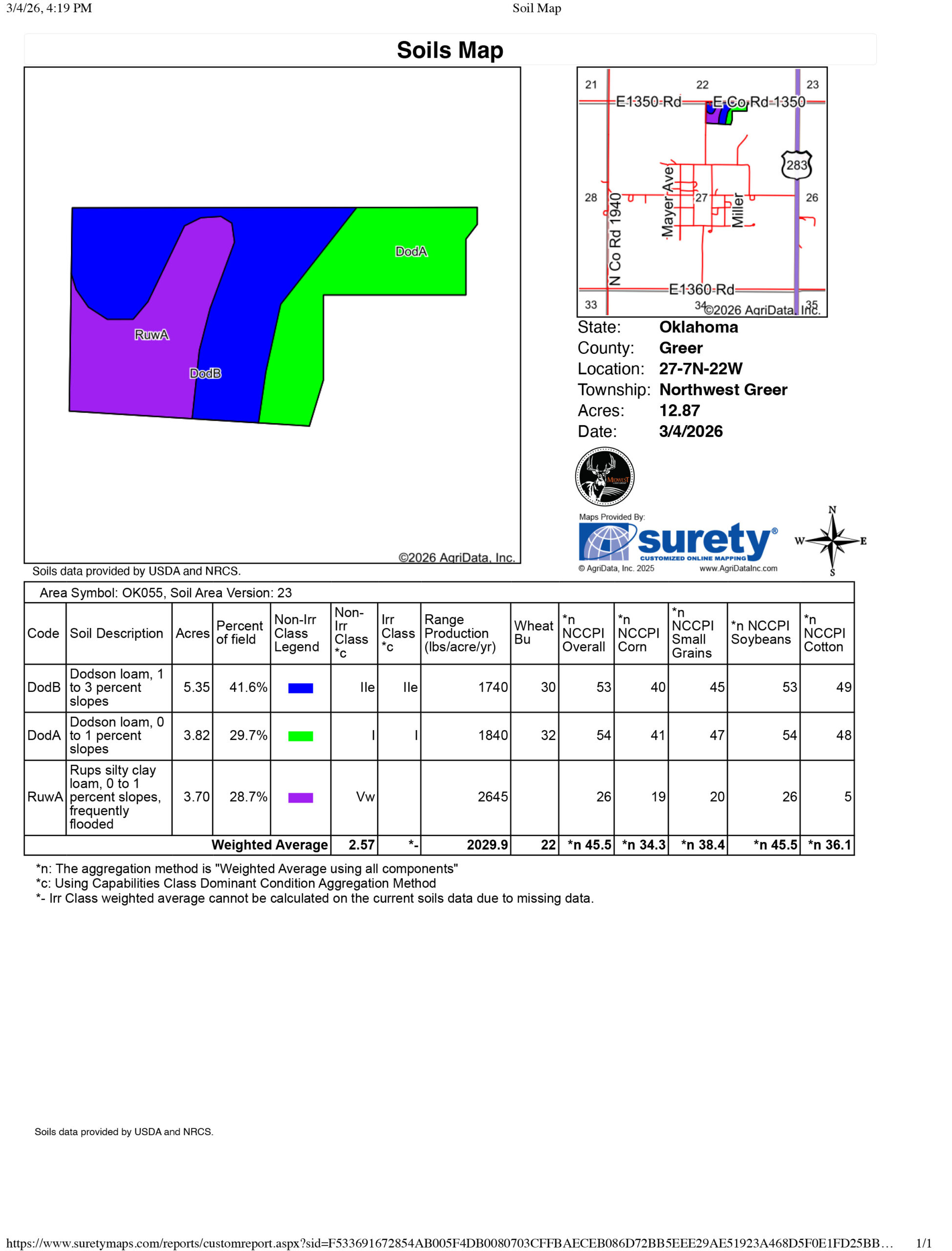 Located in northwest Greer County, this well-maintained country home sits on approximately 13 acres, offering the perfect balance of comfort, privacy, and usable land. The 2,052 +/- square foot residence features 3 bedrooms and 1 bathroom with a practical layout for everyday living. A safe room provides added storm protection, making this home a secure and comfortable retreat.The property includes a 2,000 square foot shop with concrete flooring and electricity — ideal for equipment storage, hobbies, or workshop projects. The acreage is partially fenced, offering room for horses, small livestock, or a garden, while mature shade trees provide natural beauty and comfort. Productive Class I & II soils add to the land’s versatility and usability.