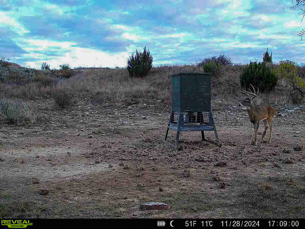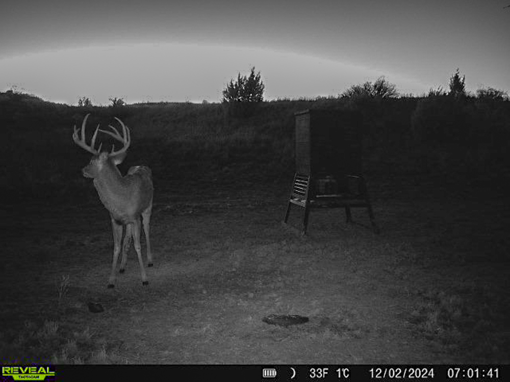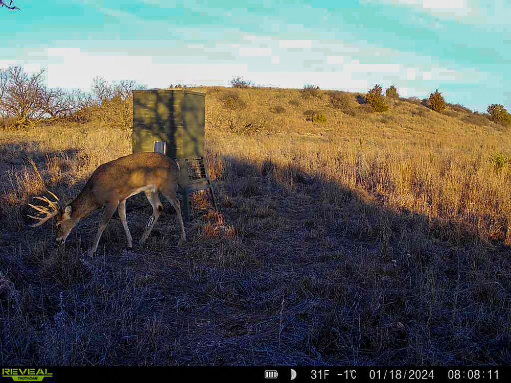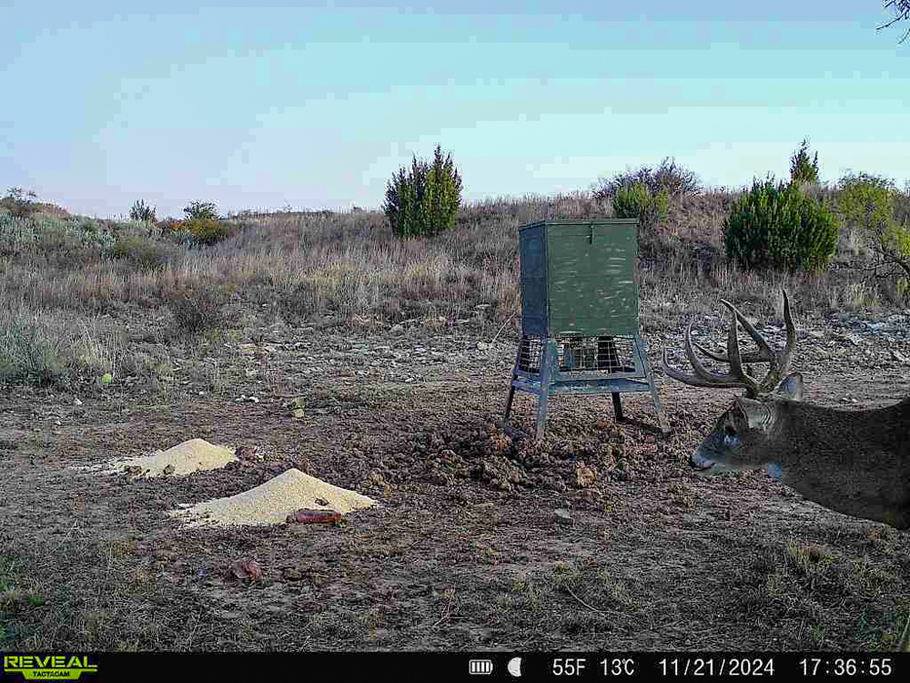 This turn-key hunting property comes complete with two 800-pound all-season spinner feeders and one MB Ranch King Little Buck blind mounted on a 5-foot stand. The grassland is in pristine condition, having remained ungrazed for several years, and features multiple native varieties, including side oats grama, bluestem, indiangrass, and buffalo grass. Wildlife is abundant, with healthy populations of whitetail deer, feral hogs, dove, and quail utilizing the property's excellent habitat. The adjacent tillable field to the west provides additional winter food sources, while the small mesquite flats offer ideal bedding areas, making this an exceptional opportunity for the serious hunter or outdoor enthusiast.