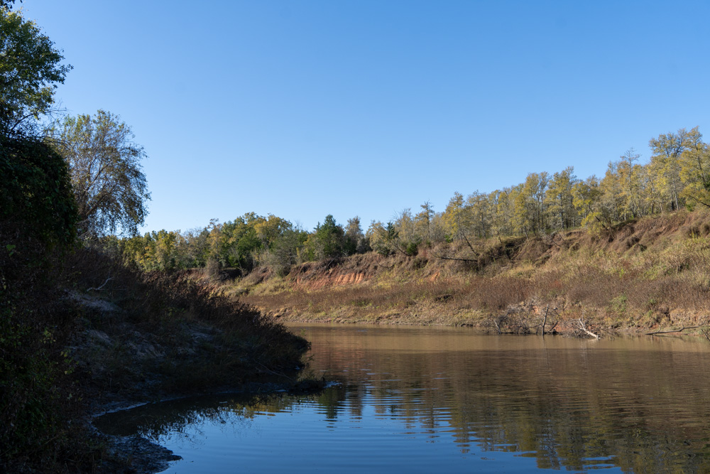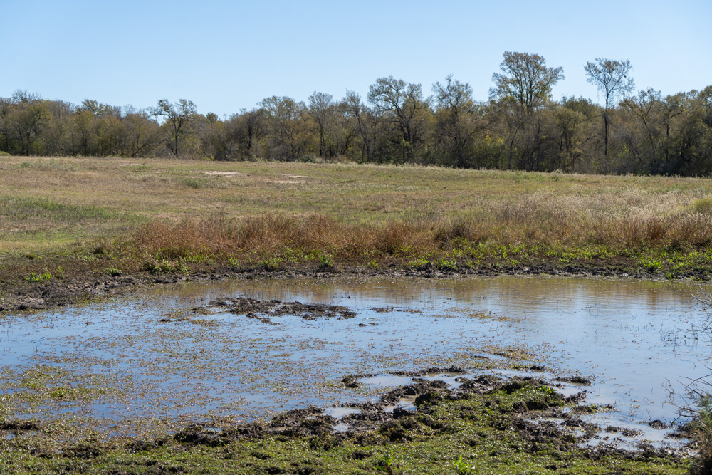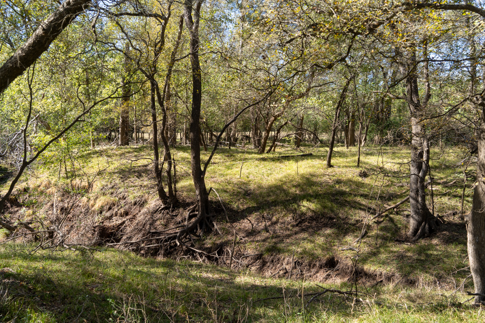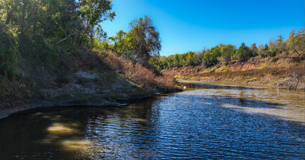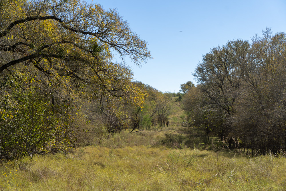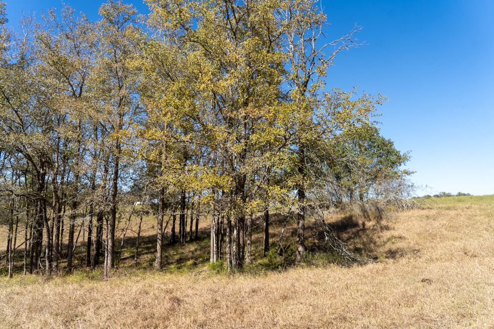 The land features a diverse blend of habitat—from rolling grass pastures and thick, covered draws to a lush river bottom lined with oak-covered hillsides. Rolling topography creates natural travel corridors for deer, hogs, coyotes, and turkey, while pockets of oak and mixed brush provide prime bedding and cover. The combination of river frontage, mixed vegetation, and open clearings makes this a year-round haven for wildlife.