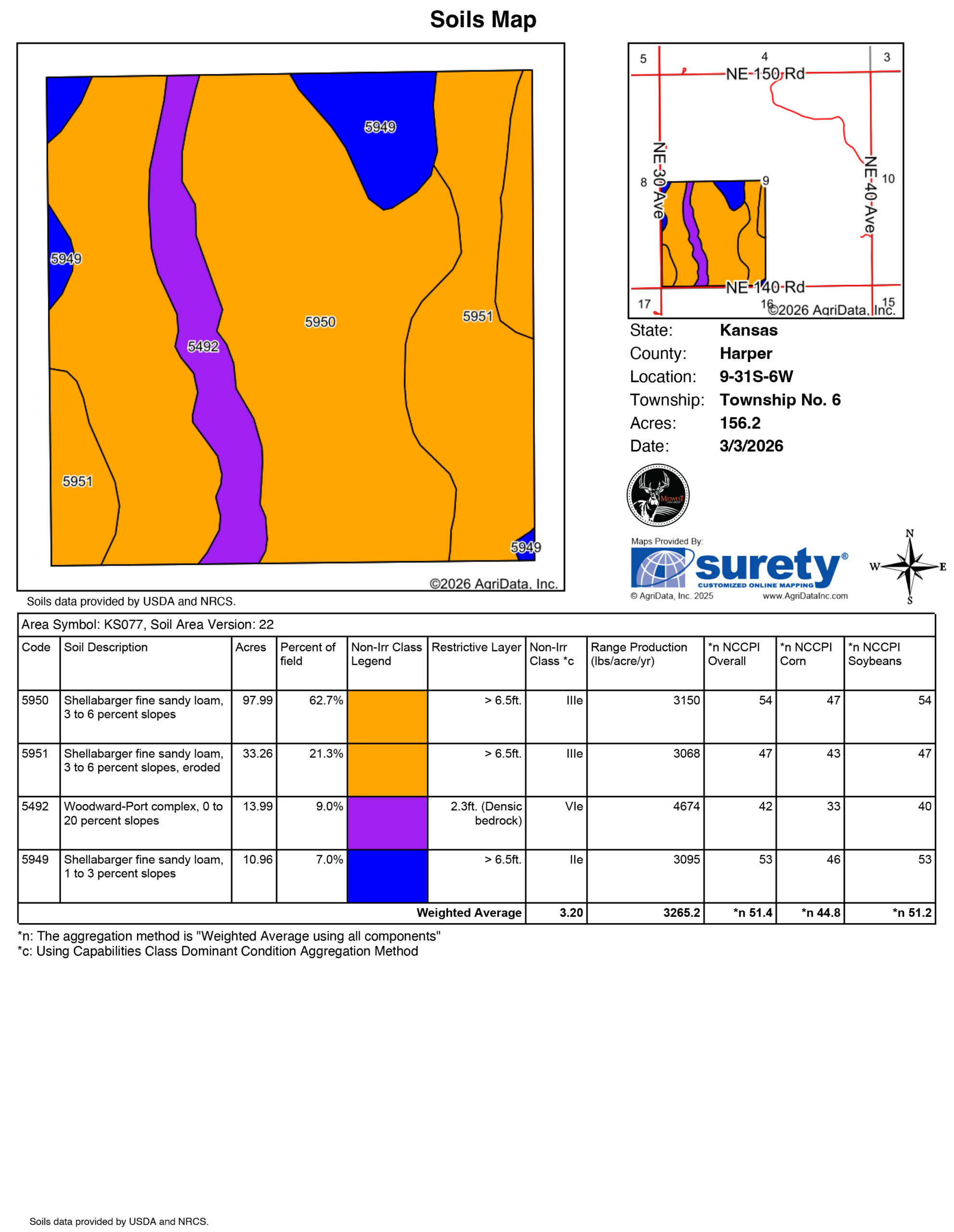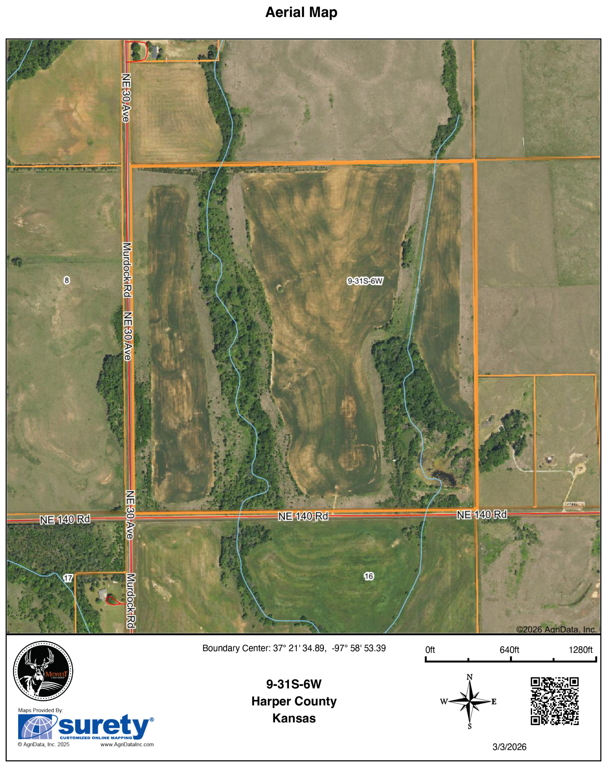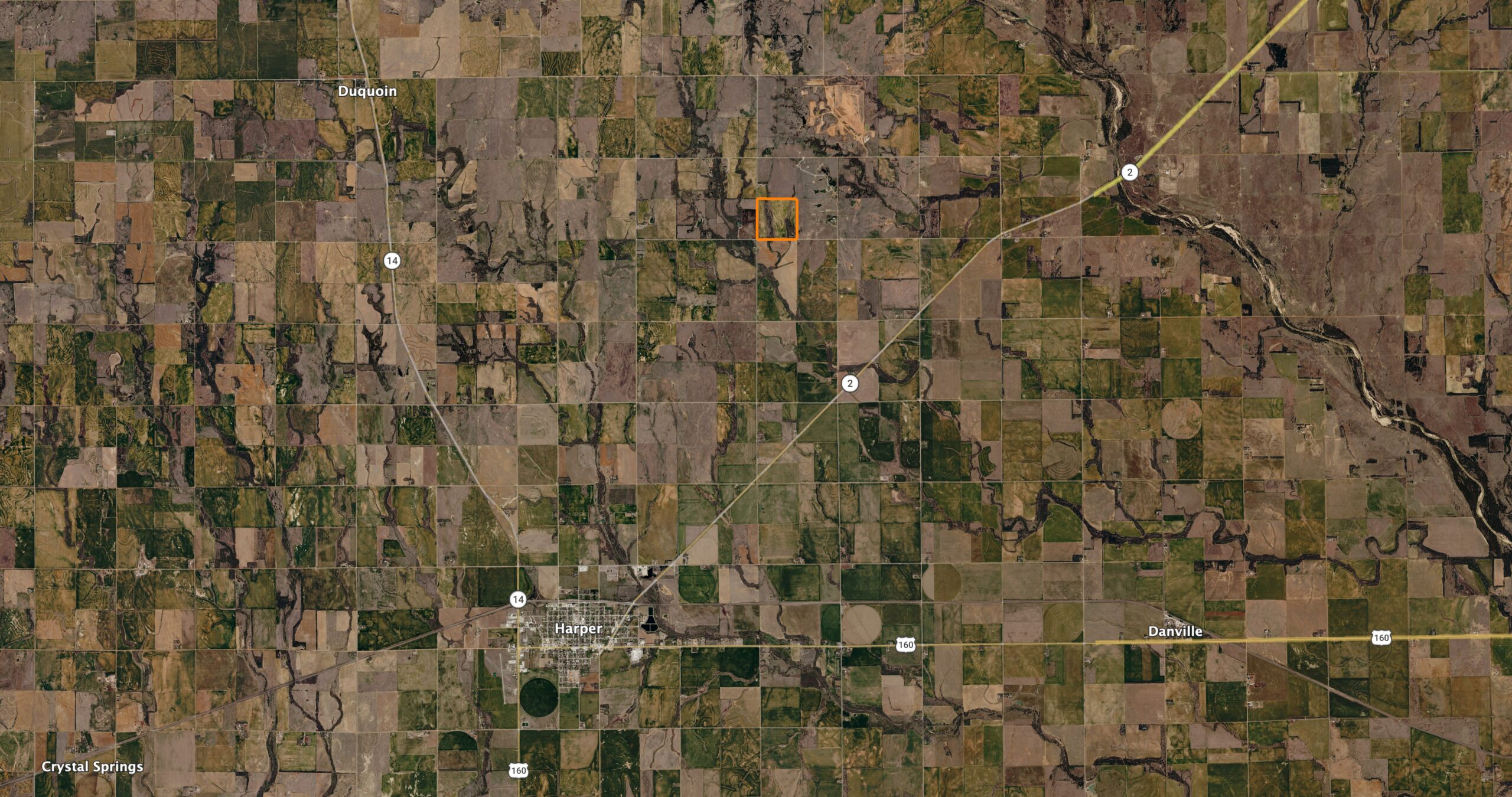 Sitting on the northern edge of Harper County and only 45 minutes from Wichita, Kansas, is this immaculate 156.2 +/- acre recreational farm. A great balance of income, access, habitat, as well as big buck genetics!The farm is located just off NE 30 Avenue, a nice, paved road that provides quick access to K-2 & K-42. Once you arrive to the property, the southeast corner has a nice 2-acre pond for fishing or a fall duck hunt. Just off the pond is the electrical meter with power, and a water well is hooked up, providing a great location to park a camper or a future build location overlooking the pond. The approximately 84 +/- tillable acres on the farm will provide the future owner with a decent income stream. A nice mix of Class II and III soils, along with terraces and waterways in excellent condition help with the topography this farm has. The 55 feet of changing elevation creates 2 different fingers of wooded timber draws for deer to cruise through. The east field is tucked in the back corner, providing a nice, sheltered area for deer to feed in the alfalfa field. Thick, lush native grass borders the property lines and fields, providing excellent bedding area for deer, quail, and pheasants. This farm will have two to three coveys of quail on it every fall for anyone looking to flush a few birds each season. The farm is less than a 1/2 mile from Spring Creek. A heavily wooded, year-round flowing travel corridor for bucks chasing does all season long.
