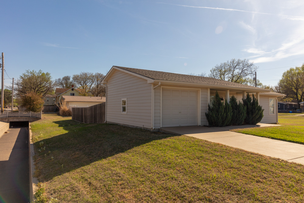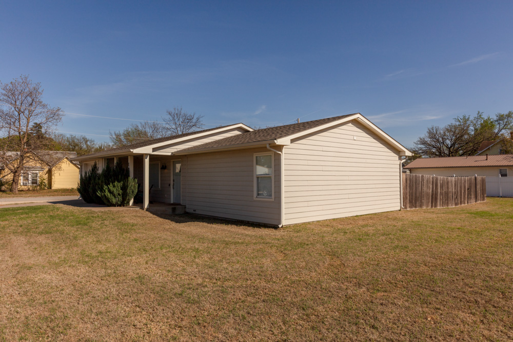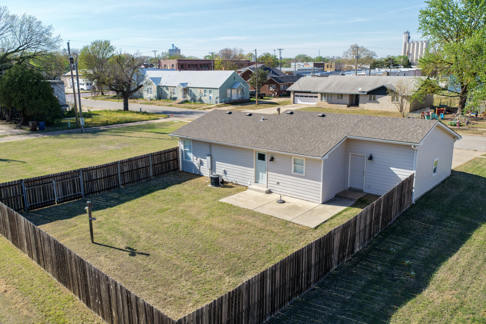 This well-maintained home offers a clean, functional layout paired with a spacious lot that is increasingly hard to find in town. From the moment you arrive, the property presents strong curb appeal with a simple, low-maintenance exterior and a setting that feels more open than many neighboring homes. It’s the kind of place that immediately feels easy to own and easy to enjoy.The home reflects consistent care both inside and out. A covered front porch provides a welcoming entry and a comfortable spot to relax, while the large fenced backyard stands out as a true asset. With privacy fencing and additional space beyond, there’s plenty of room for pets, entertaining, or simply enjoying a quieter outdoor setting—something that sets this property apart in a town setting.