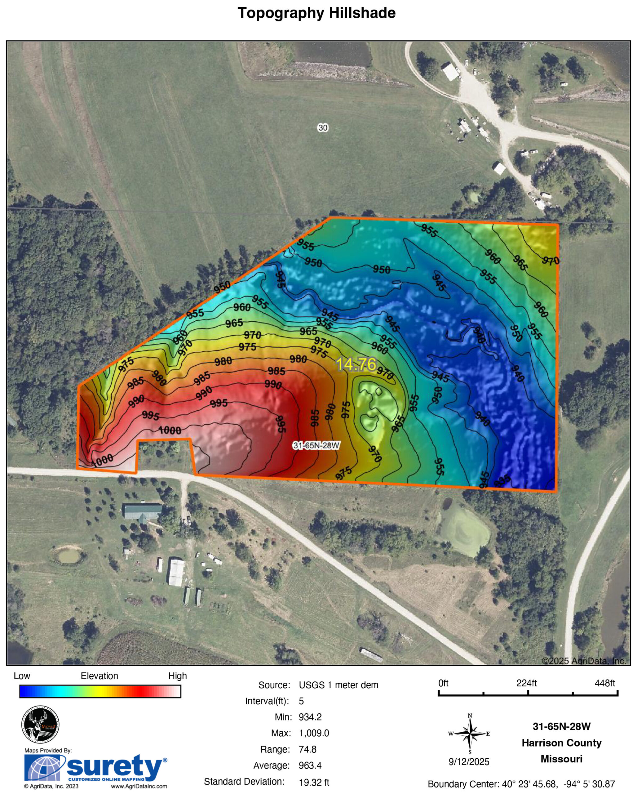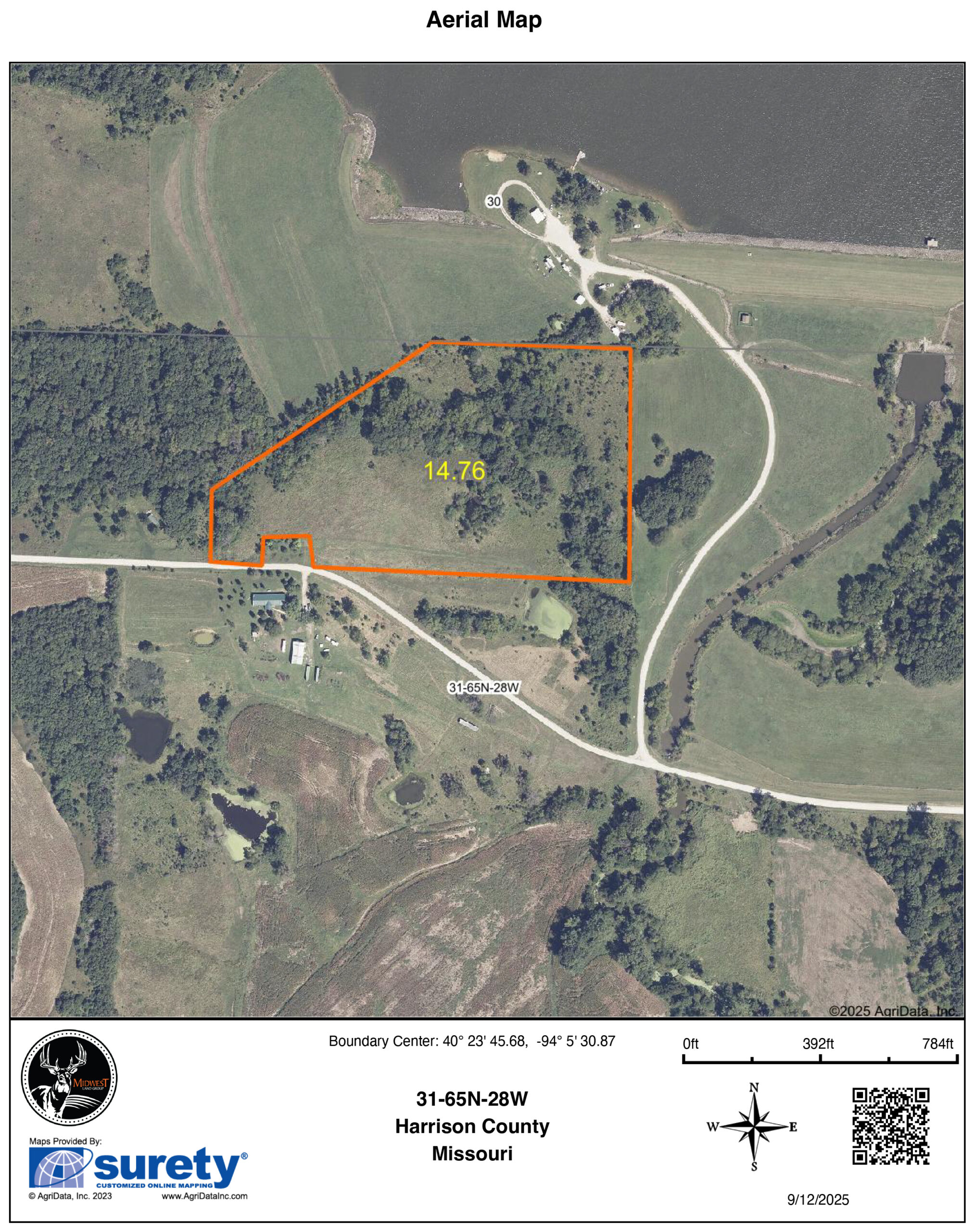 Midwest Land Group is very excited to bring to market this gorgeous 14 +/- acres build site nestled right next to Harrison County Lake! The view this 14 +/- acre property offers is extremely difficult to find in all of northwest Missouri, let alone Harrison County. The property nicely sits on the south side of Harrison County Lake, which gives you a tremendous view of the whole body of water. The property lies perfectly for a walk-out style home, which would make for an extremely private setting, all with a lake in your backyard! Harrison County Lake does not allow hunting, so there are sure to be a large number of Northwest Missouri whitetails using the timber on the north side of the property as a travel corridor. Is fishing what you’re looking for? I have good news: the boat ramp for the lake is just minutes from your front door! All necessary utilities for someone to build are available at the road for your easy access. The property also provides a pond that, with a little bit of work, could add to the already gorgeous setting. Build sites in Harrison County with this much to offer are extremely difficult to come by! Do not miss your opportunity!Property Features