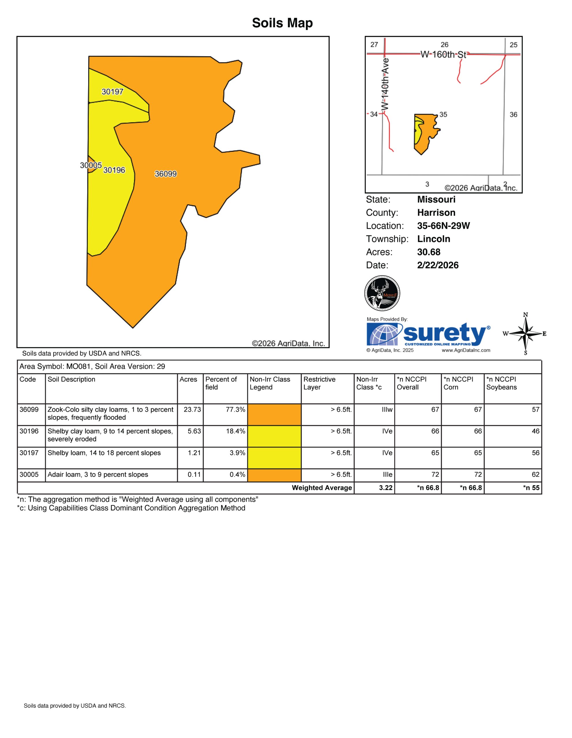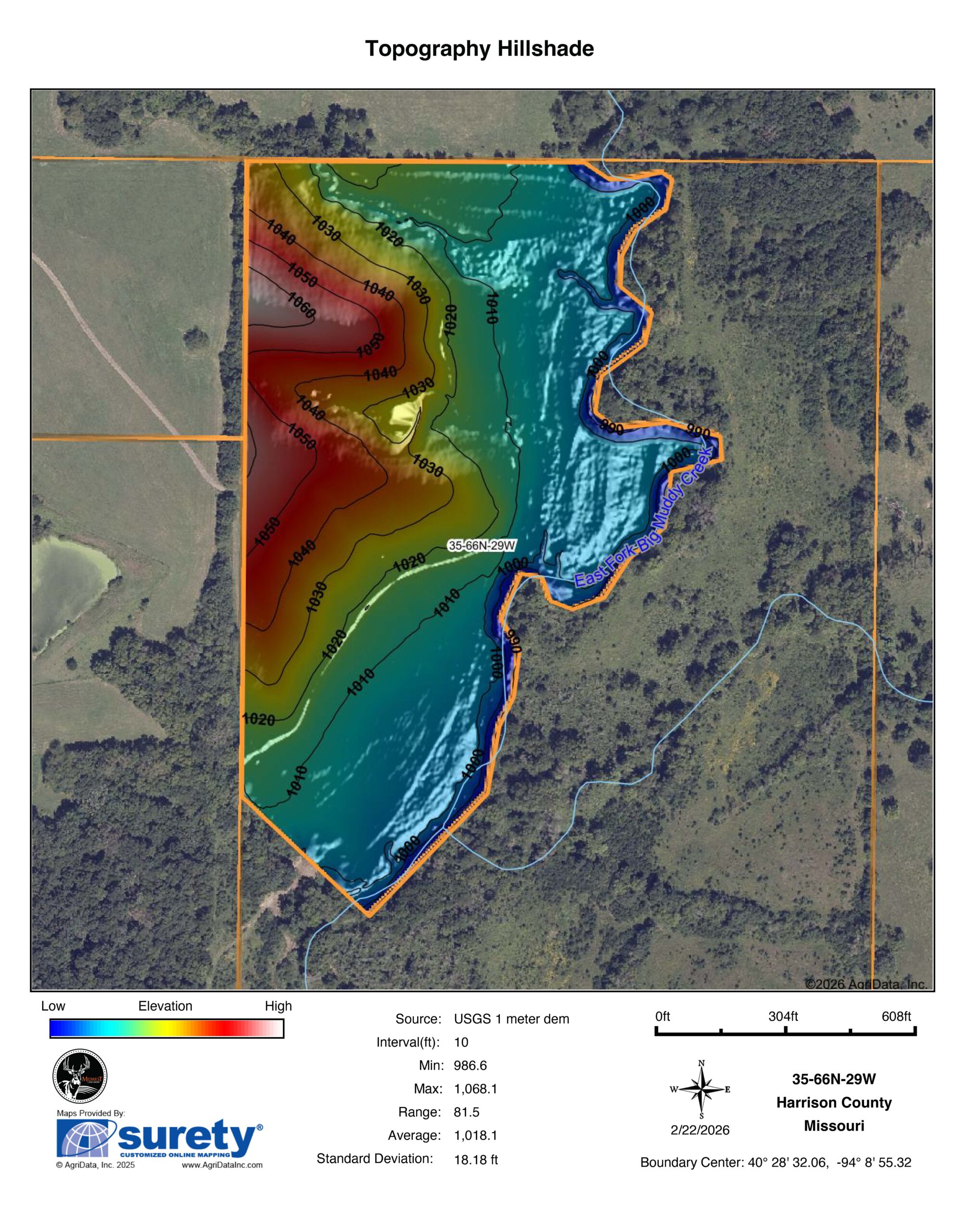 This 30.5 +/- acre tract is located in Harrison County, Missouri, in a well-known big buck neighborhood just south of Hatfield and minutes from the Iowa line. The East Fork of the Big Muddy Creek winds through the edge of the property, creating a natural wildlife corridor that consistently funnels deer and other game through the farm.