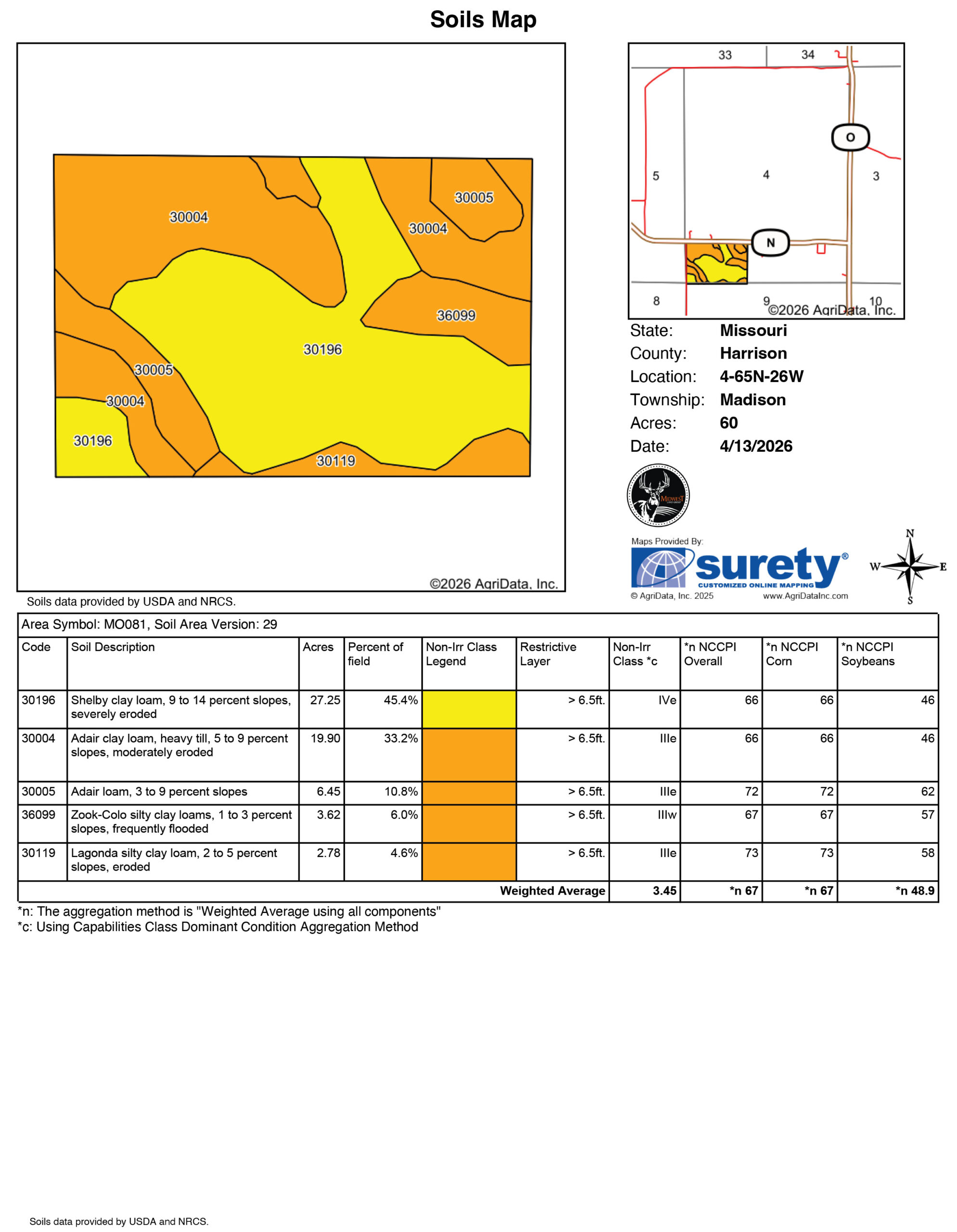 - 60 +/- acres Harrison County