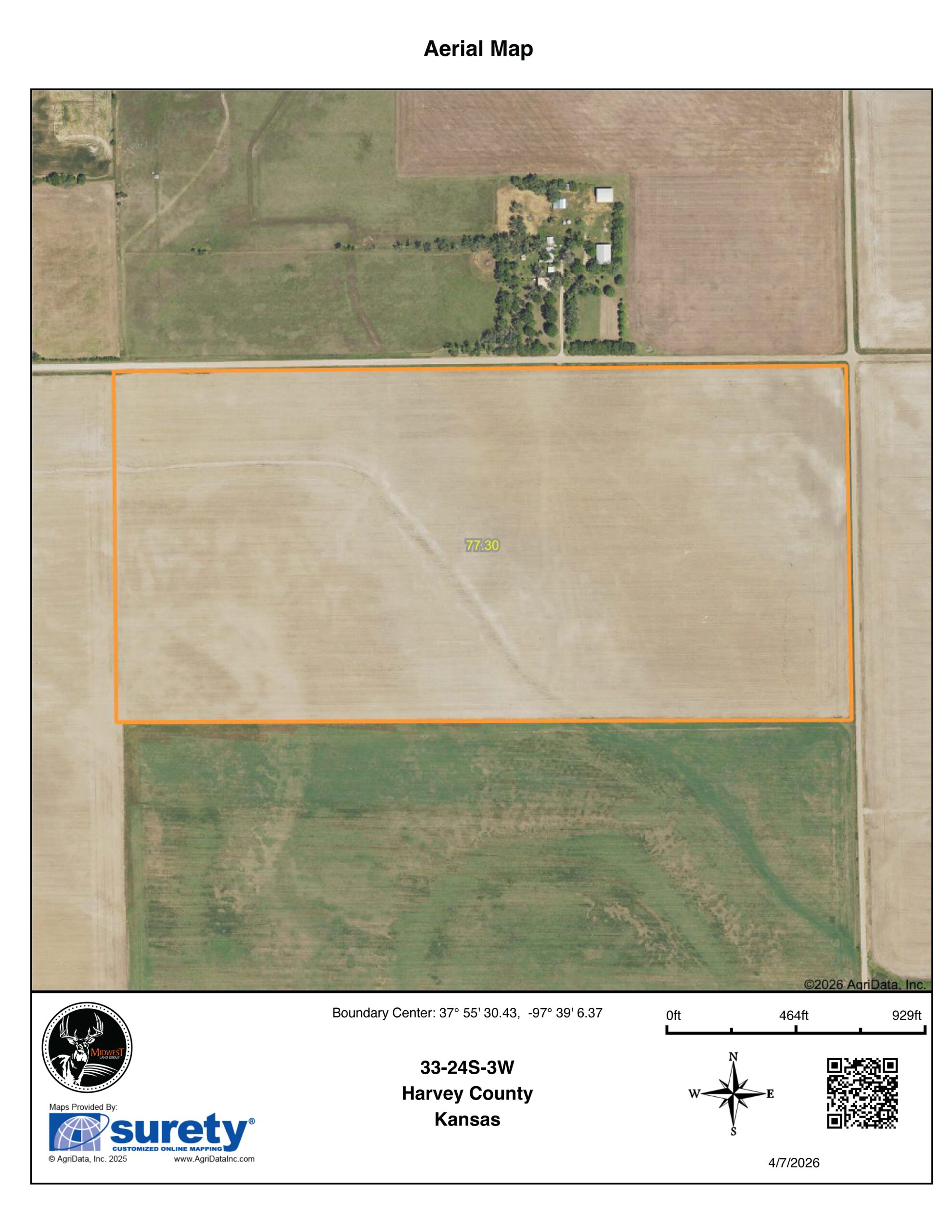 This 77.8 +/- acre tract is a clean, highly farmable parcel offering an excellent opportunity in an area where land rarely becomes available to the public. The property is located just 4 miles north of Mount Hope, 1.5 miles from Patterson, and within convenient distance to Wichita, Burrton, Haven, and Halstead.