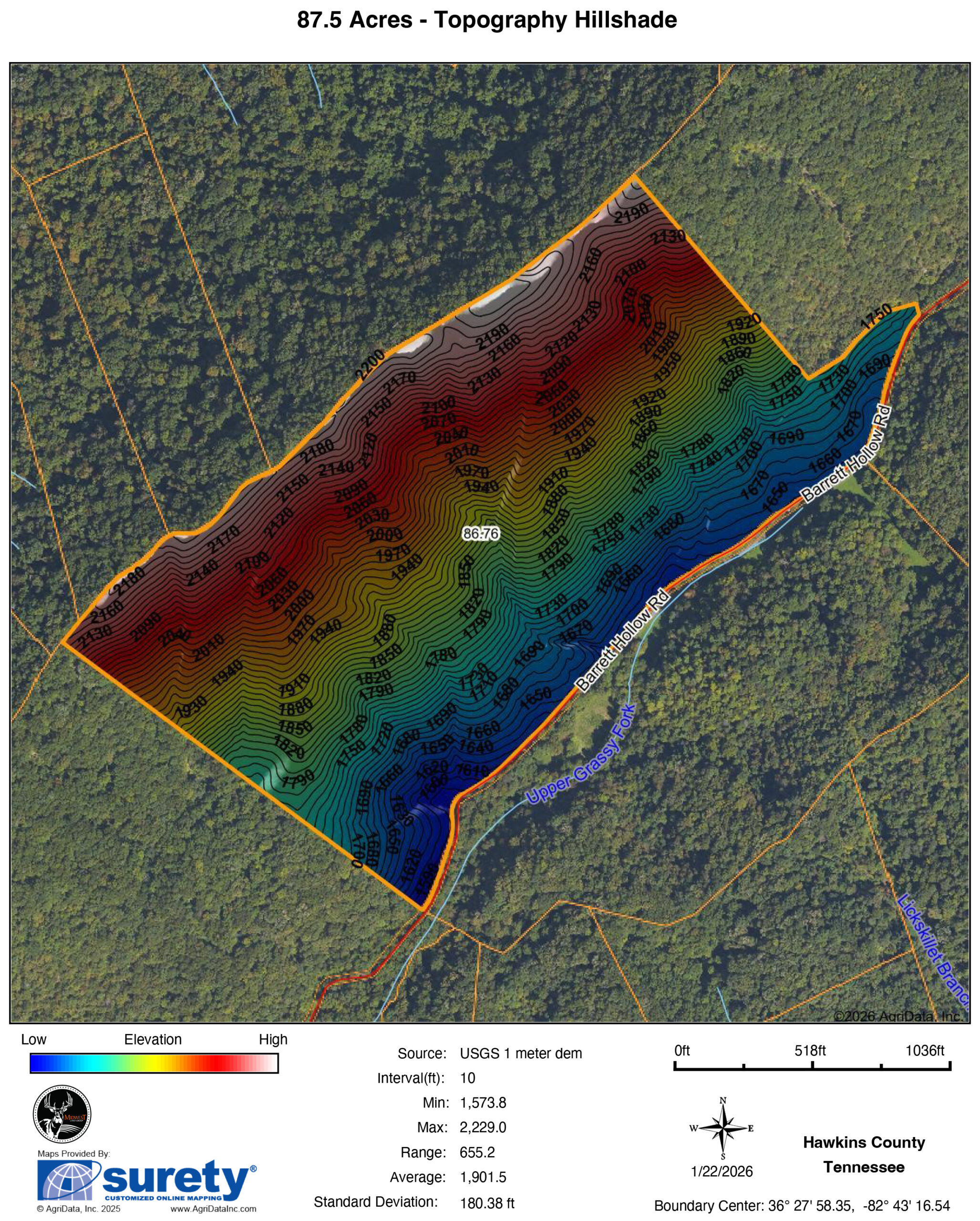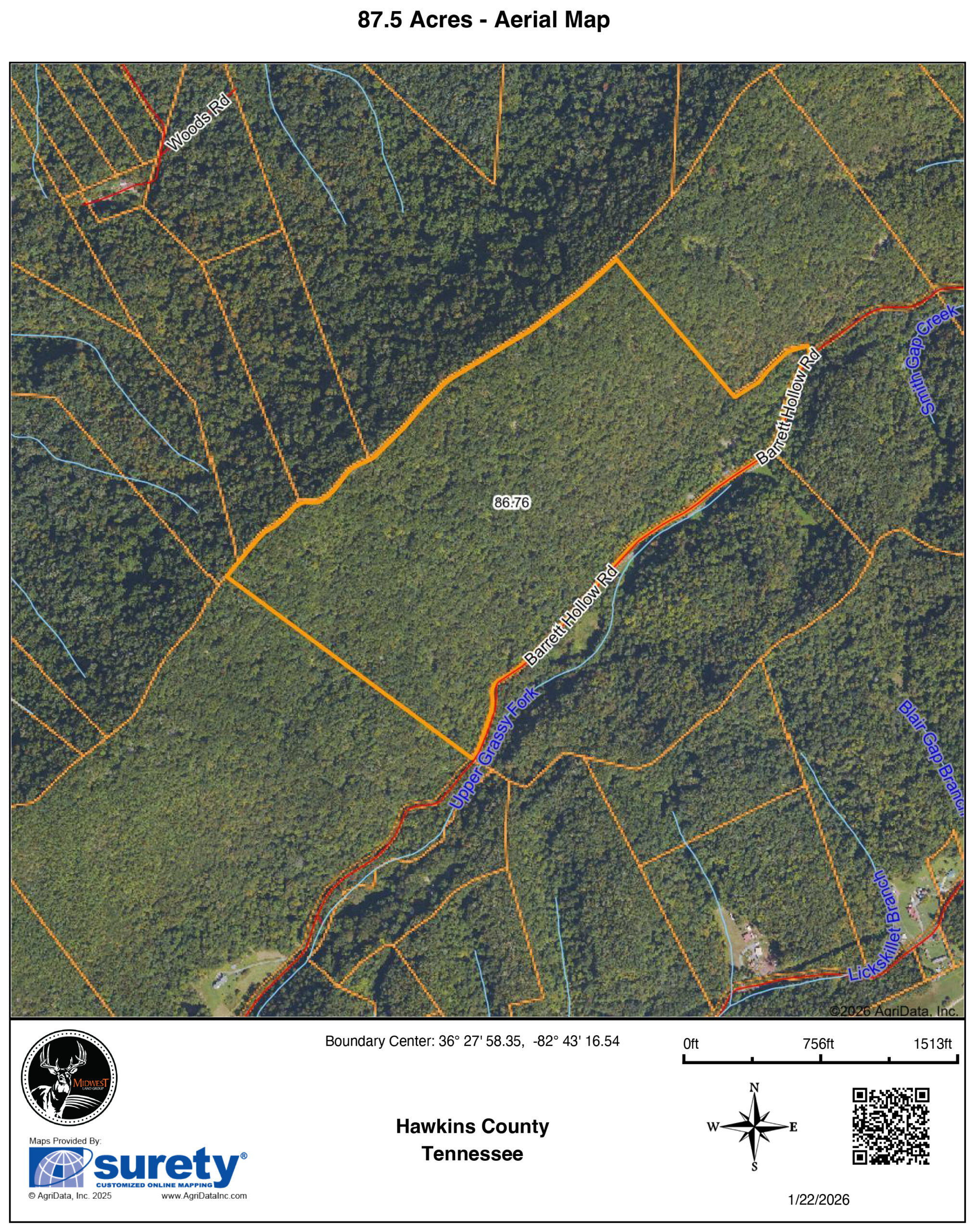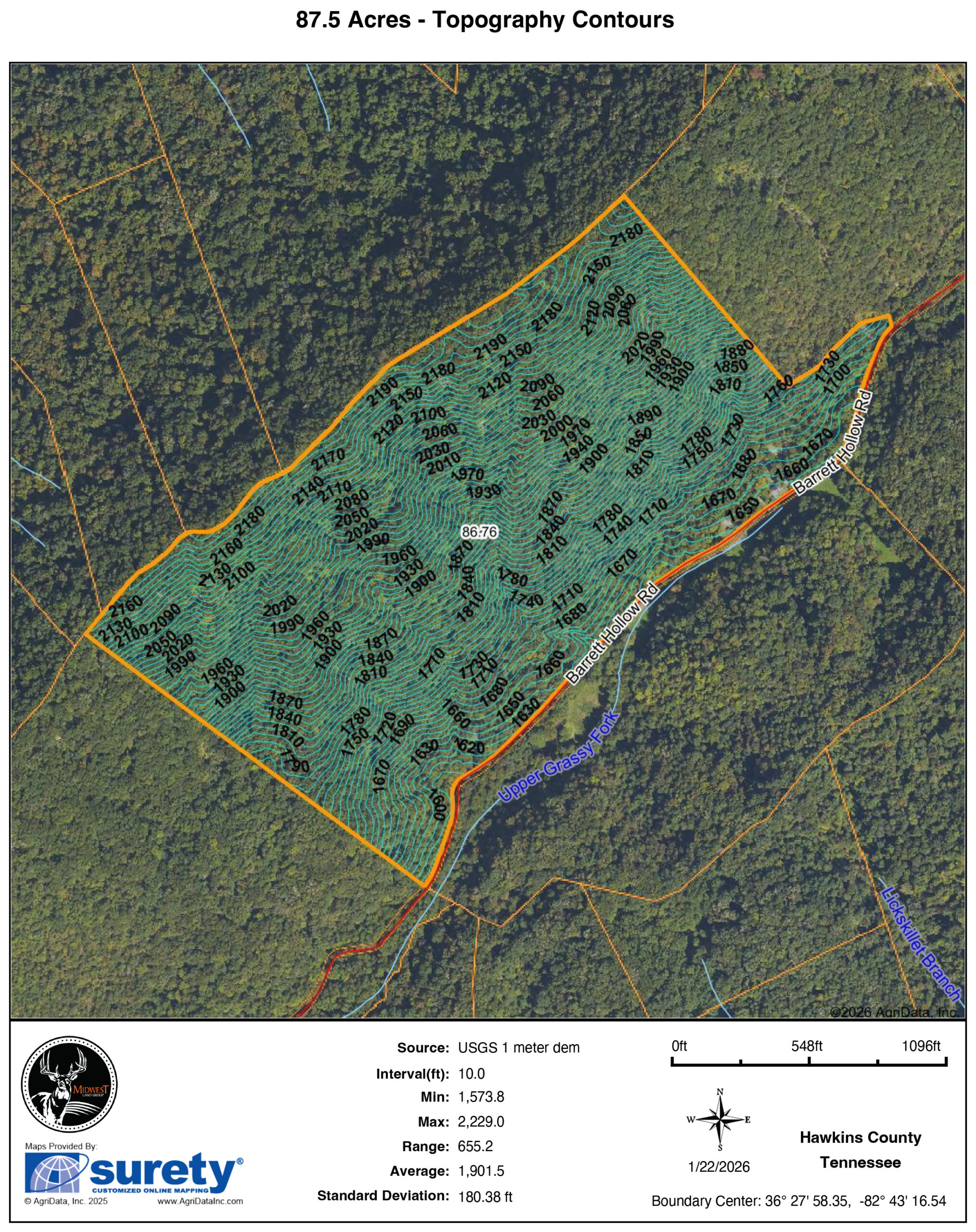 Welcome to an exceptional 87.5 acre surveyed tract in Hawkins County, Tennessee, offering the perfect combination of privacy, usability, and outdoor recreation. This property is a true sportsman’s paradise loaded with whitetail deer, turkey, and even bear, making it an ideal private hunting retreat or secluded getaway. With a cleared build site already in place, you’re one step closer to creating your dream home or cabin in the heart of East Tennessee.The groundwork for building has been thoughtfully completed, saving you both time and expense. A well was drilled by Joe Samples Well Drilling in December 2024, reaching a depth of approximately 125–160 feet and producing an impressive 15 gallons per minute. The well is currently capped and ready for pump installation once electricity is connected. In addition, the Tennessee Department of Environment and Conservation has approved a septic permit for a four-bedroom home, giving you confidence and clarity for your future build.
