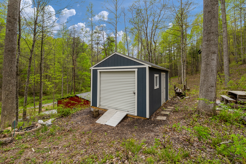 Access and infrastructure are standout features, with approximately 3,000 feet of road frontage on Barrett Hollow Road, providing flexibility and ease of entry with 3 established gates. The property includes a 35’x24’ (840 square foot) three-car MAXSTEEL garage built in July 2024, along with a 12’x16’ Blue Tuff Shed installed in December 2023, perfect for storing equipment, tools, or outdoor gear. Additional improvements, such as a 500-gallon potable water tank, rain barrels, a burn barrel, and large storage cabinets, further enhance the property’s functionality and readiness.