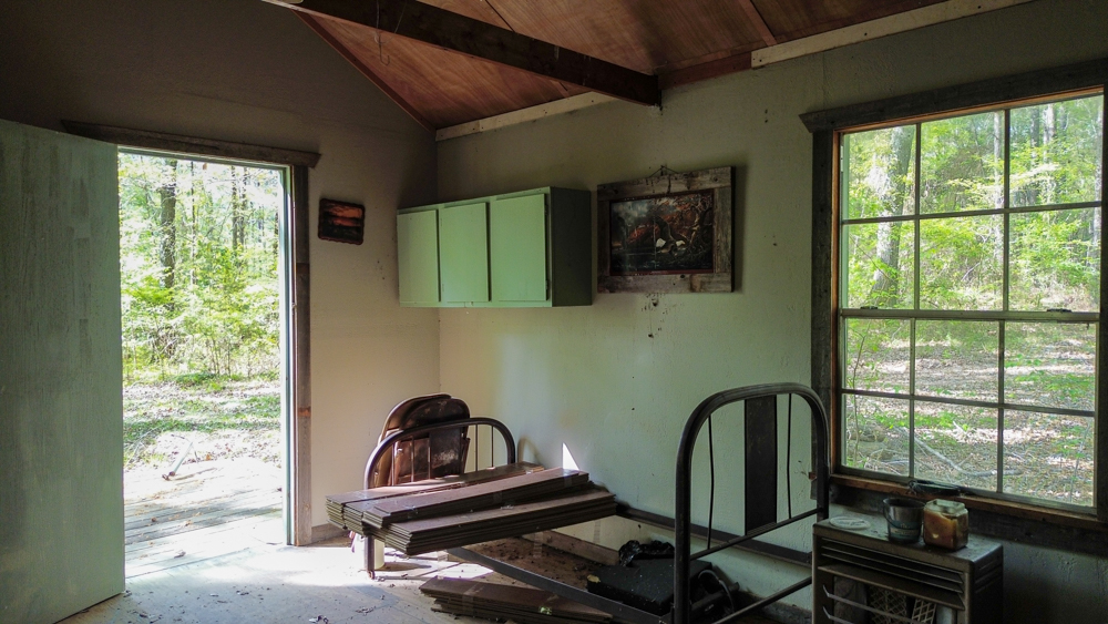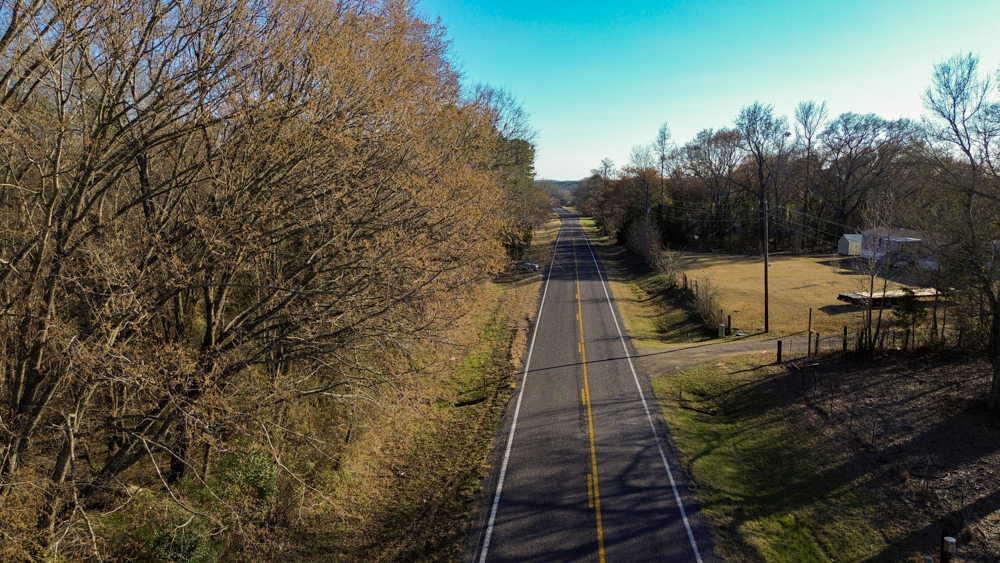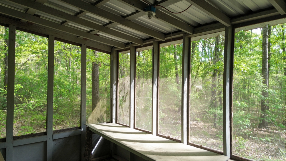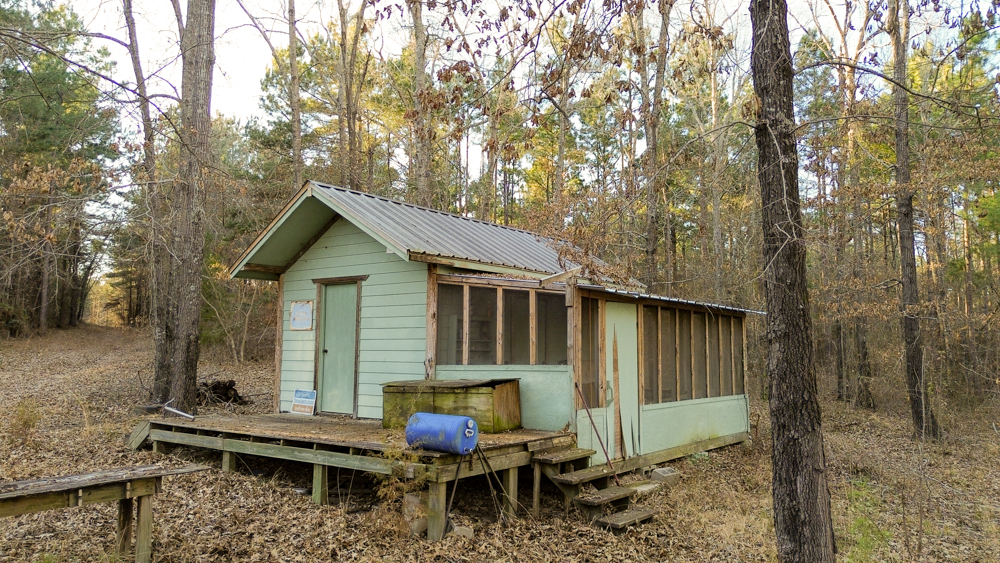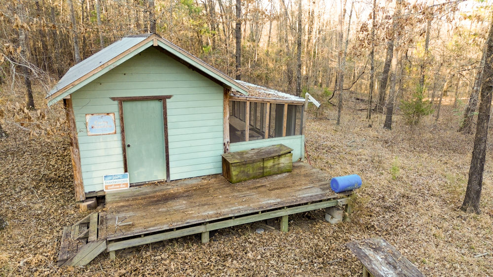 Improvements include a small dry cabin (approximately 12'x20' interior with an 8'x20' covered porch), previously used with a generator and propane heater. Water is available at FM 314. Three-phase power runs across the road, with an extension requiring an easement from a neighboring property. With FM road frontage, access is straightforward while the setting remains quiet and secluded.
