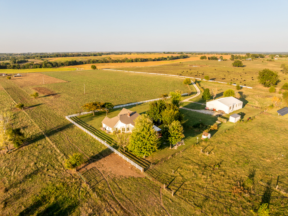 Live out your dreams in the country with this amazing home and shop building in Henry County, Missouri. This 17 +/- acre property is conveniently located less than a mile off blacktop Highway O and a short drive to Clinton, Urich, Creighton, and Garden City.Enter the property down the 1,500-foot private driveway that ends at the beautiful home and shop with amazing country views that extend for miles. The 3-bedroom, 2-bathroom ranch house has been incredibly well-maintained and taken care of. It’s a must-see! The home features a large living room with a fireplace, a formal dining area, a spacious eat-in kitchen, an oversized master bedroom and bath, and two large additional bedrooms and a full bath. The full unfinished basement offers a ton of storage and a built-in safe room. The back deck sets up great for entertaining and overlooks the amazing yard, paired with shade trees. Bonuses include the Generac whole home generator and a three-year-old house solar system that helps reduce electric bills.