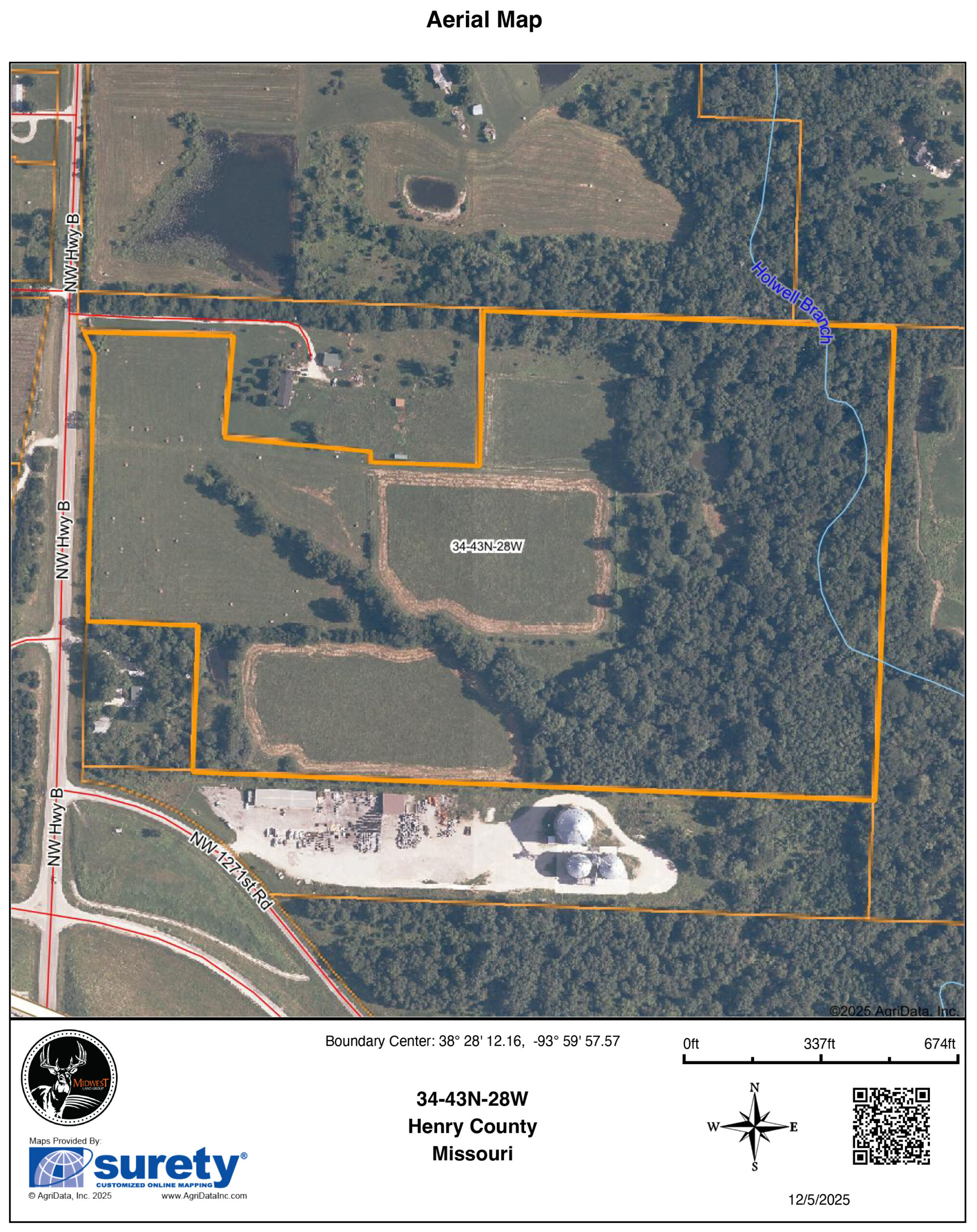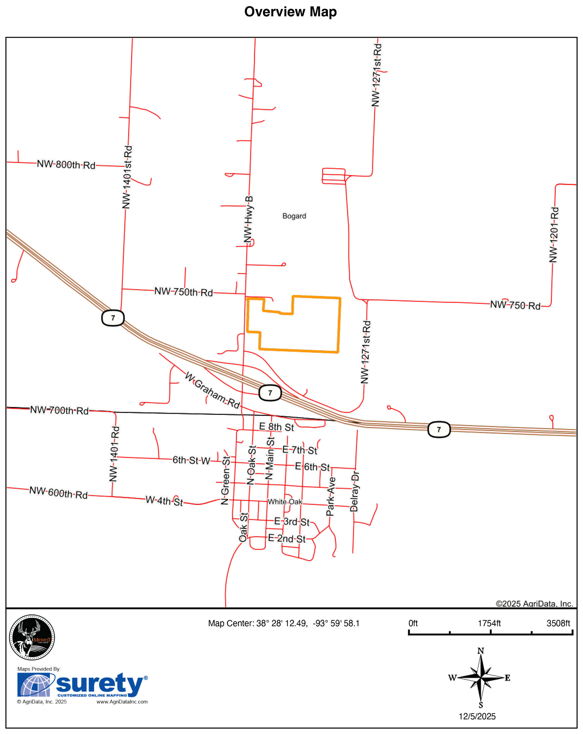 Located just north of Urich, this exceptional 44.5 +/- acre property sits only 40 minutes from the Kansas City metro and 15 minutes from Clinton, offering a rare blend of convenience and country living. With blacktop road frontage, utilities at the road, and level open ground at the front of the property, it provides multiple attractive homesite options.Approximately 20 acres are currently farmed, offering immediate income potential or room for expansion, while the balance of the property showcases diverse terrain, mature hardwood timber, and a well-established trail system that allows easy access throughout the land. A creek, small pond, and wooded cover create outstanding habitat, making this a premier hunting and recreational tract with abundant deer and wildlife.