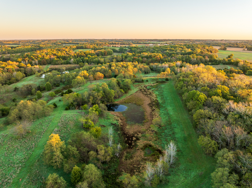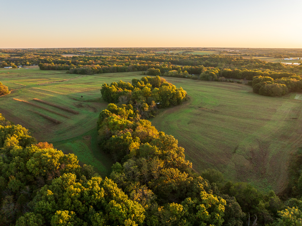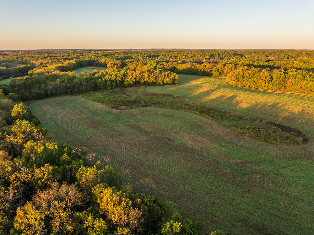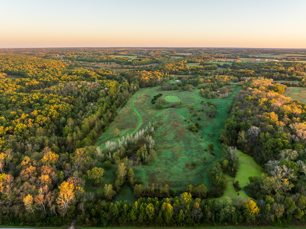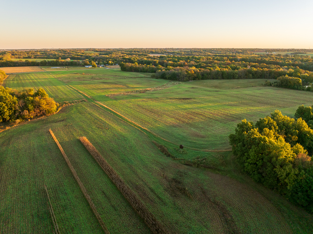 Situated on the Johnson and Henry County line, less than an hour from Kansas City, this 661 +/- acre ranch offers the ideal combination of income and recreation for year-round enjoyment. This is truly a world-class recreational property, offering exceptional deer, turkey, and fishing opportunities, with the added potential for outstanding late-season waterfowl hunting. The ranch is carefully laid out with established food plots and 11 elevated fiberglass box blinds positioned across the landscape, providing countless setups for different winds and hunting conditions. Every detail of the property has been planned to maximize the natural terrain, habitat diversity, and seasonal movement of game, allowing for multiple hunters to enjoy the property at once or for more private outings when desired. There is a well-established and maintained trail system throughout the ranch, providing access to every stand and box blind and every boat ramp on the lakes. This ranch offers the unmatched opportunity to host the entire family for annual deer camp to summer fishing outings. The property features approximately 240 +/- acres of productive tillable ground that provides consistent annual income and doubles as the major food source and draw for wildlife. Approximately 208 +/- acres of mature hardwood timber, with a great mix of red and white oaks, along with a strong stand of walnuts. There are 7 different pit lakes, for approximately 16 surface acres of beautiful, clear water, that provide incredible fishing opportunities for bass and crappie. The balance of the ranch is made up of an incredible warm-season grass stand that creates excellent bedding and nesting cover for wildlife.