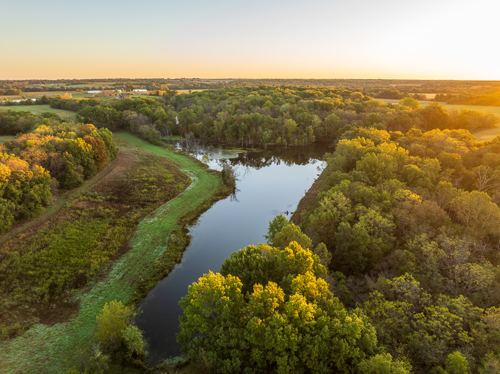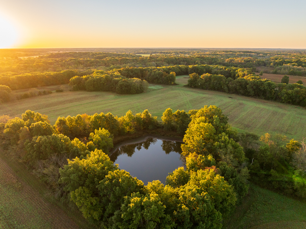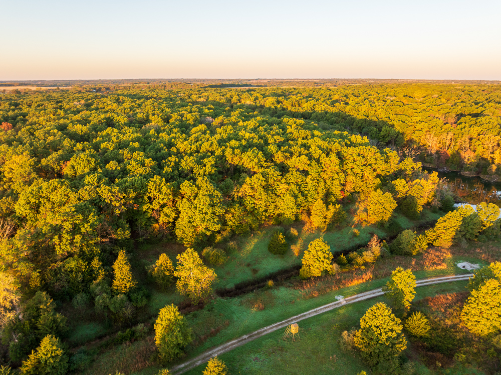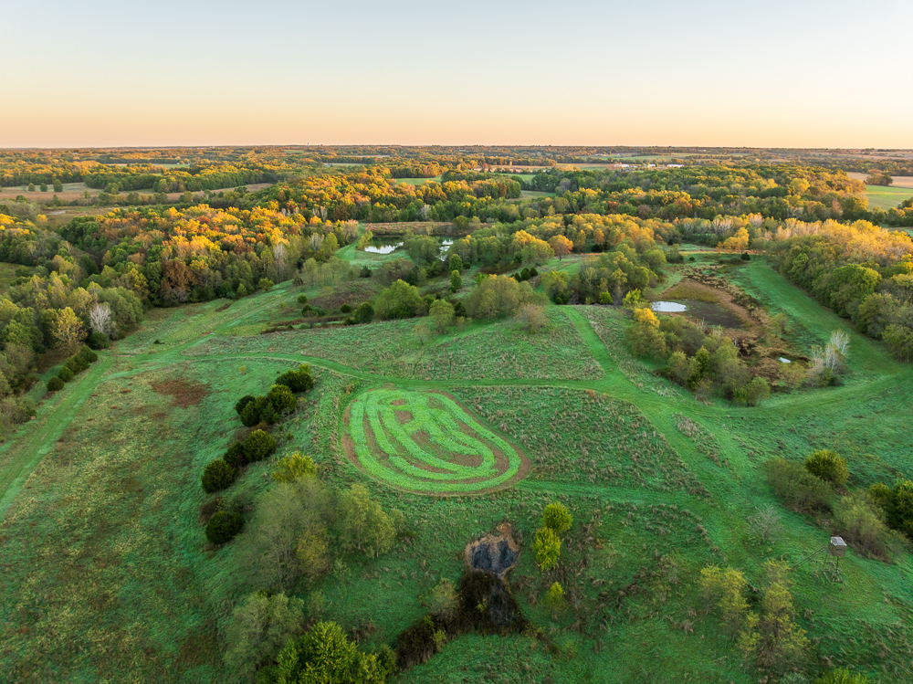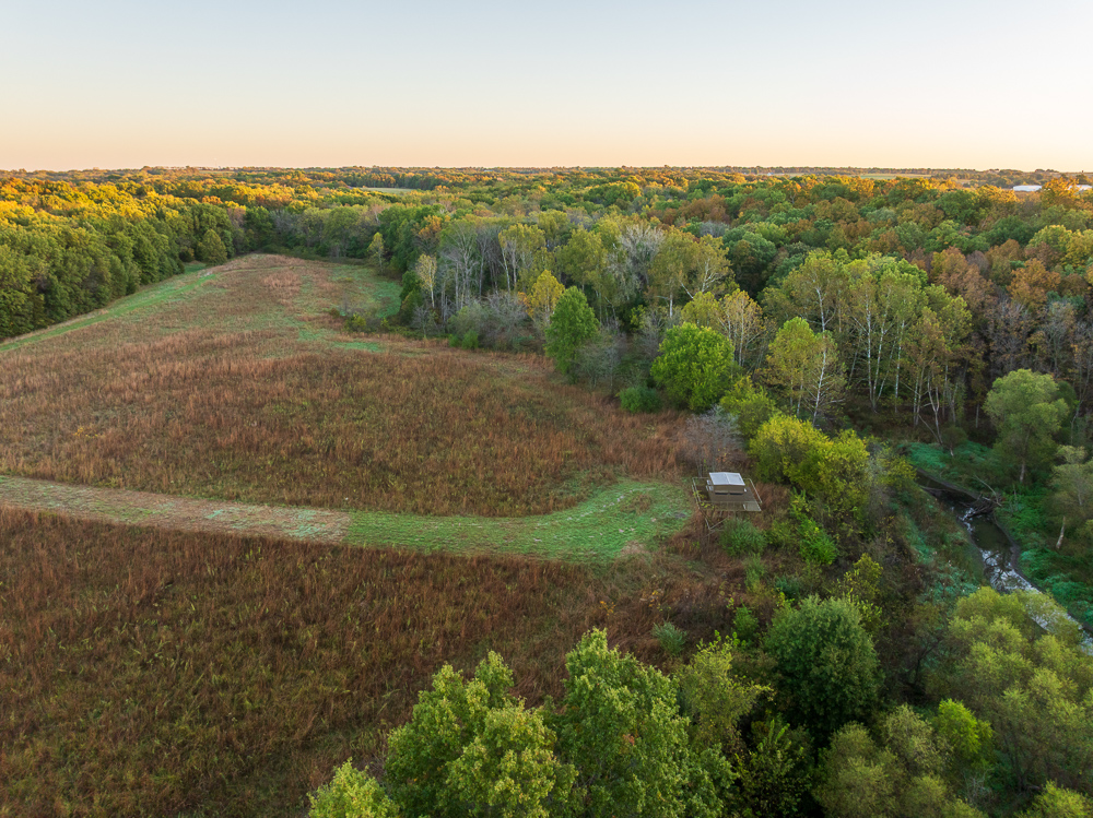 Situated on the Johnson and Henry County line, less than an hour from Kansas City, this 661 +/- acre ranch offers the ideal combination of income and recreation for year-round enjoyment. This is truly a world-class recreational property, offering exceptional deer, turkey, and fishing opportunities, with the added potential for outstanding late-season waterfowl hunting. The ranch is carefully laid out with established food plots and 11 elevated fiberglass box blinds positioned across the landscape, providing countless setups for different winds and hunting conditions. Every detail of the property has been planned to maximize the natural terrain, habitat diversity, and seasonal movement of game, allowing for multiple hunters to enjoy the property at once or for more private outings when desired. There is a well-established and maintained trail system throughout the ranch, providing access to every stand and box blind and every boat ramp on the lakes. This ranch offers the unmatched opportunity to host the entire family for annual deer camp to summer fishing outings. The property features approximately 240 +/- acres of productive tillable ground that provides consistent annual income and doubles as the major food source and draw for wildlife. Approximately 208 +/- acres of mature hardwood timber, with a great mix of red and white oaks, along with a strong stand of walnuts. There are 7 different pit lakes, for approximately 16 surface acres of beautiful, clear water, that provide incredible fishing opportunities for bass and crappie. The balance of the ranch is made up of an incredible warm-season grass stand that creates excellent bedding and nesting cover for wildlife.
