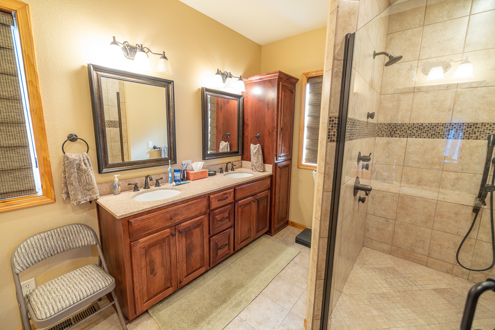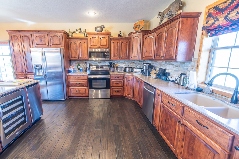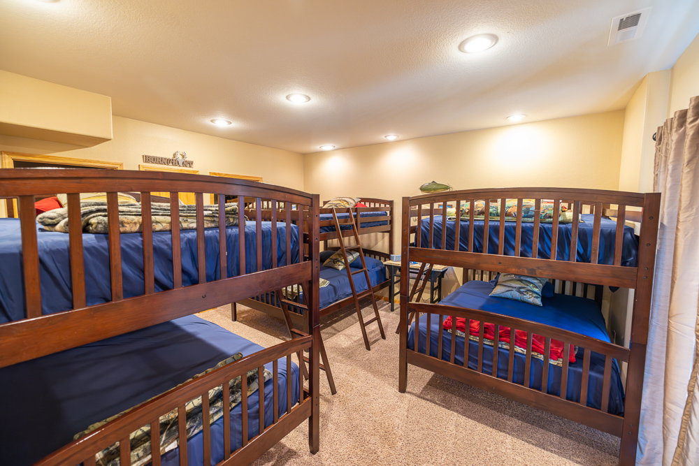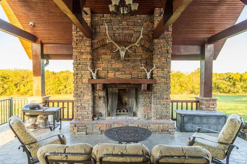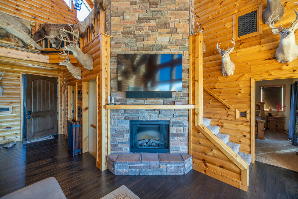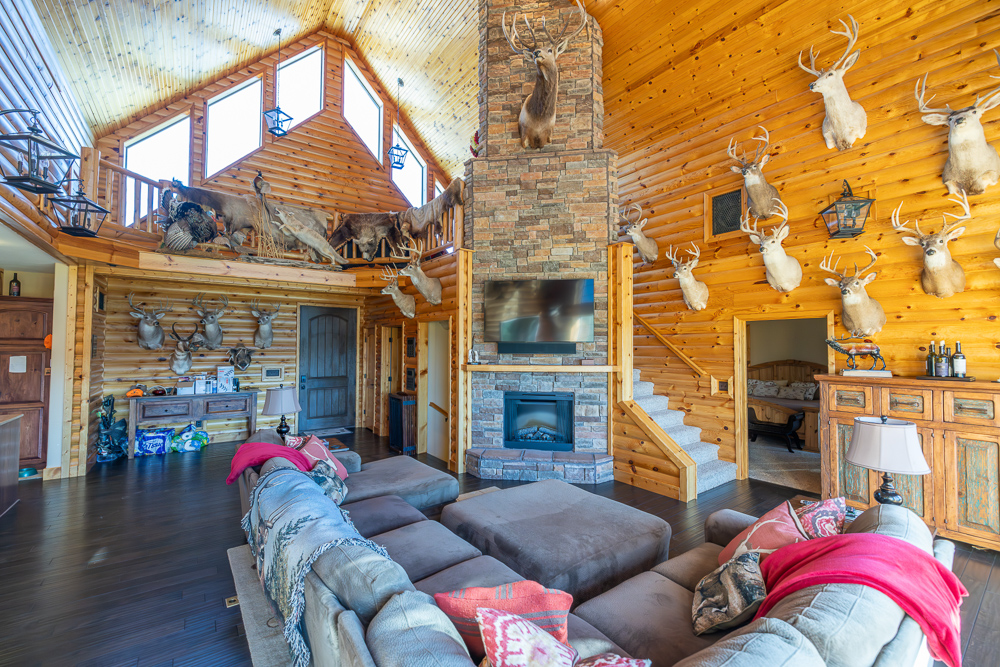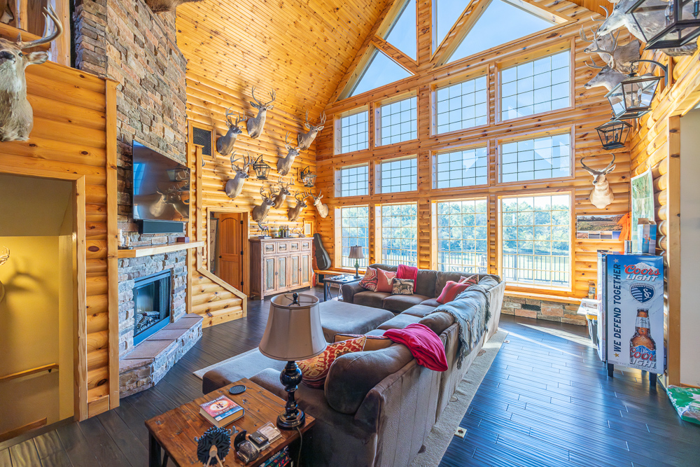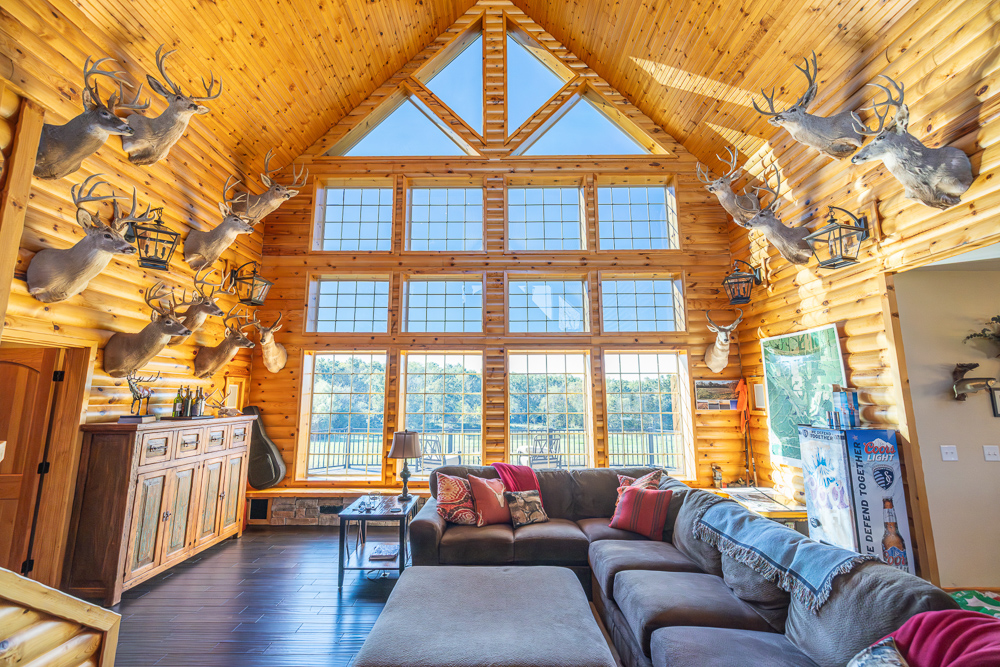 The lodge is the core of the property, a beautiful custom-built home, completed in 2012, that serves as the true centerpiece of the ranch. The lodge features three spacious bedrooms, three full bathrooms, and two half baths, along with a full kitchen and open living area anchored by a beautiful stone fireplace. Large windows and vaulted ceilings bring the outdoors in and give panoramic views of the lakes, timber, and open fields, creating a perfect setting for relaxation or entertaining guests. The most appealing part of the home is the expansive outdoor deck and awesome outdoor fireplace, perfectly blending the indoor and outdoor living areas. Whether hosting family gatherings or enjoying a quiet weekend retreat, the lodge offers year-round comfort and a touch of rustic elegance.