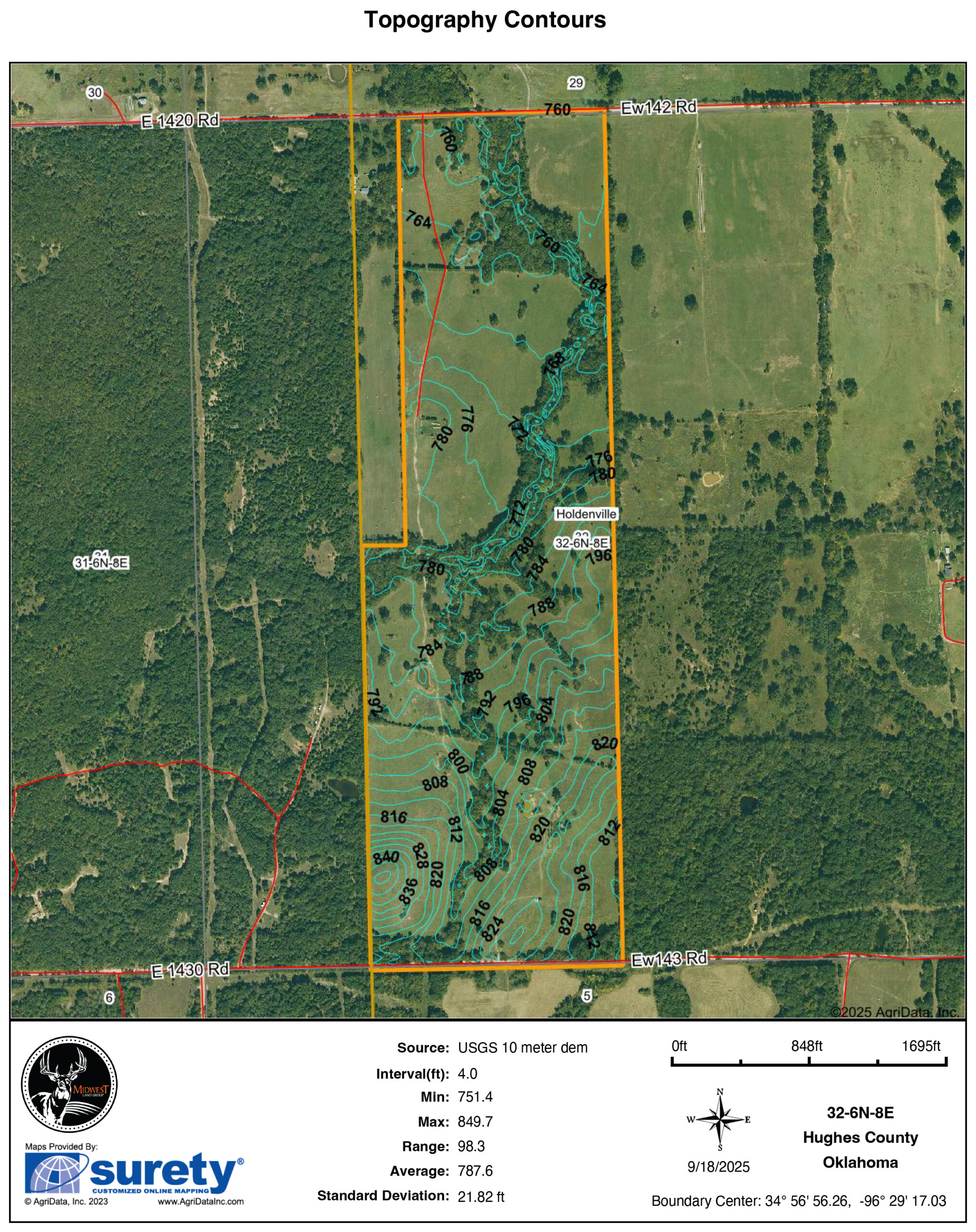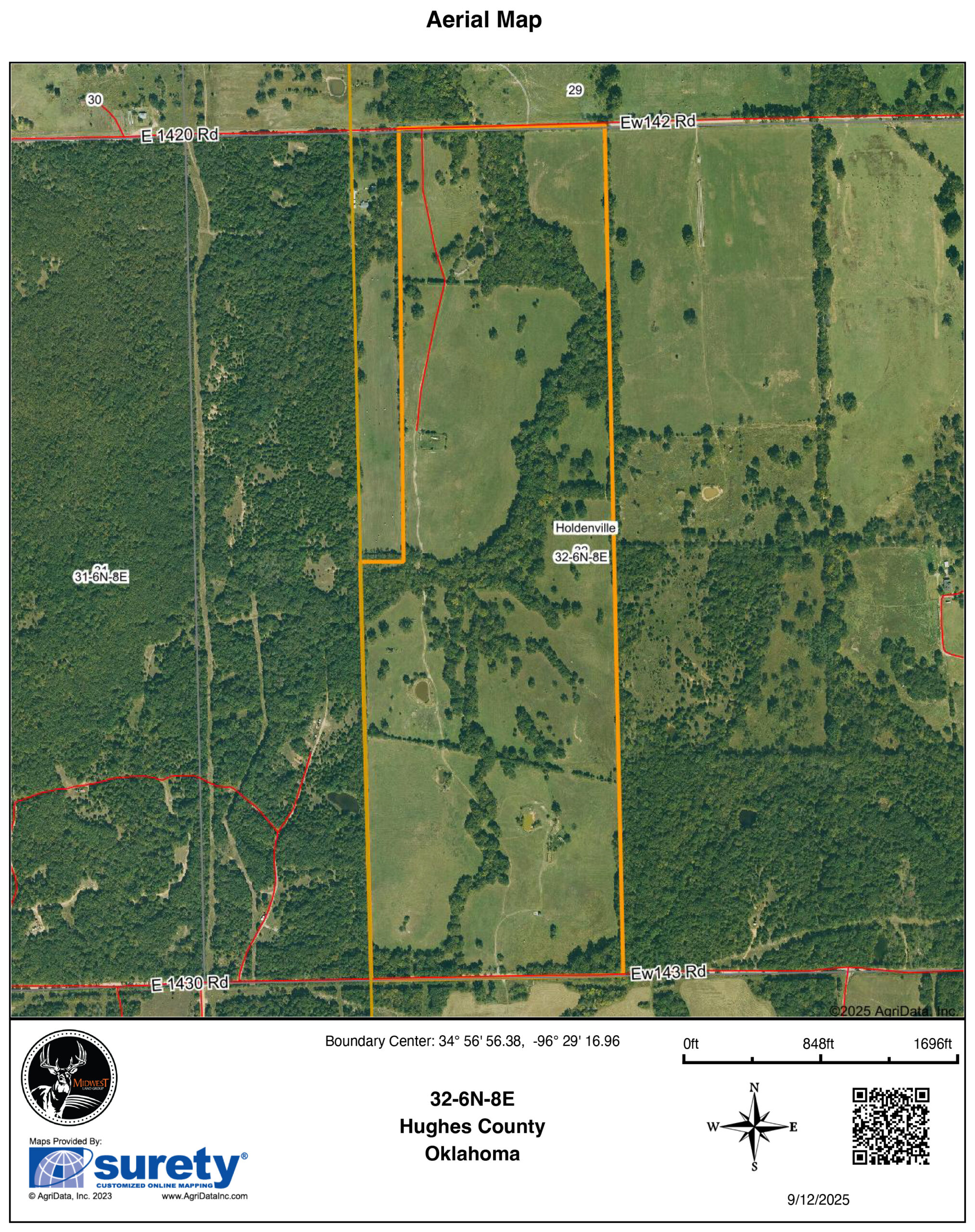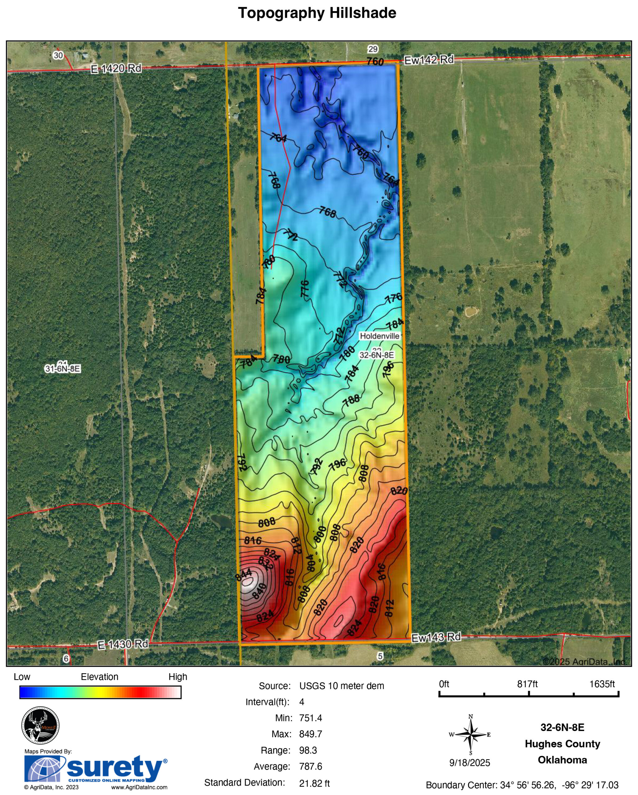 If you’re looking for a true turn-key ranch with utilities already in place, this 175 +/- acre farm in Hughes County is ready to go and checks every box. With electric service and a water well on site, it offers outstanding potential for a future homesite or weekend getaway. The property is located less than 3 miles from Sasakwa and only 2 miles off Highway 56, giving you quick access to town while still enjoying the peace and quiet of the countryside. A well-balanced mix of open pasture, scattered timber, and plenty of tillable acres makes it both productive and versatile, offering room for cattle, horses, and abundant wildlife. This ranch is already set up for livestock with perimeter and cross-fencing, functional working pens, and a wet-weather creek that provides a natural water source. A drivable trail system runs across the property, making it easy to check cattle, access different pastures, or explore on an ATV. The land itself lays out beautifully for a future homestead, with multiple build sites that provide scenic views. Whether you’re looking to expand an existing cattle operation, start a new ranch, or secure a private recreational retreat, this Hughes County farm delivers the rare mix of location, usability, and long-term potential.